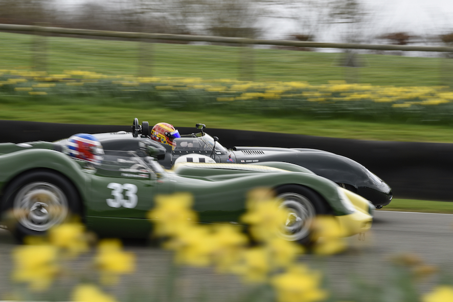 Phil Keen picked up the win for the inaugural Scott Brown Trophy race, driving Jon Minshaw’s Lister Jaguar-Knobbly. Chris Ward put a great fight to challenge the lead, in the JD Classics Lister Costin-Jaguar but over cooked his tyres early on in the race. Martin Stretton was driving a wide Lister Jaguar Knobbly to keep Sam Hancock at bay for the early part of the race, but Sam finally found a way through to pick up third, with a hard chasing Gary Pearson hot on his tail. It was thrilling action from lights to flag, Steve Boultbee Brooks went for a couple of spins but otherwise it was incident free.