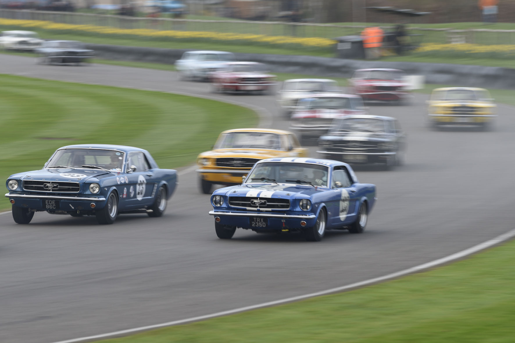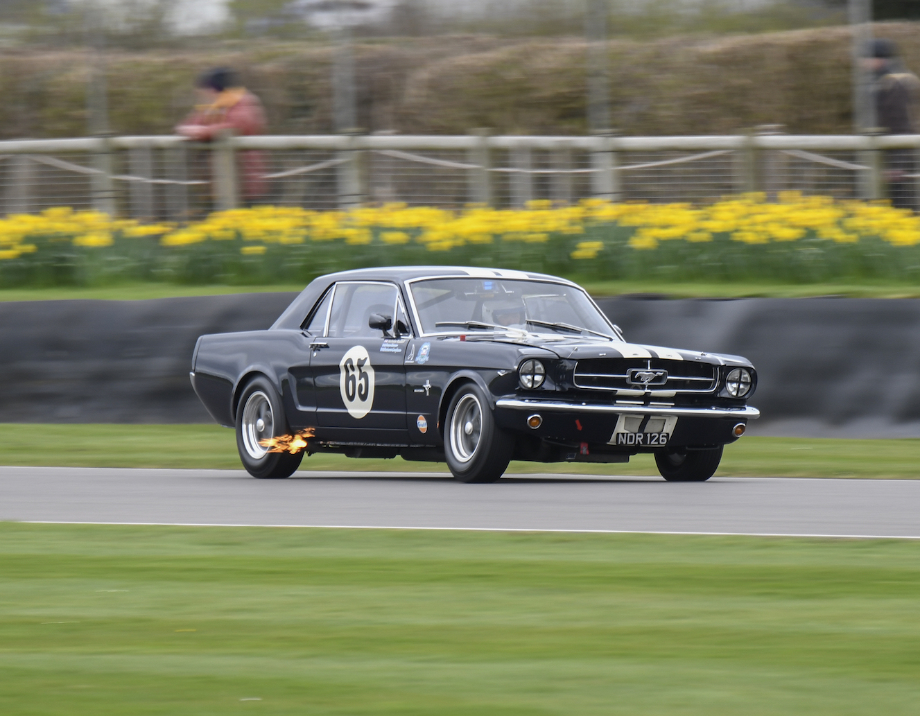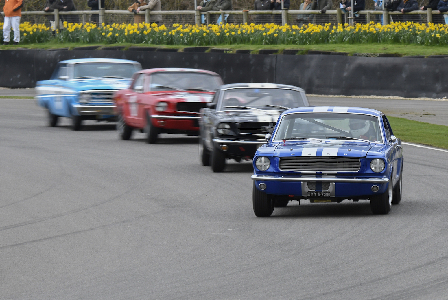 The Alan Mann Racing team must have been holding their breath watching Craig Davies and Steve Soper going wheel to wheel in the two Alan Mann liveried Ford Mustangs. Craig Davies won the race but it was a close run thing with both cars having a minor coming together and going for grassy excursions in the latter part of the race. Rob Hall kept them honest in the bright blue Ford Falcon Sprint, to come third, with Oliver Hart in 4th and Michael Squire rounding up the top 5.