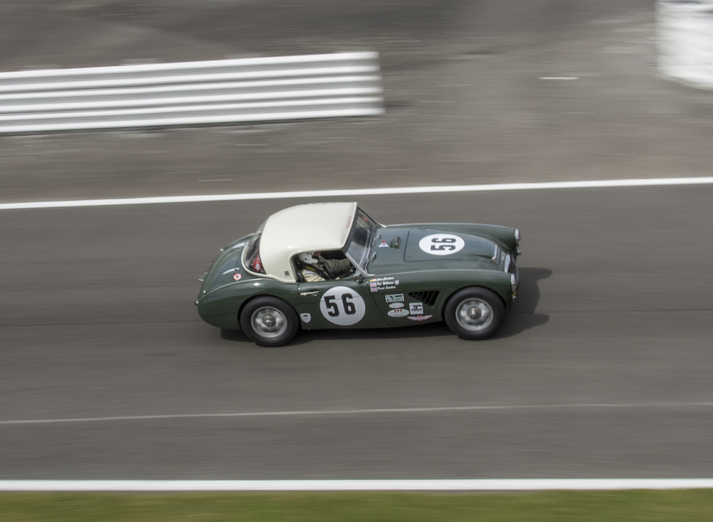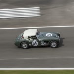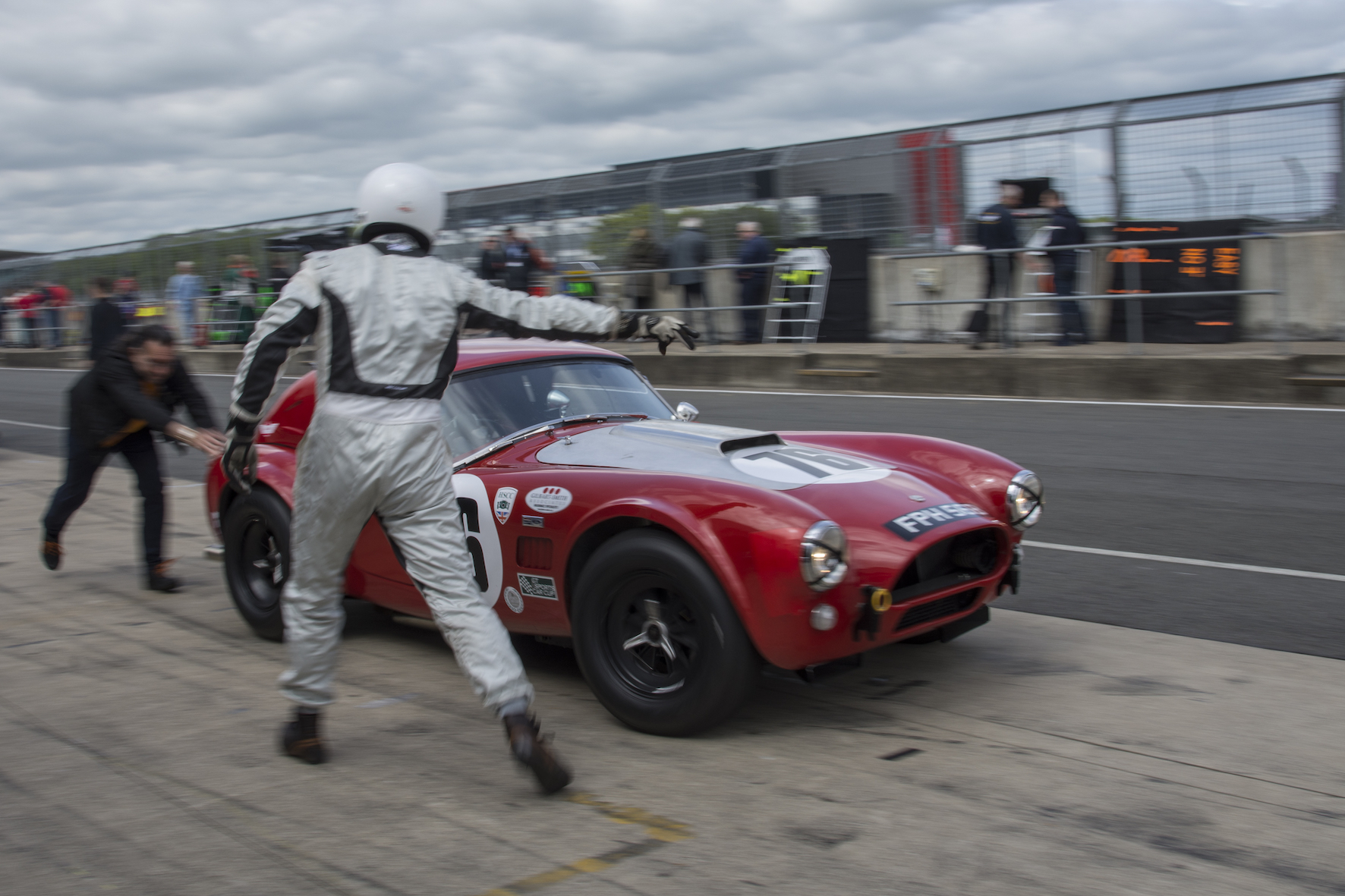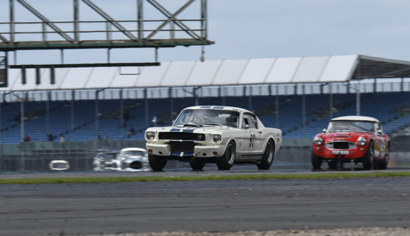 American Wakeman, Rob Bremner, Voyazides started behind Keen on the impressive grid, each of their teams having bettered 2m30s in the preliminaries. Martin Hunt (E-type), Nyblaeus, Kirkaldy, Canadian Reed Gomm (E-type low-drag coupé), Alex Bell (ex-works Healey 3000) and Simon Orebi Gann (Morgan Plus 4 SLR) comprised the remainder of the top 10 on a brighter raceday. Nick Sleep’s Shelby Mustang GT350 and David Smithies (Healey) dwarfed Fowler’s little Lola with Chris Wilson’s silver blue Cobra alongside.