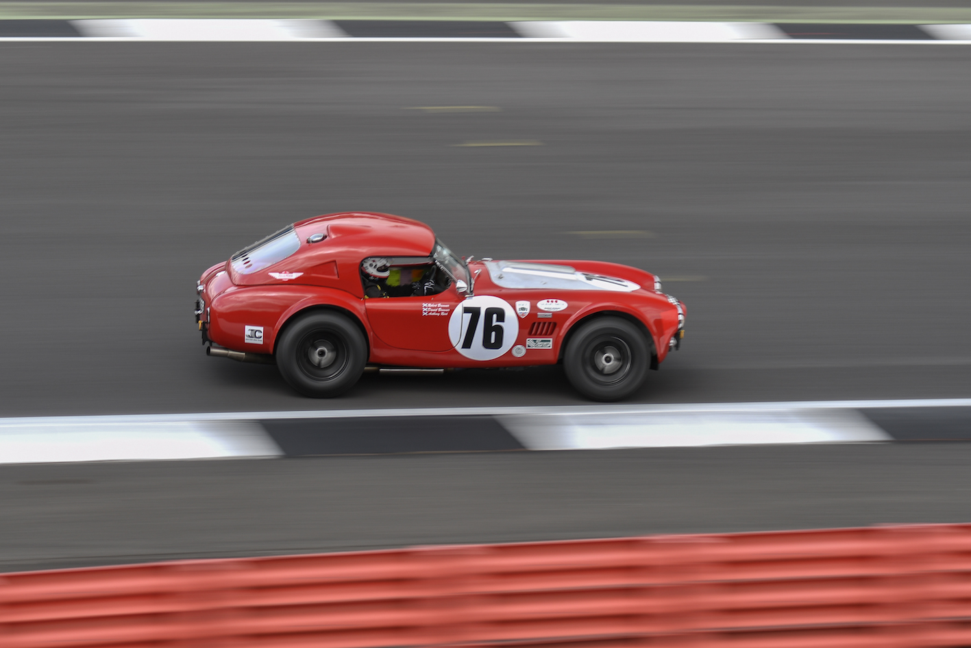 For the second successive season Silverstone’s spectacular GT & Sports Car Cup race – traditionally a highlight of the HSCC’s International Trophy event – ended dramatically, Scottish AC Cobra 289 trio Robert and Daniel Bremner with 1990 Le Mans 24 Hours podium finisher Anthony Reid being accorded a popular victory after Leo Voyazides/Simon Hadfield, first past the chequered flag, were penalised 90 seconds because Hadfield’s middle stint had gone a lap over the 40 minute maximum driving time permitted following a team error.