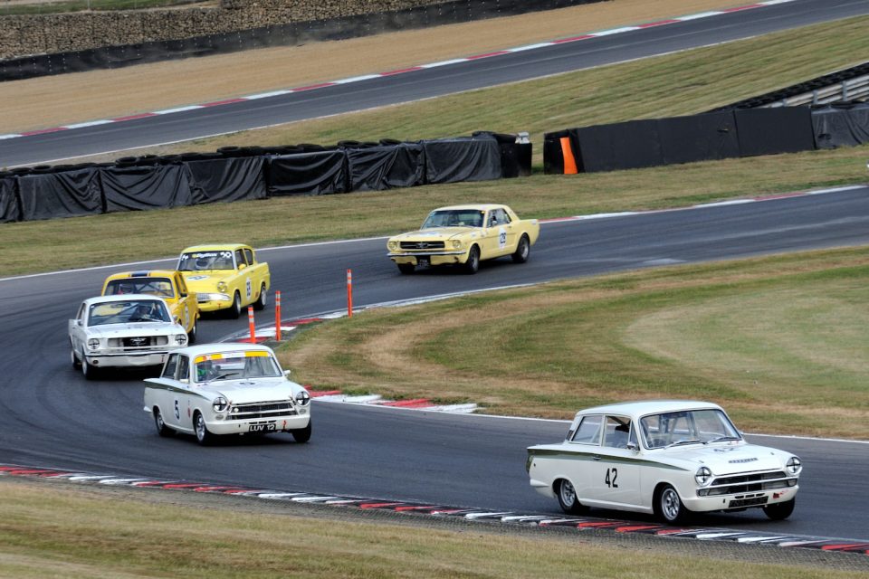 Finally, a strong Historic Saloon field delivered an excellent contest as John Spiers and Philip House went head-to-head in Lotus Cortinas. Spiers set the early pace but House chipped away and was narrowly ahead at the flag. Behind Richard Belcher’s Cortina, Mark Watts fended off Alex Thistlethwayte to top the Ford Mustangs.