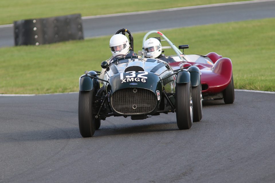 Richard Wilson’s glorious Maserati 250S was the class of the Griffiths Haig Trophy races and made a fabulous sight and sound around the Cheshire track. In the wet of Saturday, Cliff Gray was a fine second in his Frazer Nash Le Mans, while in the dry of Sunday afternoon Tony Bianchi was able to power the Farrallac Allard up to second.