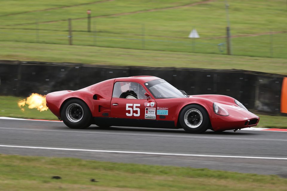 For the second time this season, Steve Nuttall won a Guards Trophy race in slippery conditions, moving his Chevron B8 well clear of a good pack of cars. Ben Tusting made light of the conditions to tiger up to second in the Lenham started by his father Robert as David Forsbrey and rapid newcomer Dan Balfour were next up in their Chevrons. The TVR Griffith of Peter Thompson and Mark Hales topped the GT class but they could never relax too much as the Lotus Elan of Sam Smith gave chase and was within five seconds at the flag despite a 30s penalty for a pit stop taken outside the pit stop window.