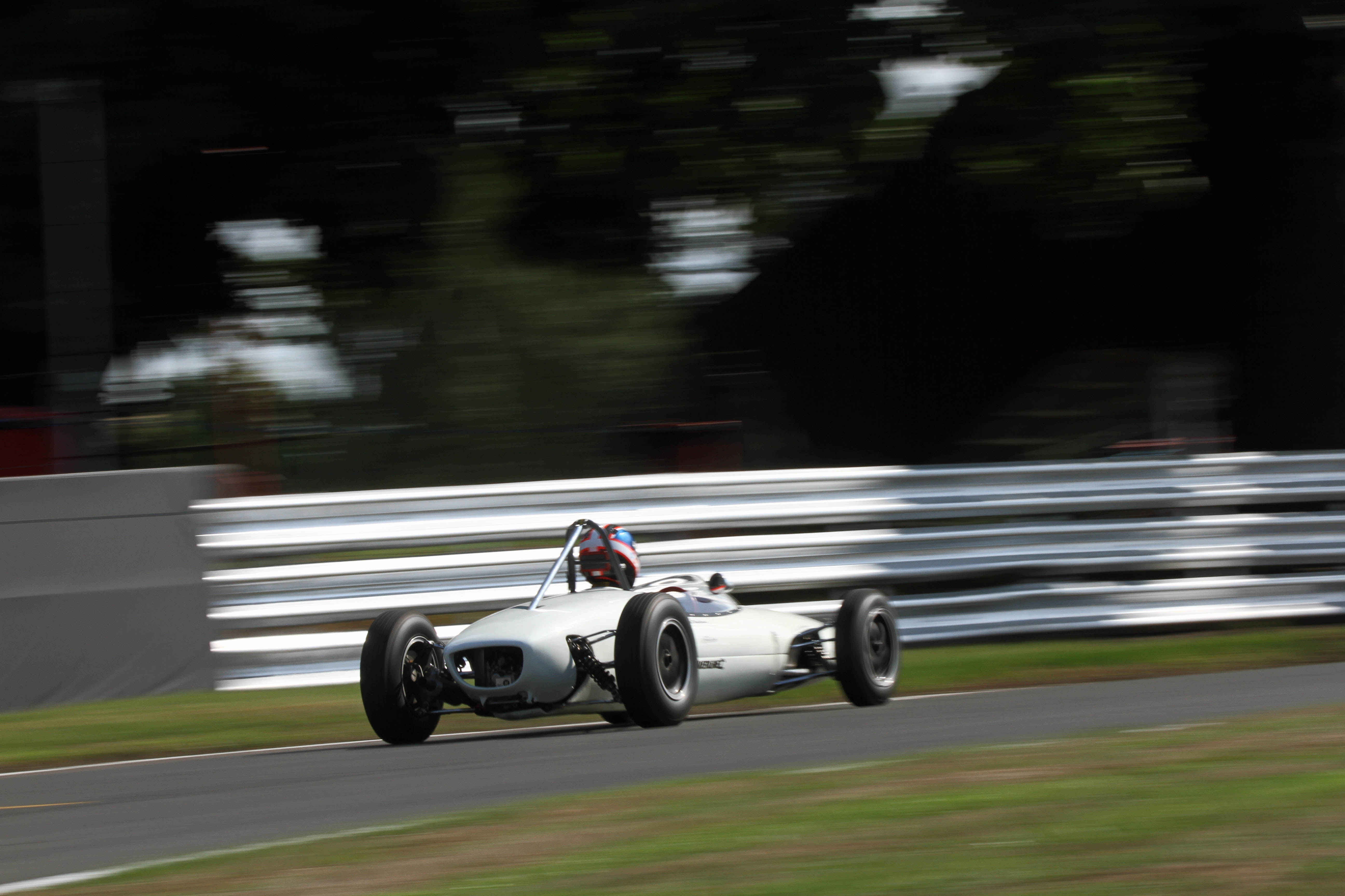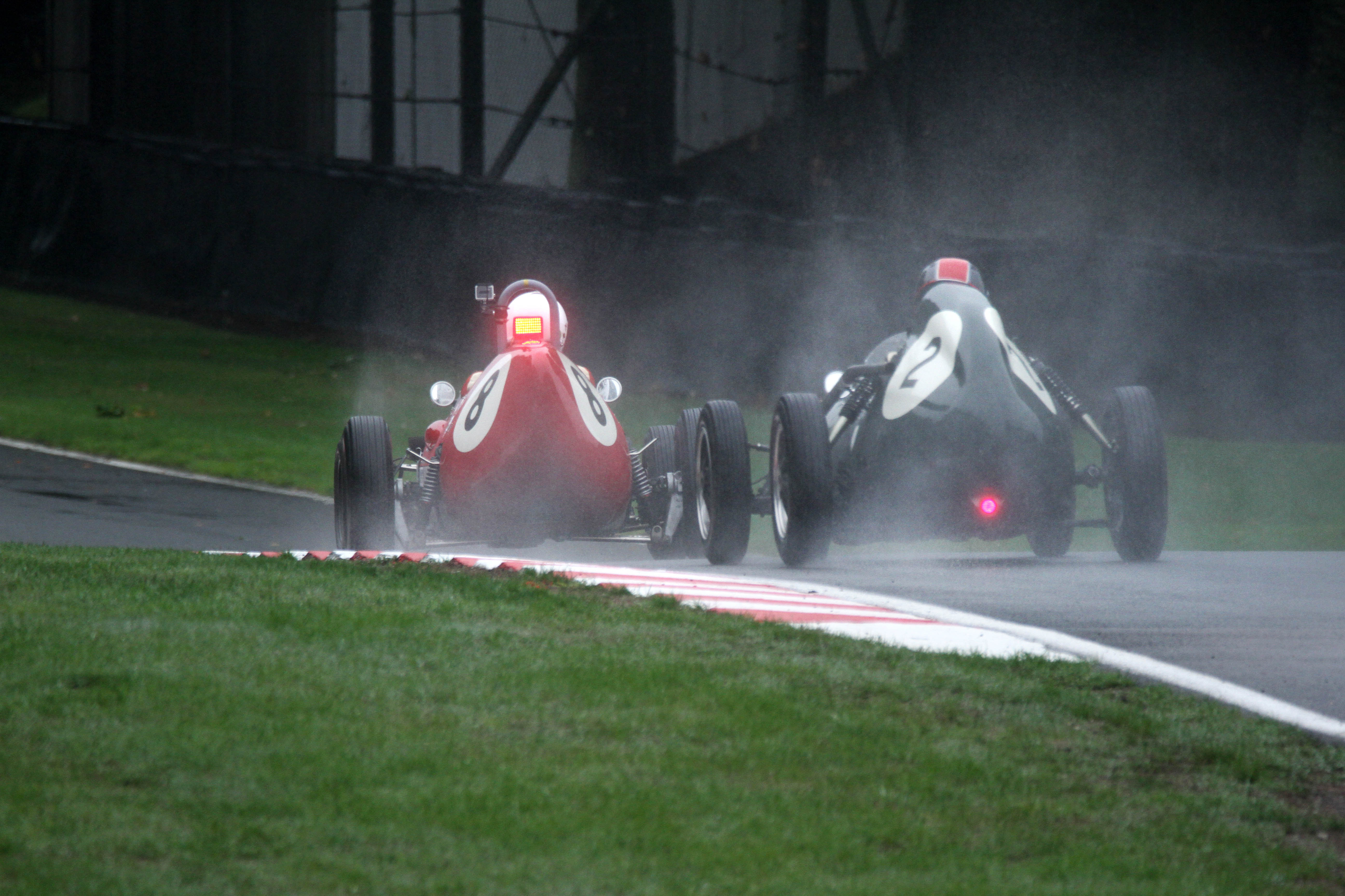 It was a good day in the rain for the Woodhouse family in Formula Junior. Dad Mark headed Alex Morton to win the front-engined contest and son Jack did the same later as he fended off Andrew Hibberd in the rear-engined race. Hibberd then switched from his Lotus 22 to his Brabham BT18 to chase John Milicevic in the first Historic Formula 3 race. A second F3 win in a re-started race on Monday was enough for Milicevic to retain his title with 11 wins from 12 starts.