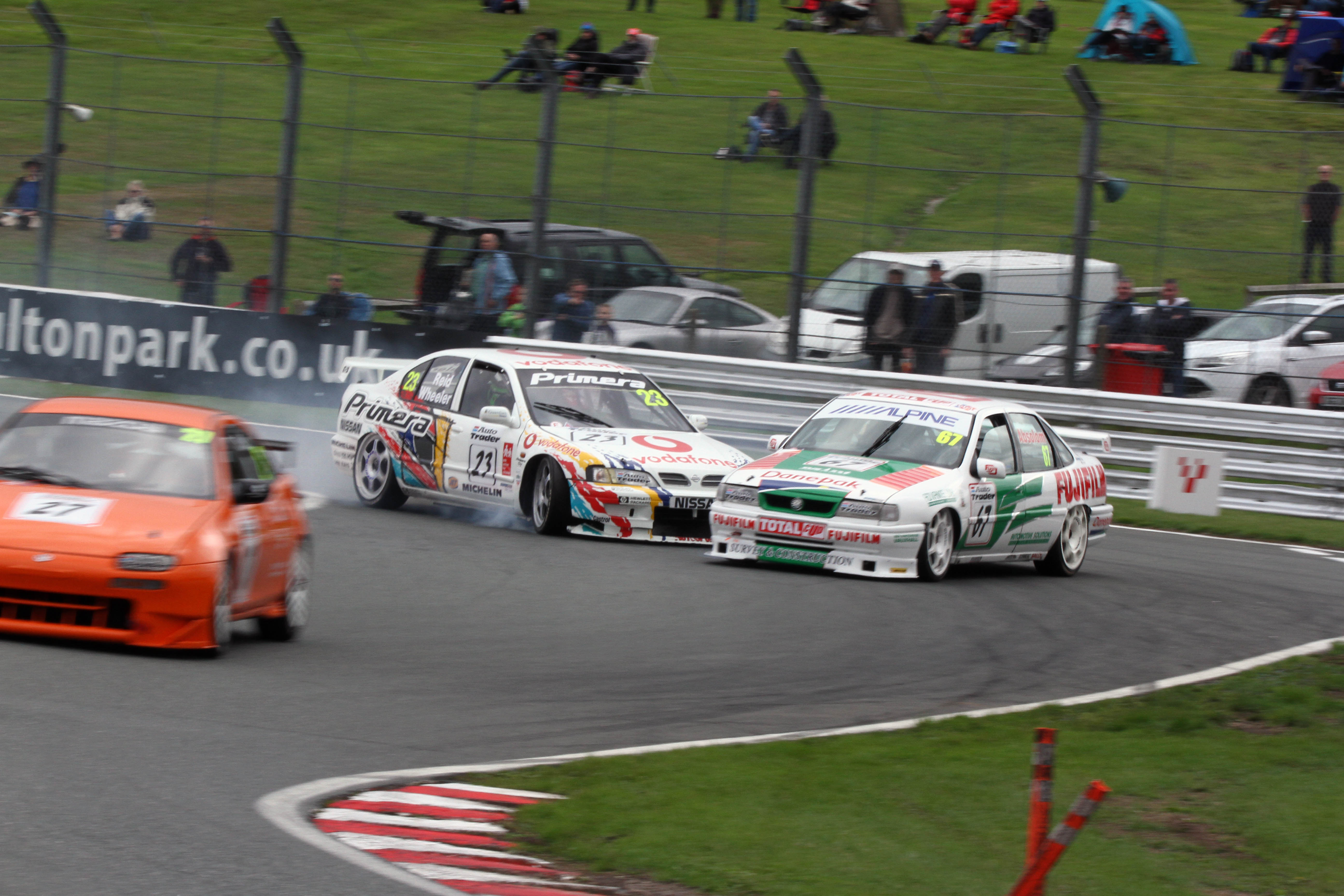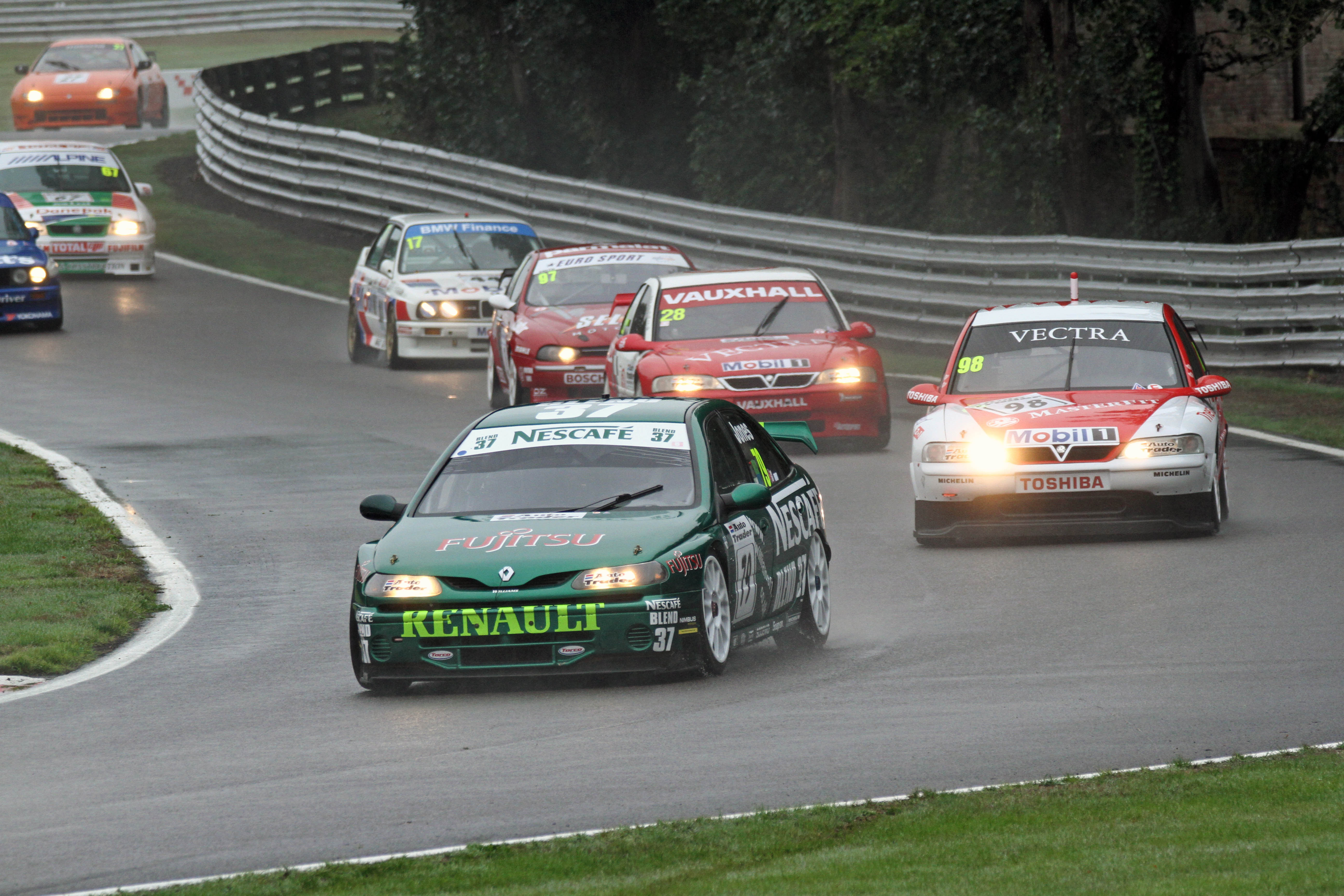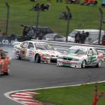 John Cleland (Vauxhall Vectra) twice topped the Super Tourers although Jason Hughes chased hard in Sunday’s until a broken alternator belt sidelined his similar Vectra. On Monday, Hughes finished at the tail of a great four-way battle for second which also featured Neil Smith (Alfa Romeo 156), Mark Jones (Renault Laguna) and Jason Minshaw (Volvo S40).