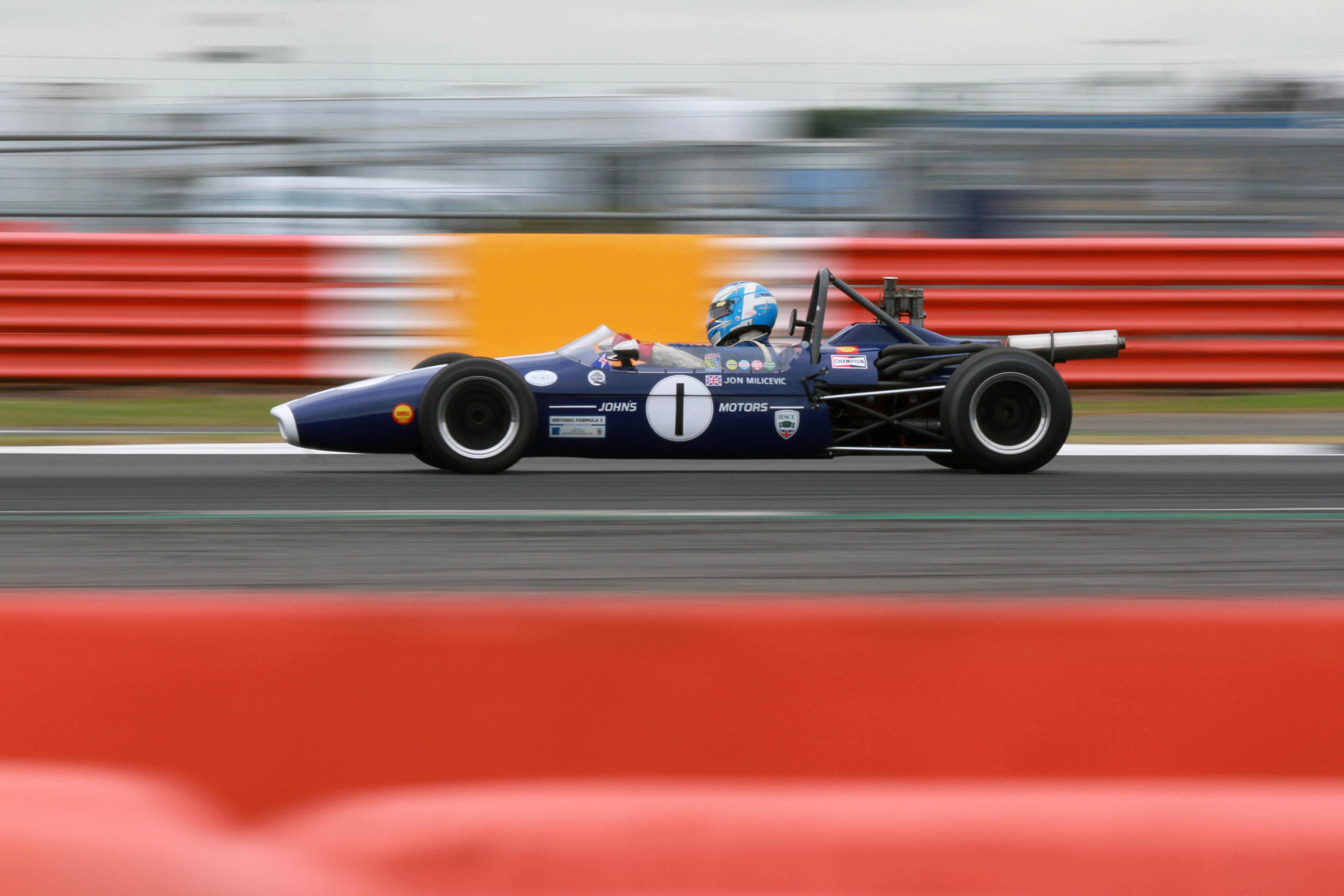 Other double single-seater victories fell to Michael Lyons (Derek Bell Trophy) and Jon Milicevic (Historic F3), while top class sports and GT action was provided by the Jaguar Classic Challenge, Guards Trophy, Pre ’80 Endurance and GT and Sports Car Cup.