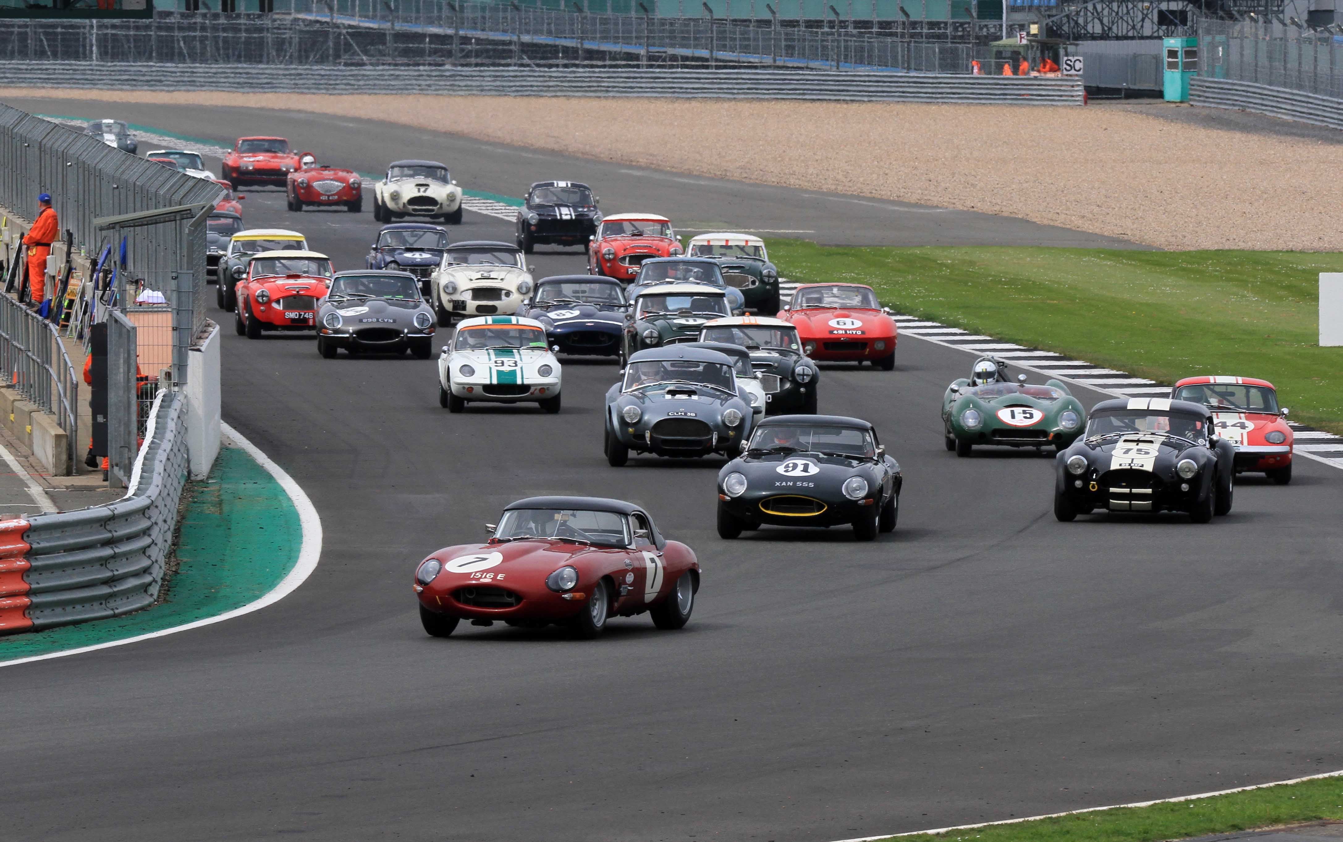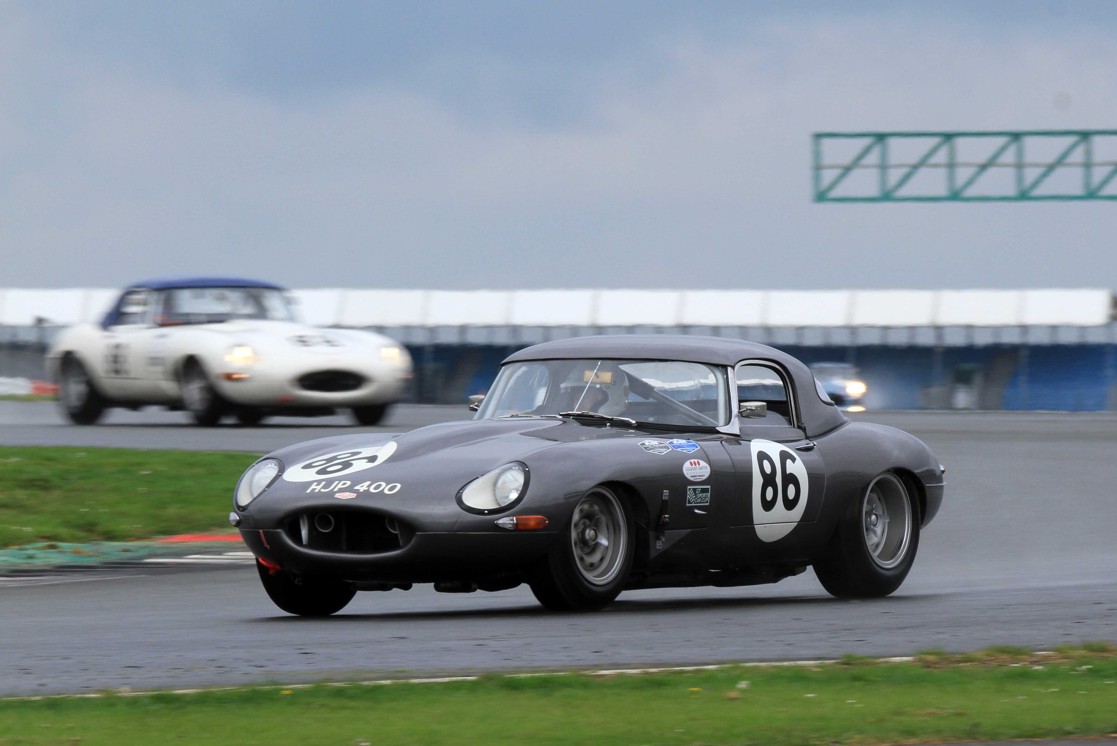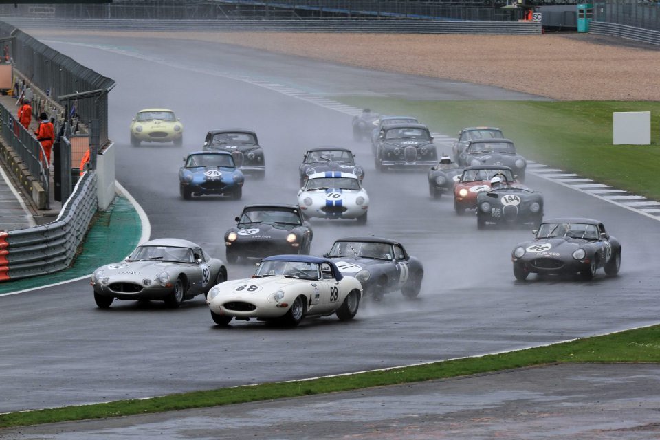The Jaguar Classic Challenge got the worst of the wet weather on Saturday, but that led to a fascinating race that was only decided in favour of John and Gary Pearson at the final corner. On a slowly drying track, Pearson was able to claw back the C-type of Paul Pochciol and James Hanson but going into the 19th and final lap Hanson was still seven seconds clear. Pearson rapidly closed down the C-type before making his move at the last corner of the hour-long race. Despite a couple of moments Mark Donnor drove a fine solo race to retain third, less than two seconds clear of the Joe Osborne/Richard Kent car.