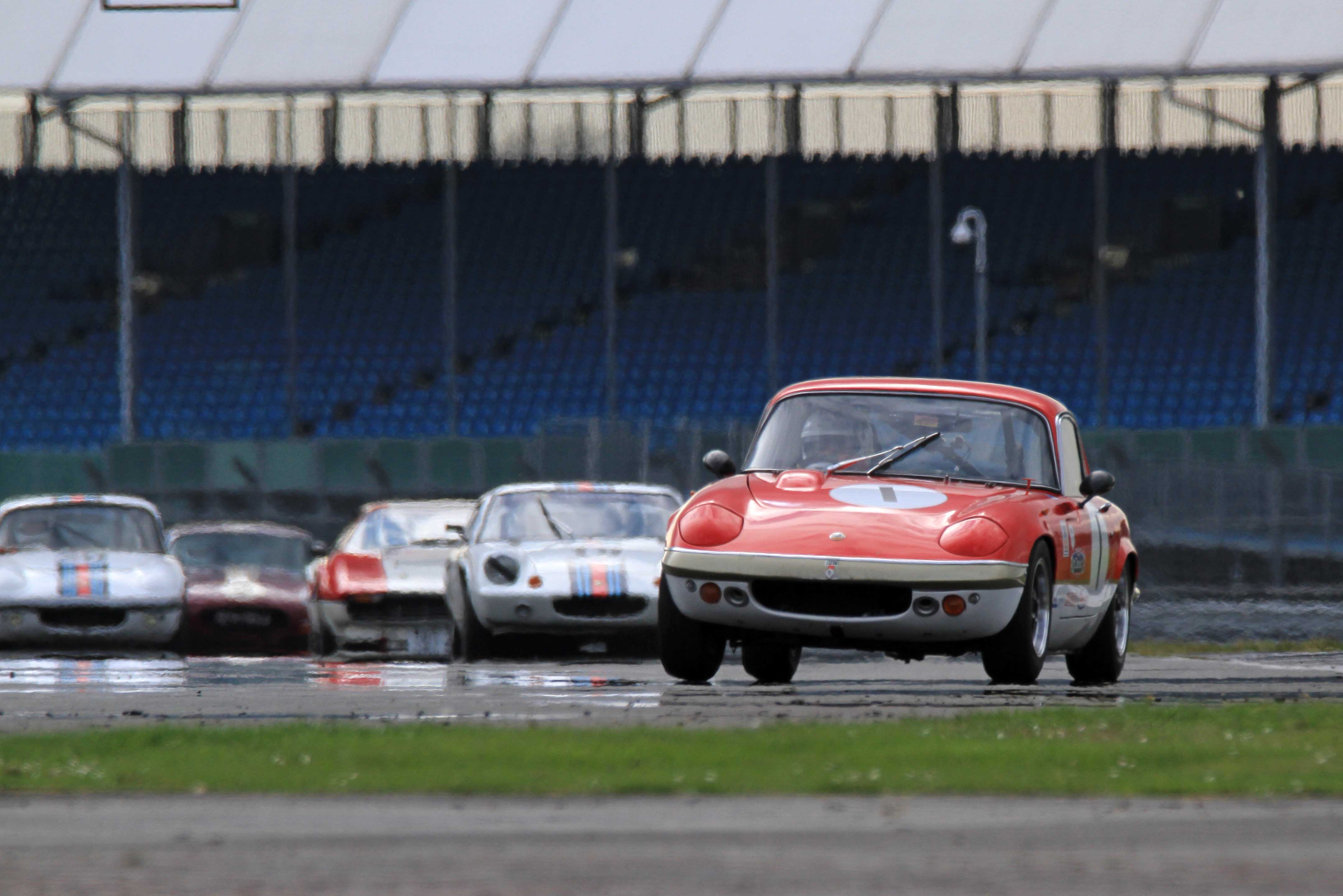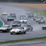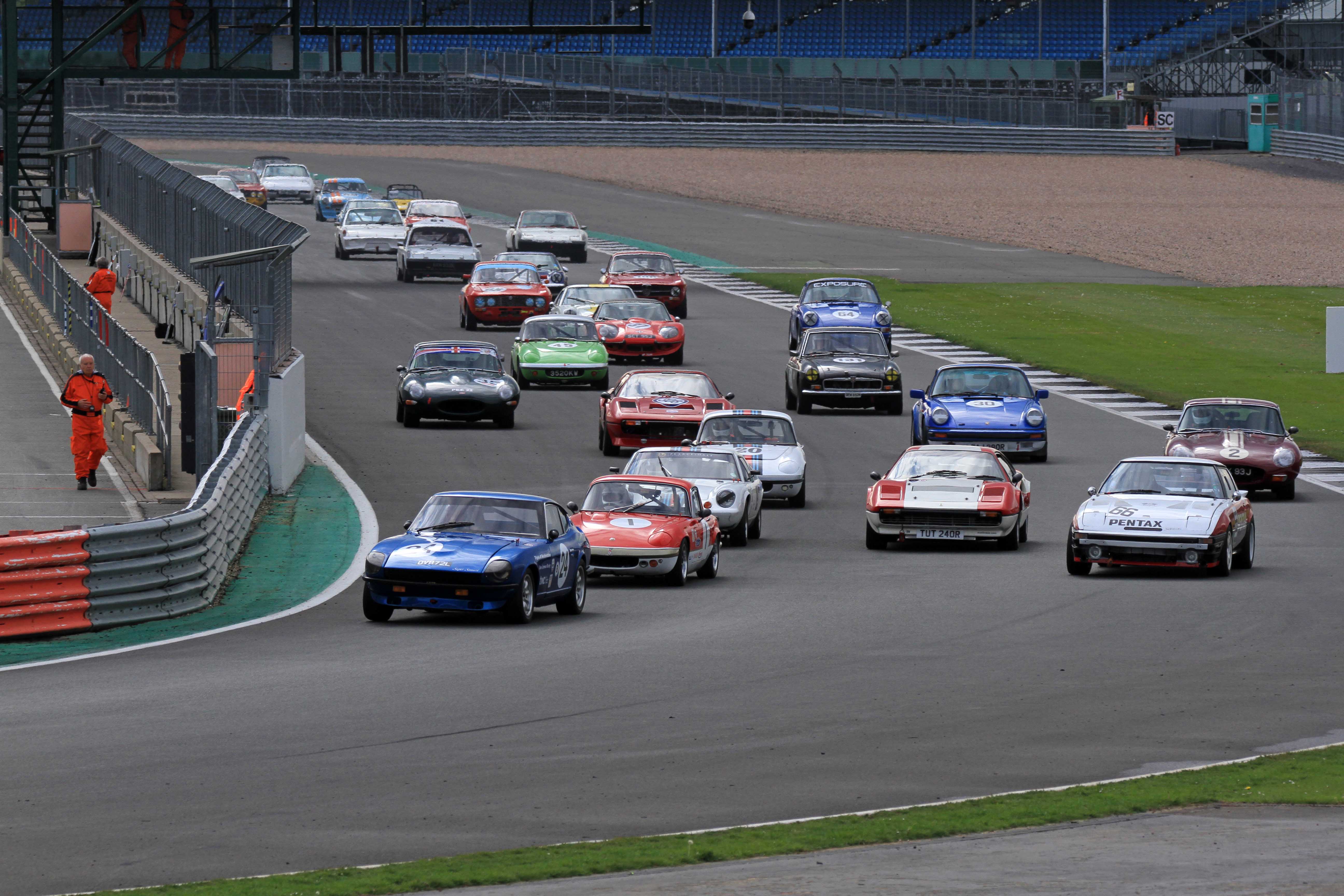 Charles Barter (Datsun 240Z) headed the 70s Road Sports contenders. He went clear on the opening lap and was later joined on the podium by Will and Mark Leverett in Lotus Europa and Elan respectively. Jeremy Clark was up in the mix until forced to make a quick pit stop to remove a loose bumper after a brush with a backmarker.