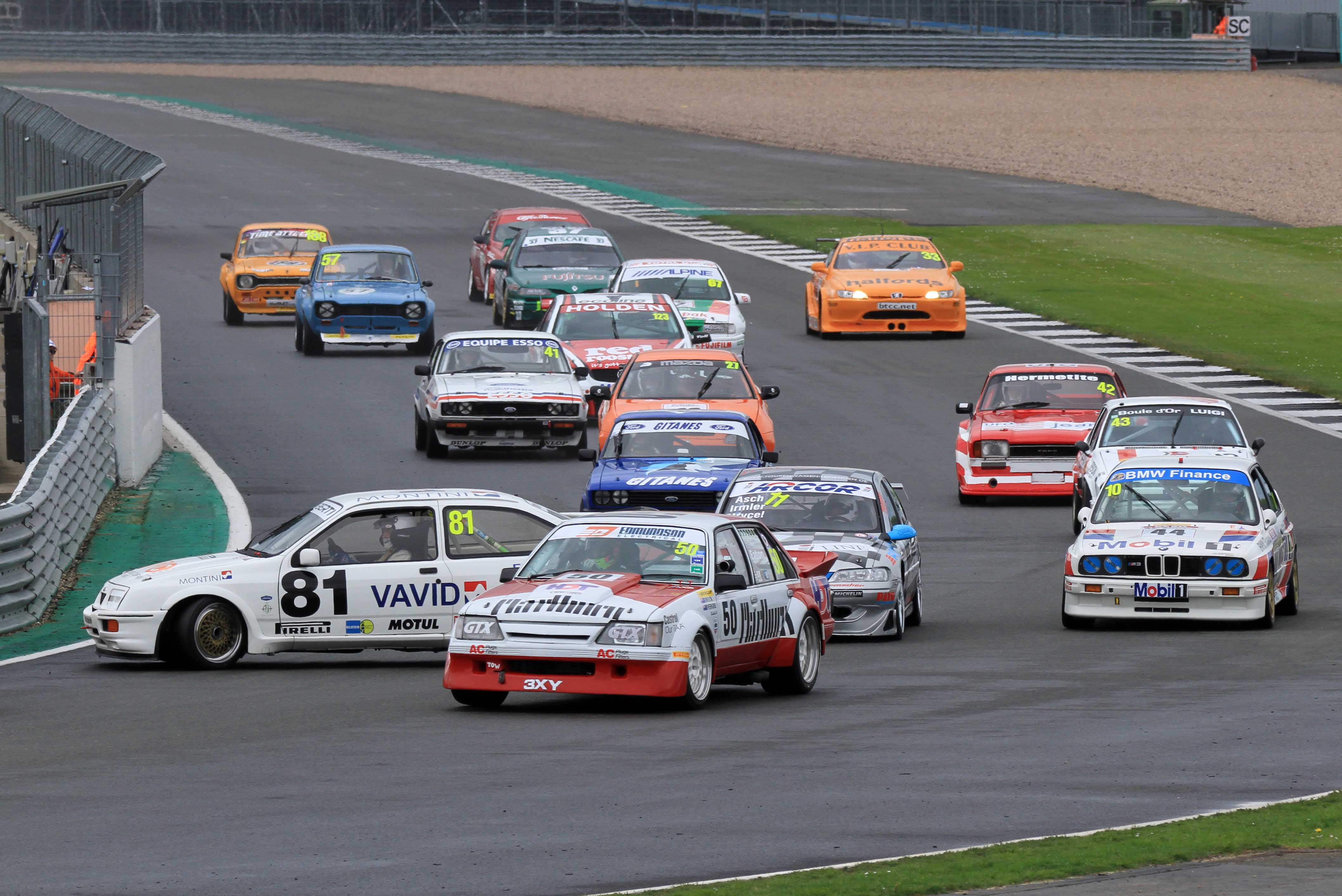 The Dunlop Saloon Car Cup got off to a most encouraging start with a diverse field. Eventually, Mark Wright’s Sierra RS500 won both races but it was never straightforward as various gremlins struck some time race leaders Mark Jones (Renault Laguna), Ric Wood (Holden Commodore) and Max Goff (BMW M3). Goff was unlucky to lose the lead in both races to a recurring fuel pump issue.