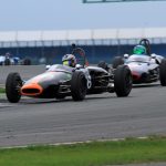 Jackson was back out to enact a fabulous Formula Junior lead battle with Sam Wilson. There was nothing between the Brabham BT2 and Lotus 20/22 and the lead changed several time before Wilson got to the flag a tenth of a second before Jackson. A little way back, Nick Fennell was a good third in his Lotus 27 from Adrian Russell and Mark Pangborn while sixth overall made Ray Mallock (U2 Mk2) clearly top front-engined runner.