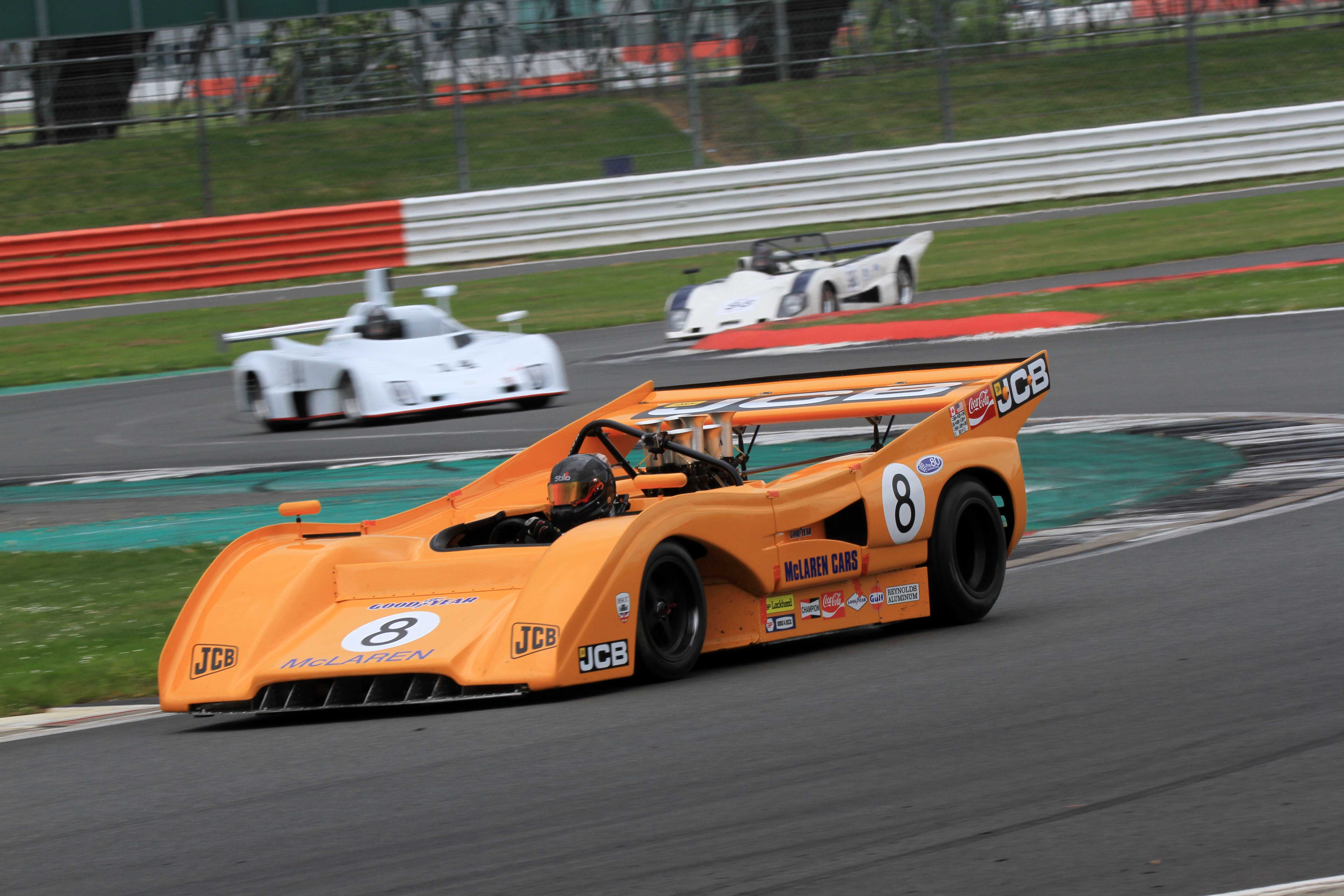 John Burton (Chevron B26) and Leo Voyazides (Lola T282) shared HSCC Thundersports wins but Dean Forward starred in both races in his vast McLaren M8F. A mix-up with the safety car cost Burton the second race as he was later excluded for driving back through the pack to the head of the field, while Voyazides took over victory after an electrical glitch in the first race left him starting Sunday’s race from the back of the grid.