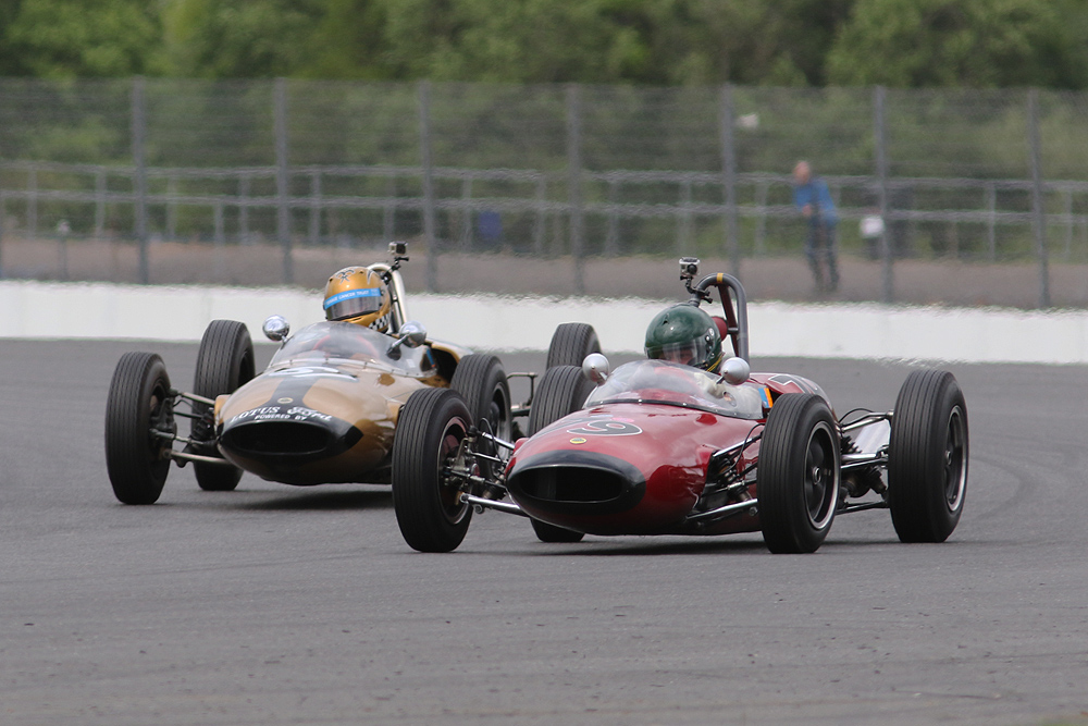 Sam Wilson took a clear double in Formula Junior with an unusually big advantage over the rest of the pack. Mark Woodhouse and Michael Hibberd were the nearest rivals as Richard Smeeton twice got the Wainer onto the podium.
