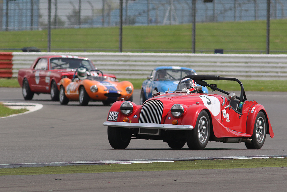Both William Plant (Historic Road Sports) and Jack Drury (Historic Touring Cars) made it two wins from two rounds this season. Fellow Morgan pilot Kevin Kivlochan kept Plant honest although John Davison was heading for victory in his Lotus Elan until he inadvertently knocked the fuel pump switch off on the final lap. Drury, meanwhile, had to contend with a spirited chase from Rob Fenn’s Ford Mustang.