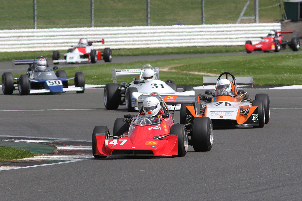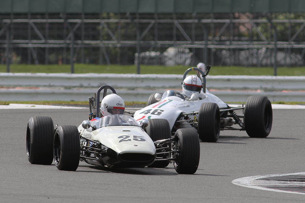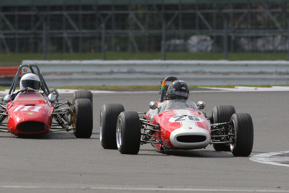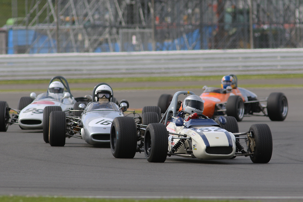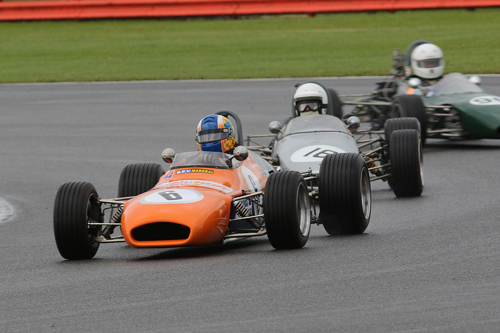 Martyn Donn (Lola T760) had a great run to second in the wet as conditions worsened and finally required an early halt to Saturday’s race. On a dry track the following day Jamie Brashaw moved up to second in his Formula 5000 March 73A. Max Smith-Hilliard was a welcome invitation runner as he gave his recently acquired Fittipaldi F5A F1 car a shakedown and completed Sunday’s podium.