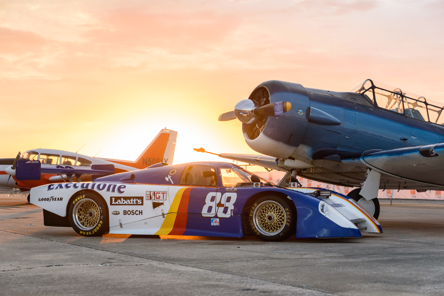 An off-track highlight was the now traditional “fly-in” and display of iconic military and civilian aircraft from the last half century and beyond, including a rare North American P-51D “Mustang” of Jim Lyons and a North American T6-G “Texan” that was flown to Sebring by Jon Rising. Both planes made their event debut in addition to a first-time appearance by a 1943 Boeing N2-S3 Stearman. Returning planes include a 1942 Vultee BT-15 Valiant piloted by Tom Smith and the similar 1943 Vultee BT-13 Valiant of Bryce Bock, a 1941 Beechcraft C-45, 1955 Beechcraft T-34B Mentor, 1962 Piper U-11A Aztec, 1956 North American T-28C Trojan and 1973 British Aviation LTD Bulldog.