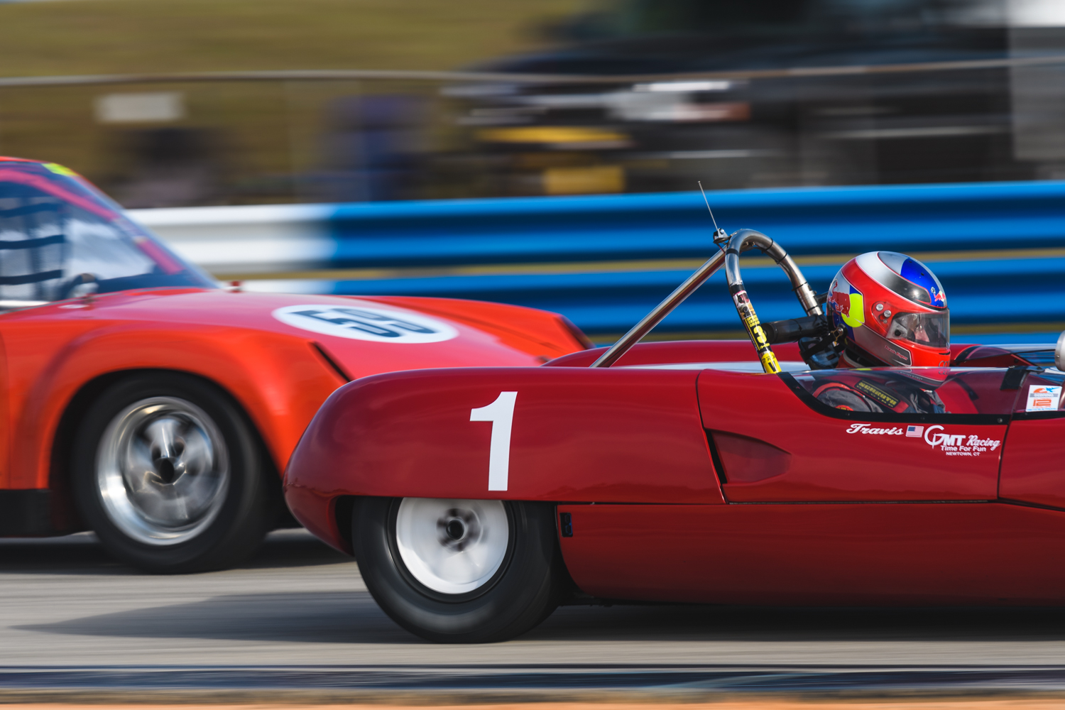 The McClendon International sweep was completed by the second-place 1969 No. 127 Lola T165 of Italian driver Mauro Casedei and Seiler’s Swiss countryman Andy Feigenwinter. The No. 127 won Rounds 2 and 4, leading the No. 77 to the line in both segments, but in the end Seiler had enough overall pace to maintain first place throughout the race. The Lolas were the only competitors in Group A to complete a total of 68 laps.