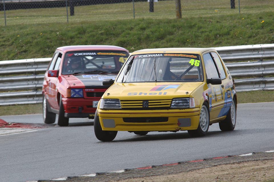 The opening race for the new 80s Production series featured a modest grid, but it was an encouraging start as the Peugeot 205GTi of Chris Dear ran home a convincing winner after an early battle with the Vauxhall Nova of Jason Wood.