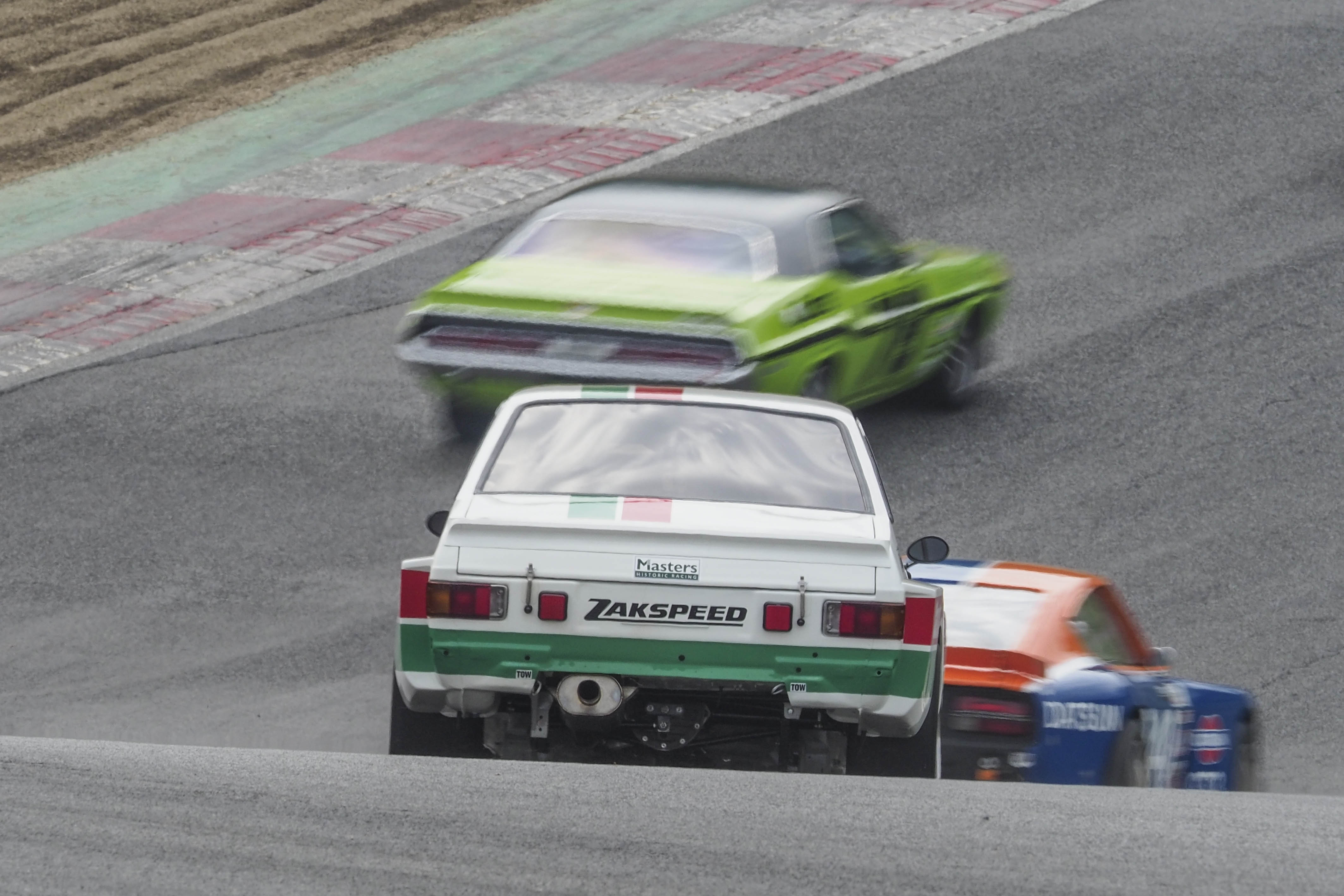 Greg Thornton dominated the pre-78 class in his Lotus 77, finishing fifth overall, well ahead of Max Smith-Hilliard (Fittipaldi F5A) and Jason Wright (Shadow DN8). Initially, Thornton had no less than four ground-effect cars between himself and Max Smith-Hilliard, but first Steve Hartley (Arrows A4) and Joaquin Folch (Brabham BT49) touched, and then Thornton’s team mates took each other other out, ending the race prematurely. Brooks lined up Kubota into Druids and dived through on the inside but the Japanese still turned in and was launched over the top of Brooks’s left front wheel. Taking evasive action, Smith-Hilliard ended up in the gravel trap. Full report