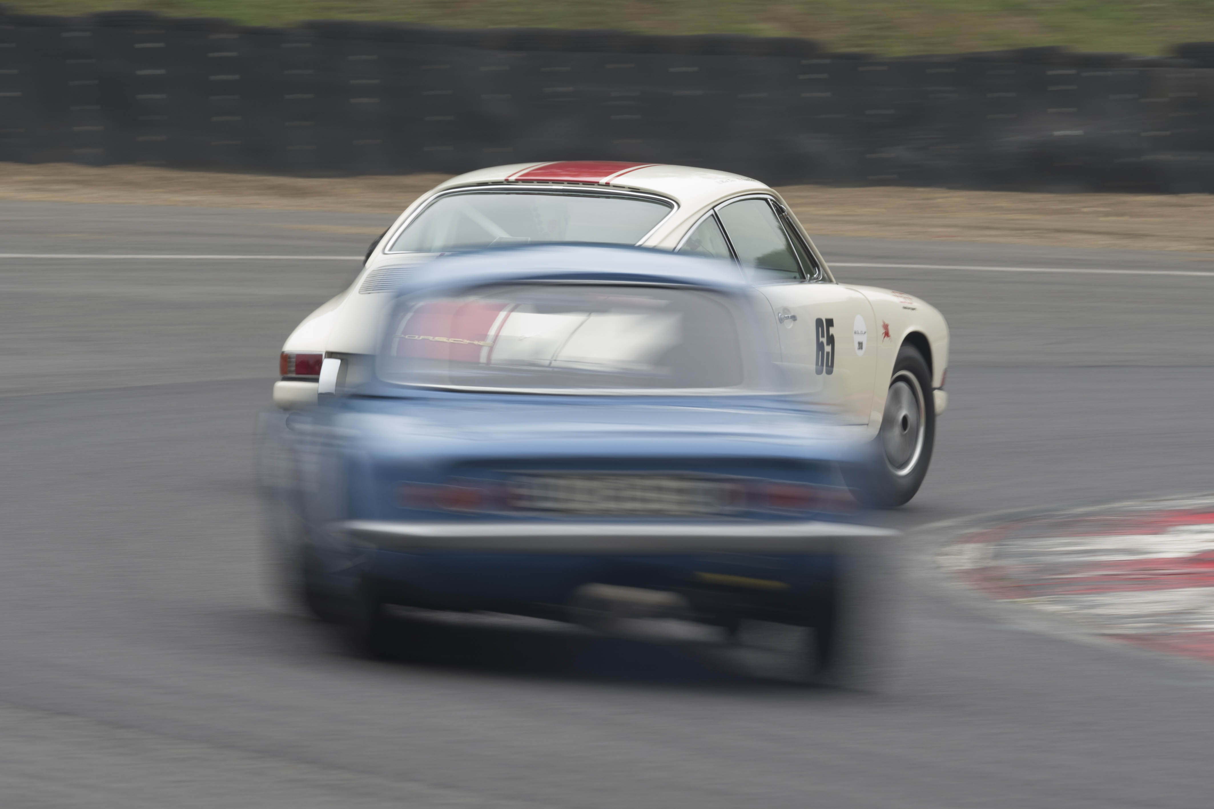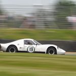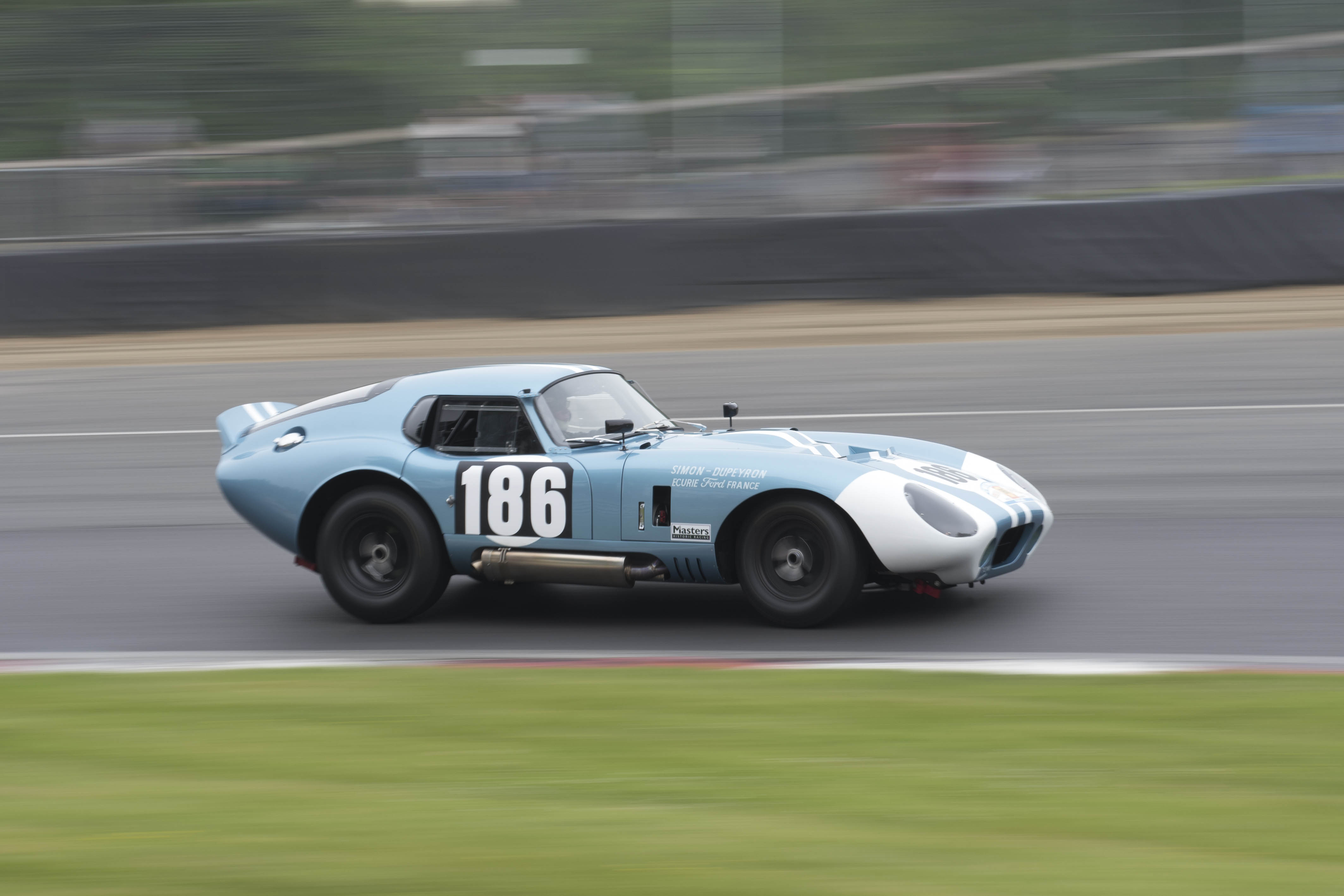 Shaun Balfe and Andy Wolfe – a driver pairing in the Wolfe AC Cobra for this occasion – were happy to take the win in the Masters Gentlemen Drivers race at Brands Hatch when, with less than half an hour to go, a dominant Mike Whitaker was given the black-and-orange ‘meatball’ flag for a loose exhaust, having gone off on lap 34. Whitaker dropped back to third after the issue was dealt with in the pits but recovered to take second place from fellow TVR Griffith driver John Spiers.