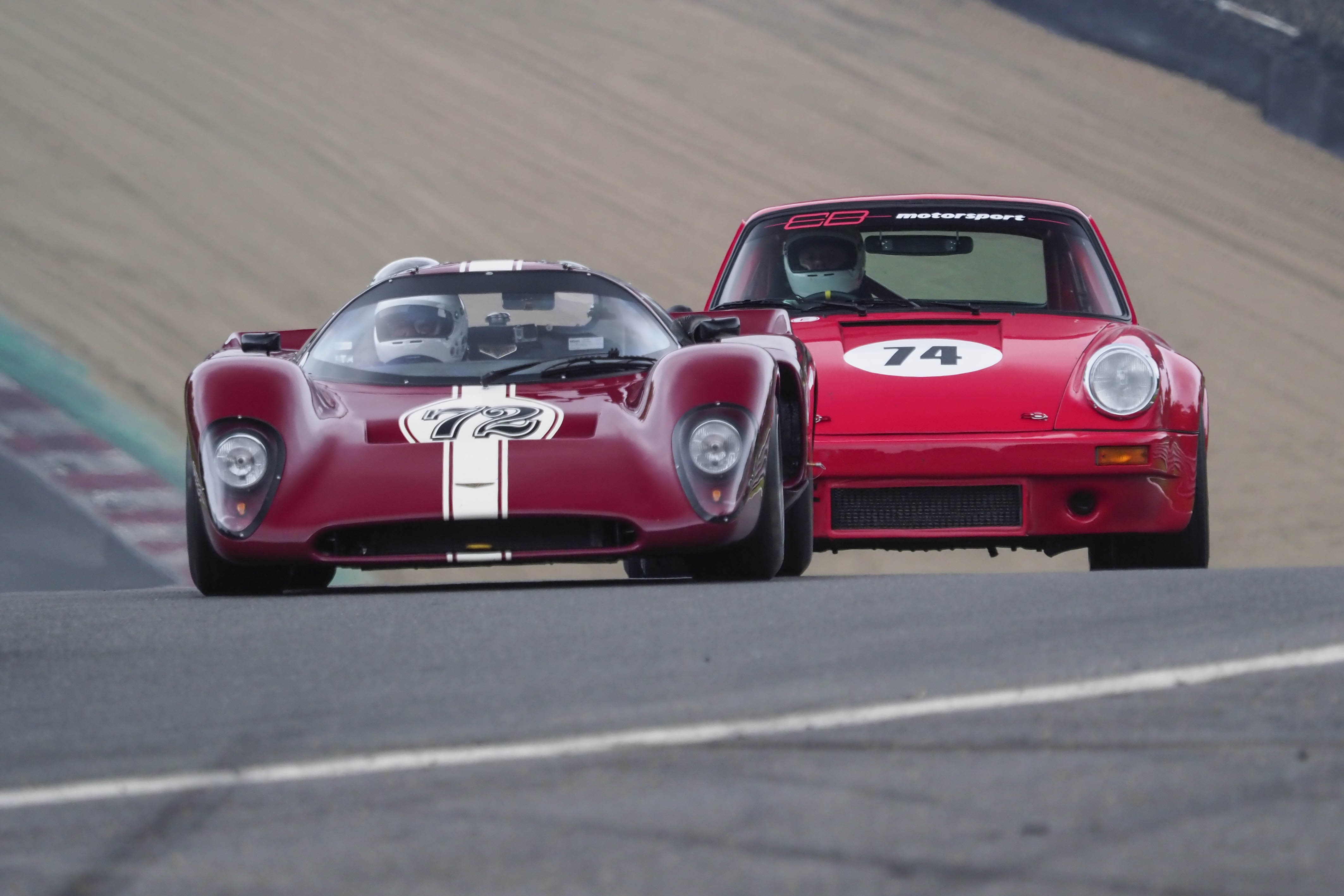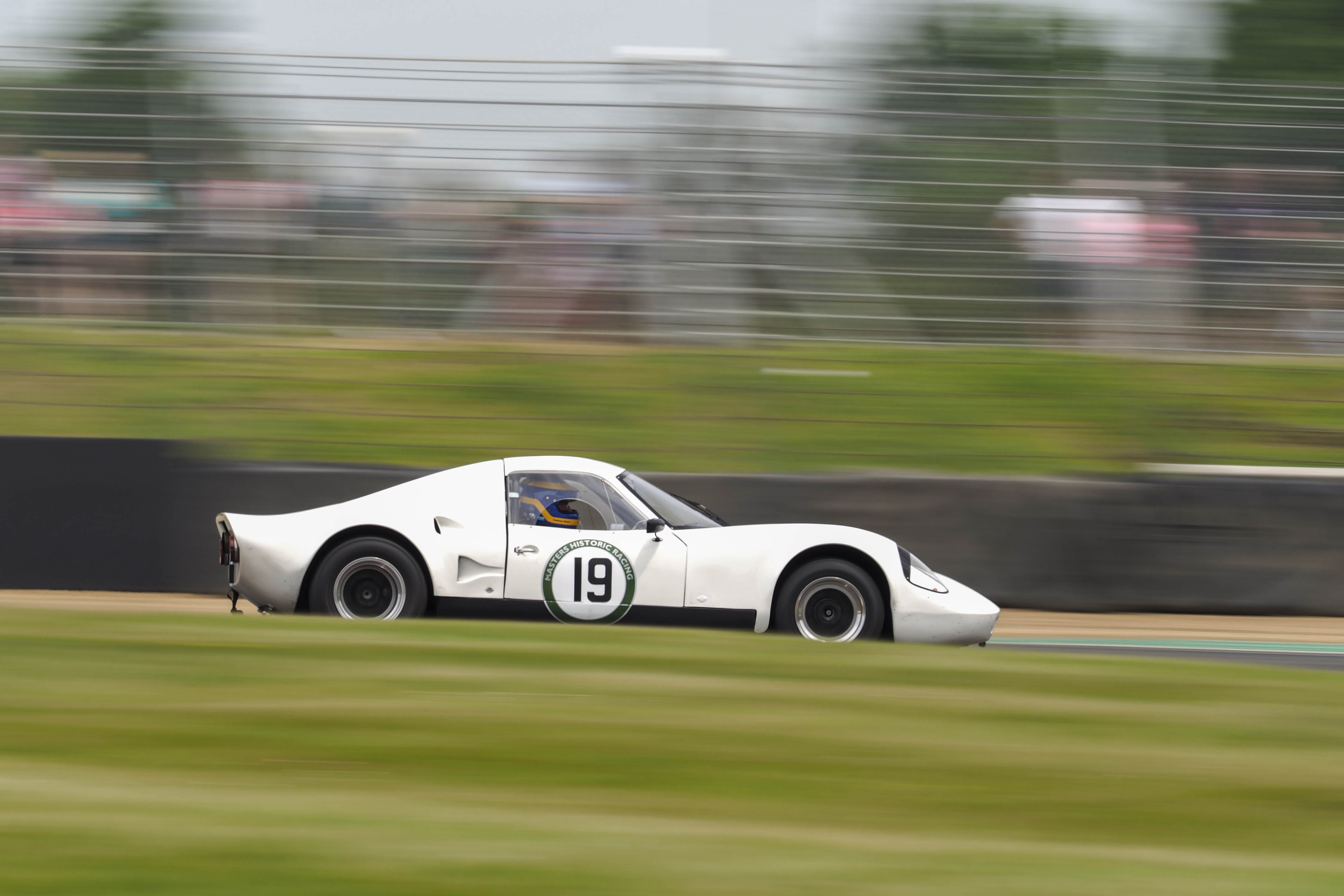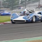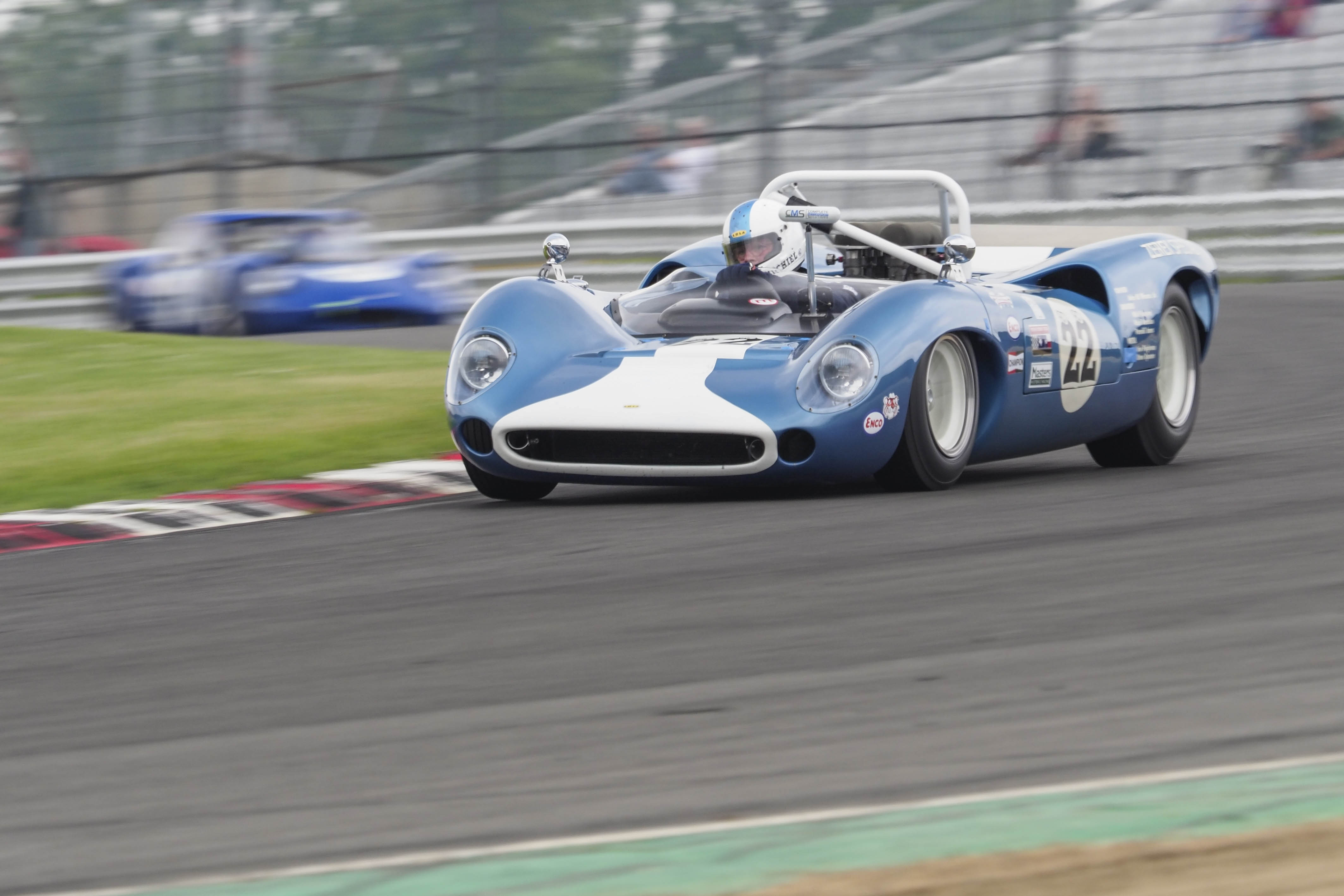 Leo Voyazides and Simon Hadfield came through from the back of the grid to win a heavily safety-car-punctuated and ultimately shortened FIA Masters Historic Sports Car race at Brands Hatch. Their Lola T70 Mk3B was up into third when the pit window opened and then won another place when Jason Wright’s T70 Mk3B was held up in the pits, having been hit after an unsafe release of Paul Allen’s Lola T212. With Hadfield in the car, the leading Gonçalo Gomes/James Claridge Lola T212 was quickly dealt with, after which Hadfield ran off to a 11-second win over Wright, with Henry Fletcher’s Chevron B19 in third.