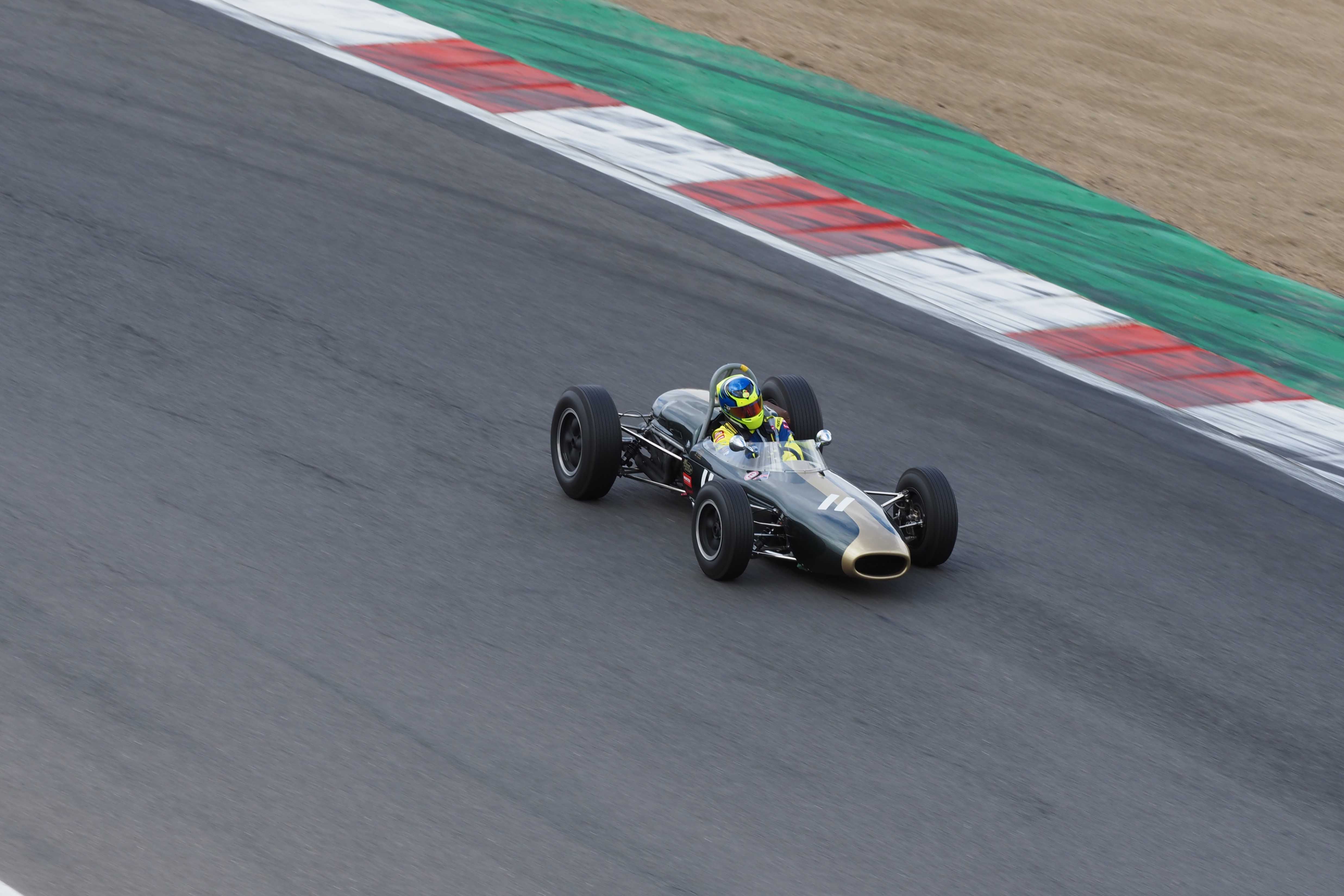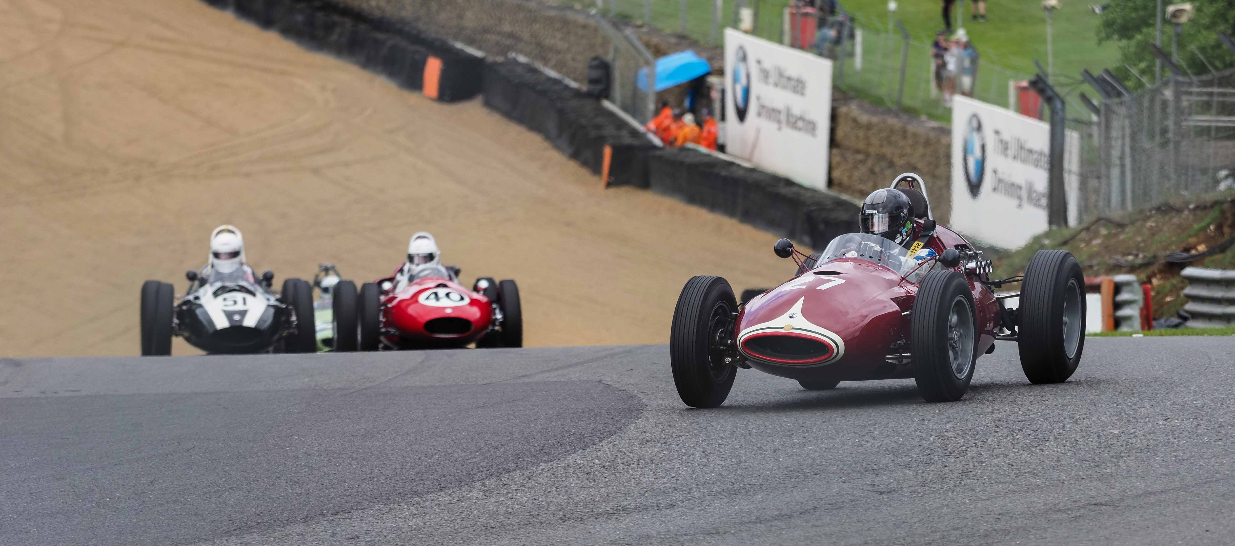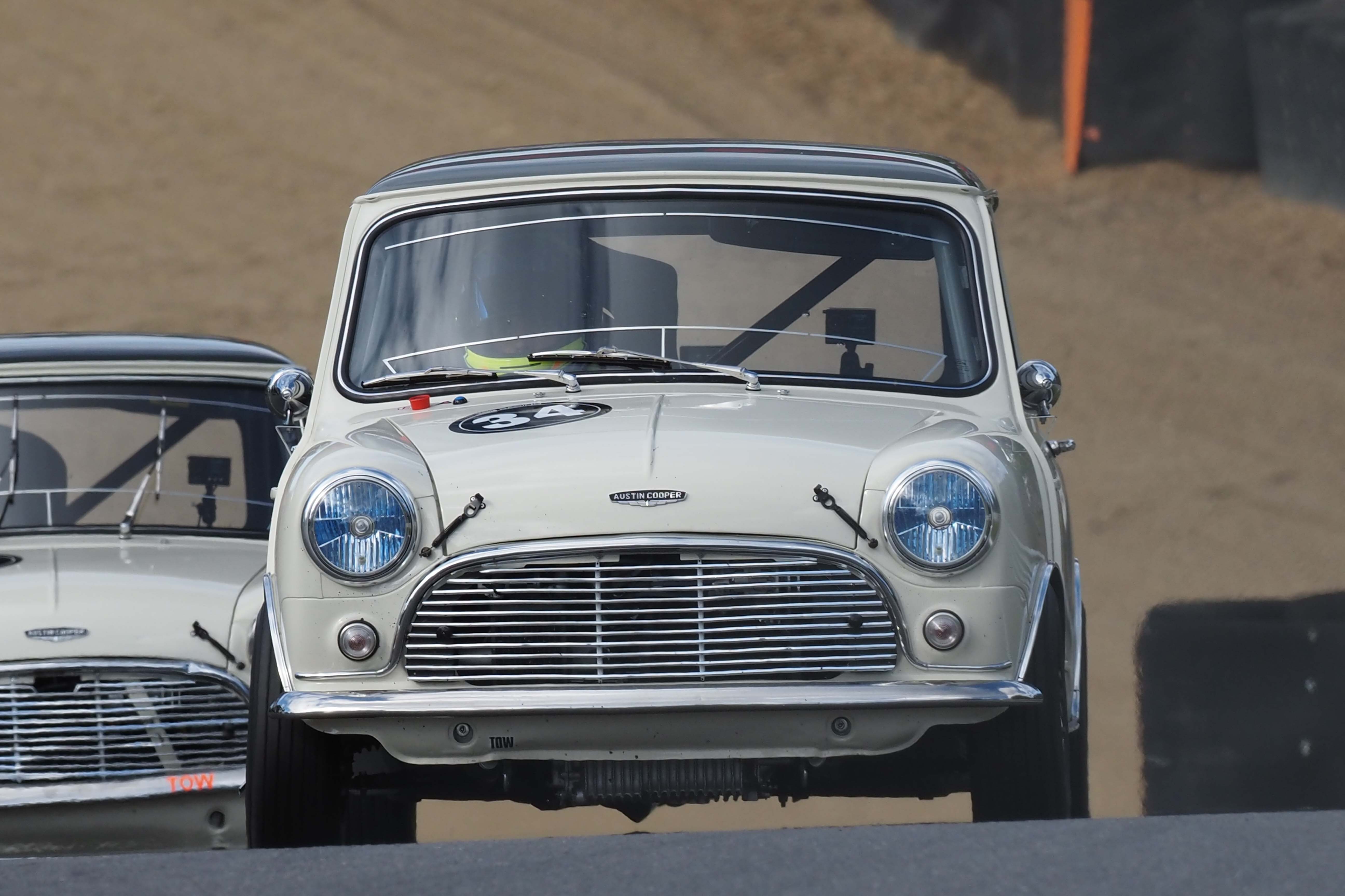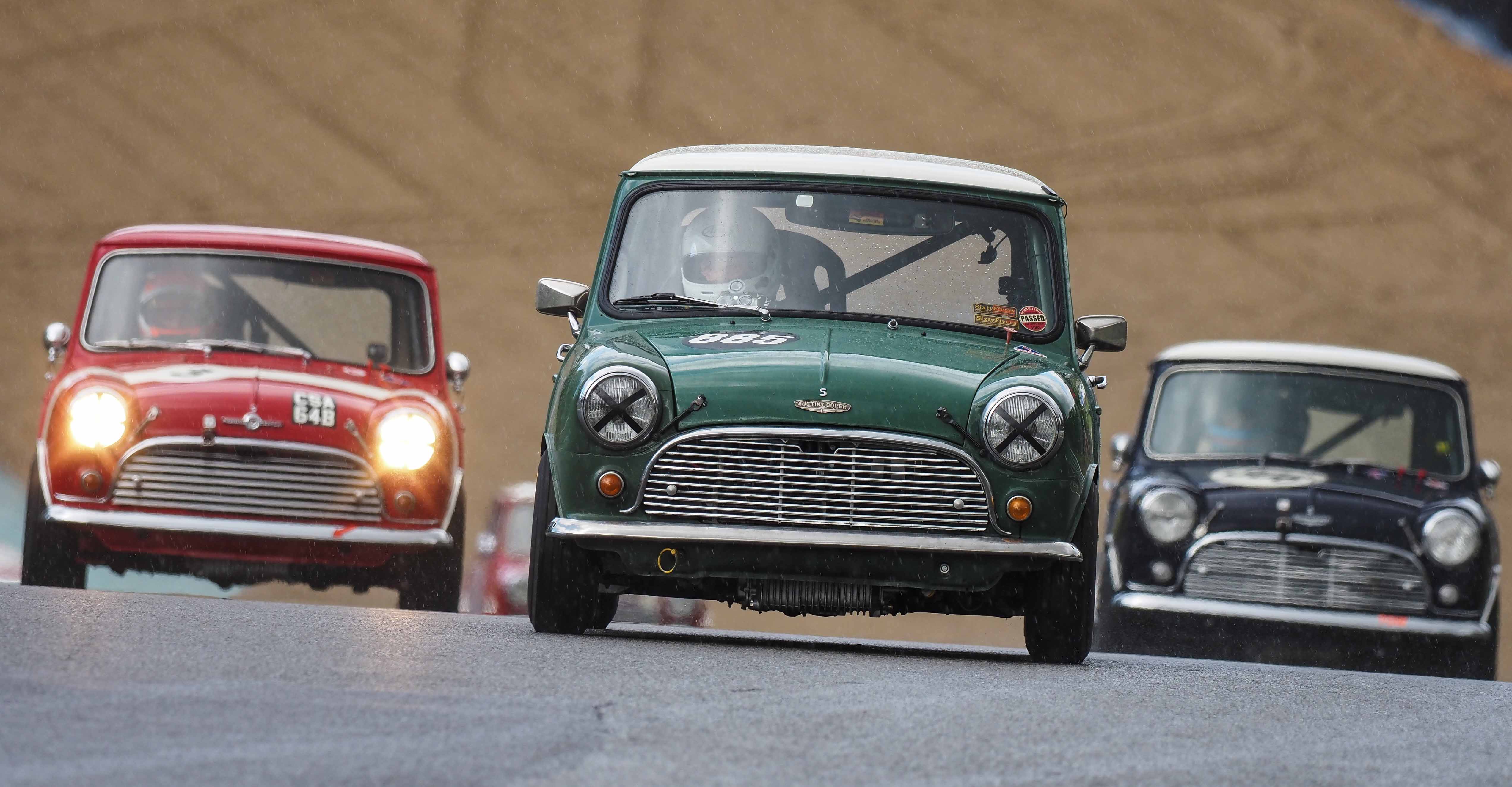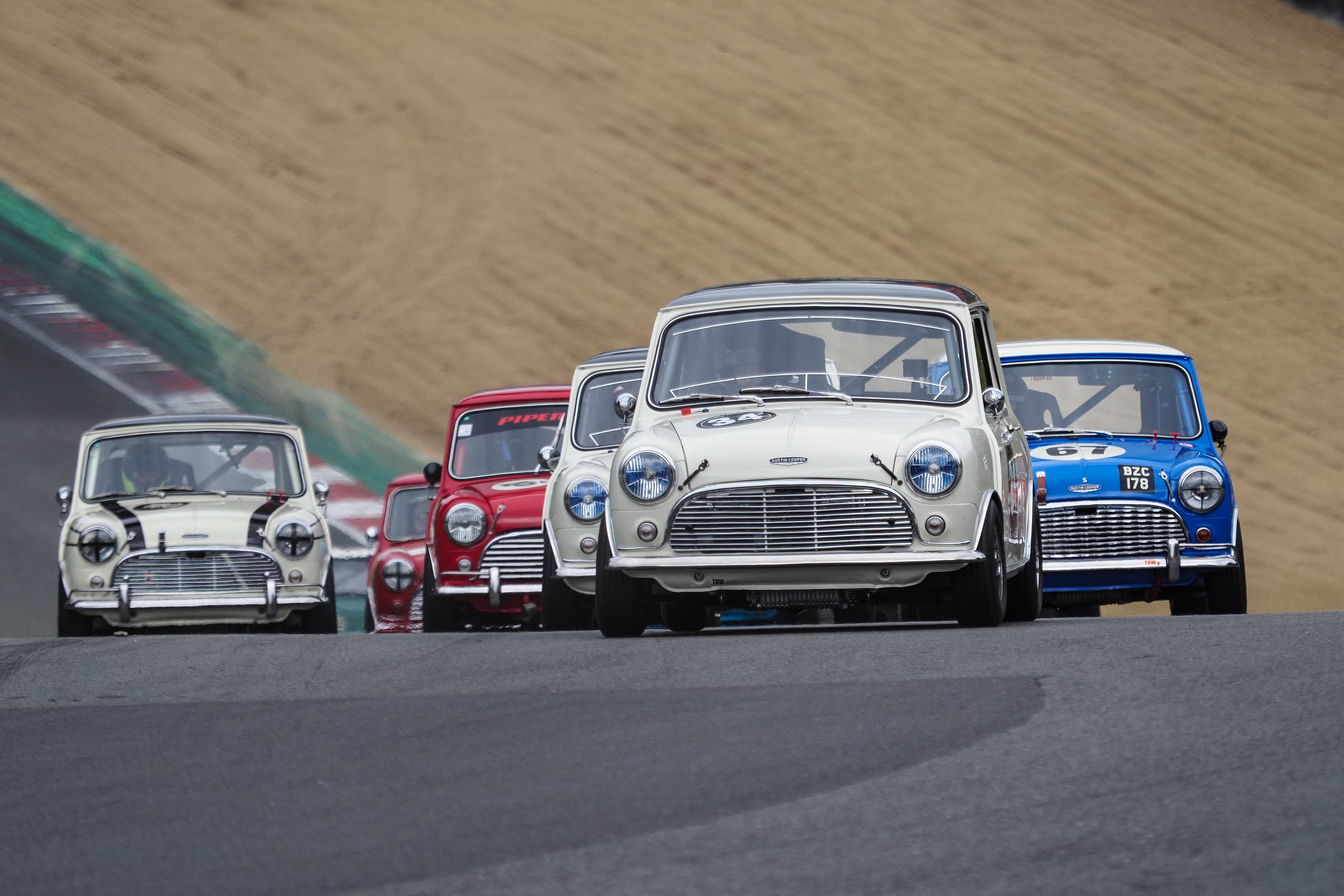 Jeff Smith took the victory in the opening Masters Pre-66 Mini race of the weekend a controlled win from pole position qualifier Tom Bell. Smith made a rocket-ship start from fifth, catapulting him into a position to challenge Bell immediately at the cambered Paddock Hill Bend right-hander, with Michael Cullen maintaining his grid slot of third. Joe Ferguson took the win from Jeff Smith after another fantastic battle in race two