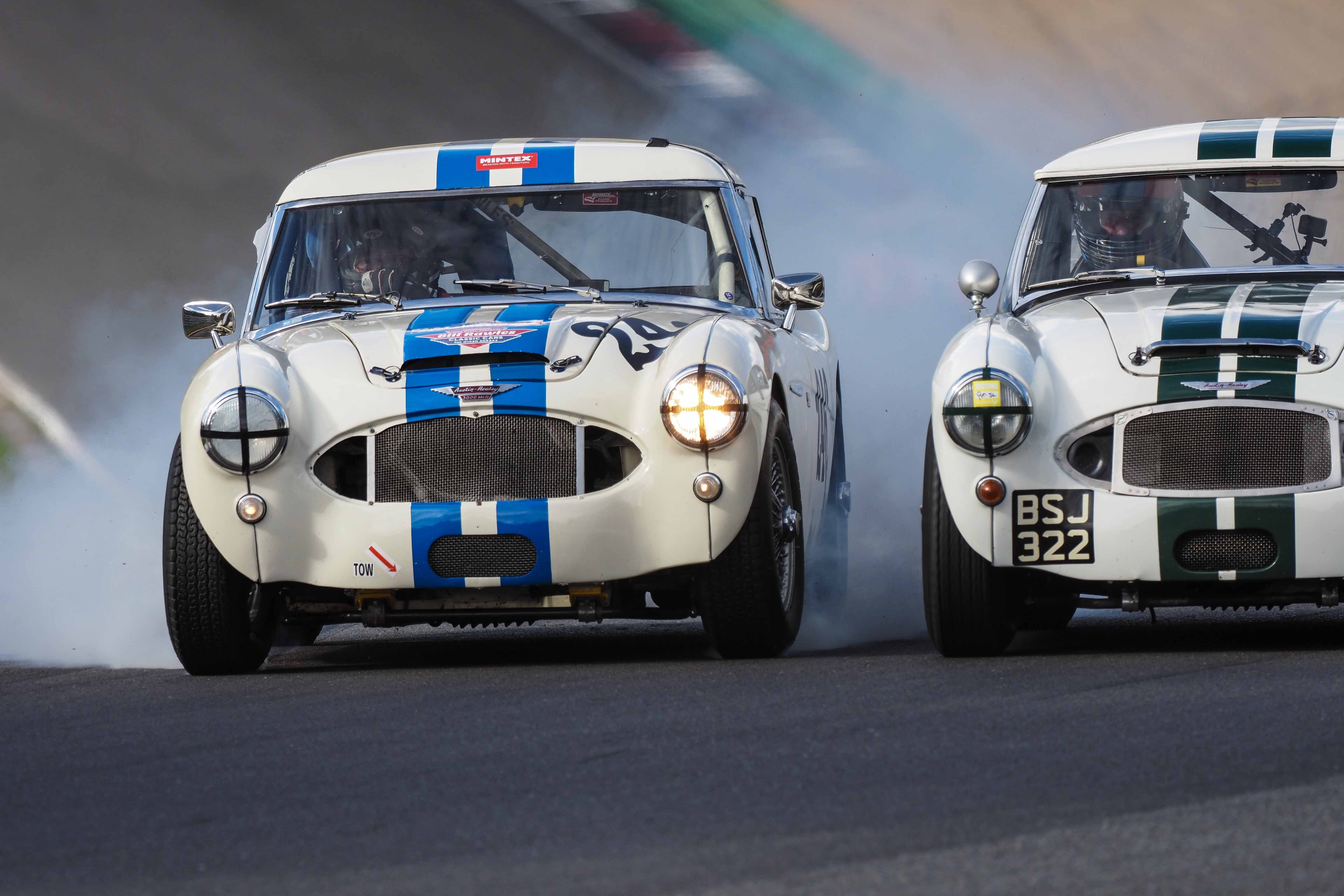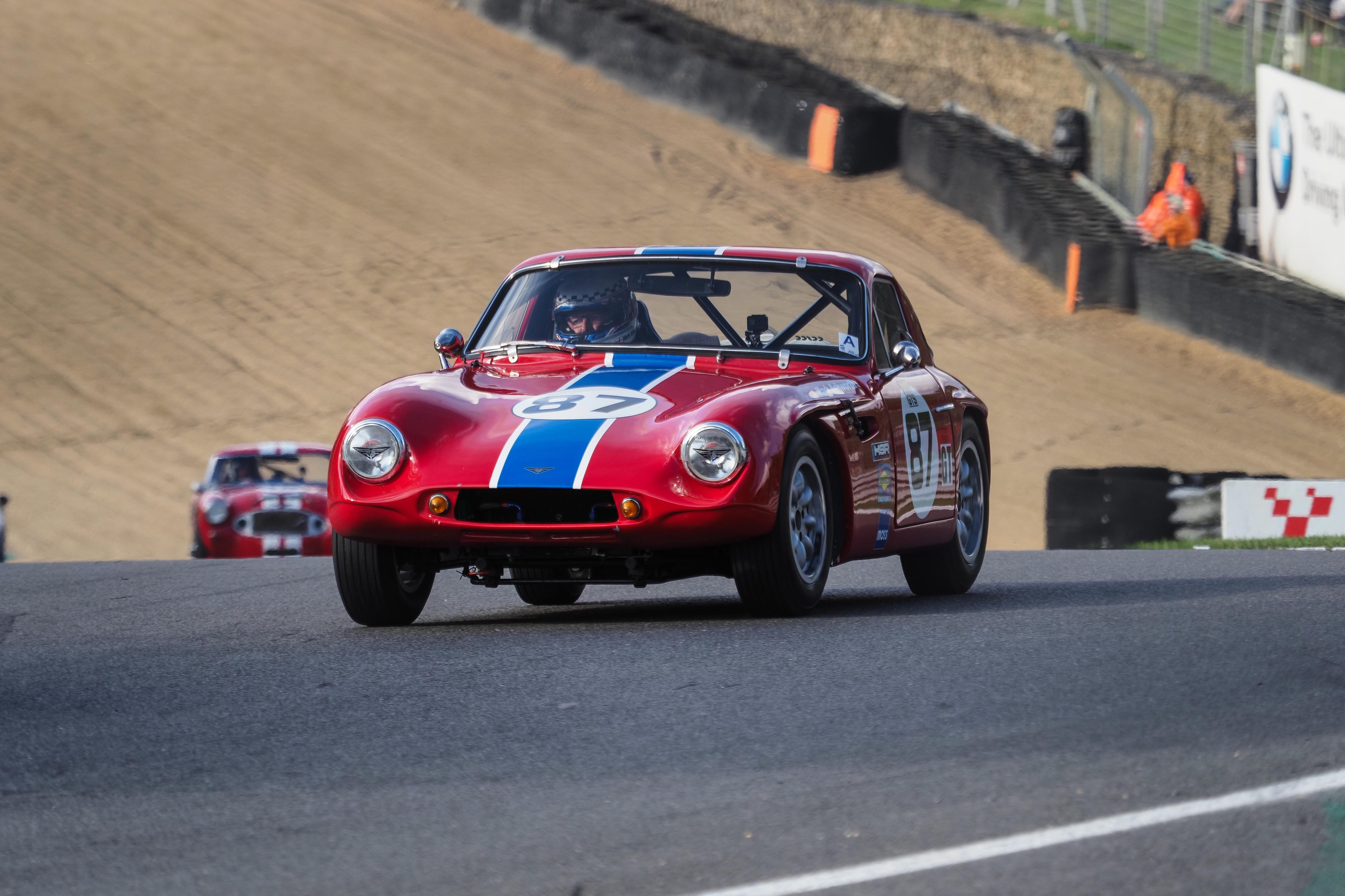 Equipe joined the weekend with their Equipe GTS and Pre-63 grids with two full-to-capacity races. It was an MGB piloted by Tom Smith who managed to convert a pole time of 1.51 into a win in Saturday’s 50 car grid, the race had to be restarted after an incident caused a false start, but the restart got away cleanly and in the closing laps it was the TVR Grantura of Lee Atkins bearing down on an unstoppable MGB in the closing laps. In Sunday’s race (a completely different grid) Lee Atkins went a second quicker to qualify on a 1.50 sec lap, but the race was won by Mark Ashworth in another TVR Grantura with Lee second and the super fast red Healey 3000 of Mark Holme in third place.