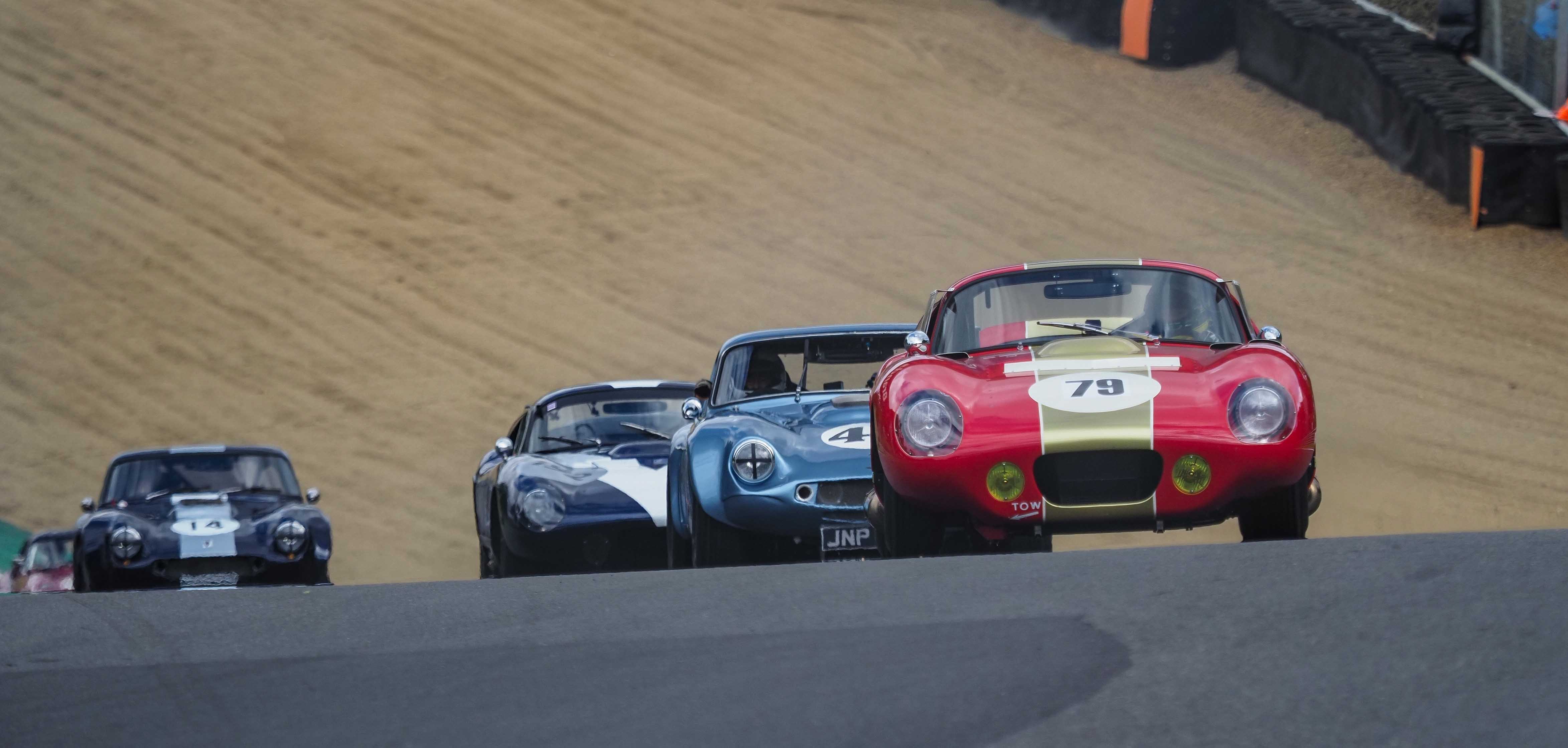 Mike Whitaker wrapped-up an excellent, and largely dominant, victory in the 90-minute Gentlemen Drivers race with an almost faultless performance in his TVR Griffith. After almost an hour and a half of tremendous Masters Historic action, there was a somewhat subdued Safety Car finish due to a car becoming stranded in the gravel with just four minutes to go.Whitaker won from the Shelby Daytona Cobra of Calum Lockie and Julian Thomas, while third position went the way of the Griffith of John Spiers and TV star Tiff Needell. Frustratingly, a luckless penalty for the Jaguar E-Type of Gary Pearson and Alex Brundle cost them an all-but guaranteed podium.