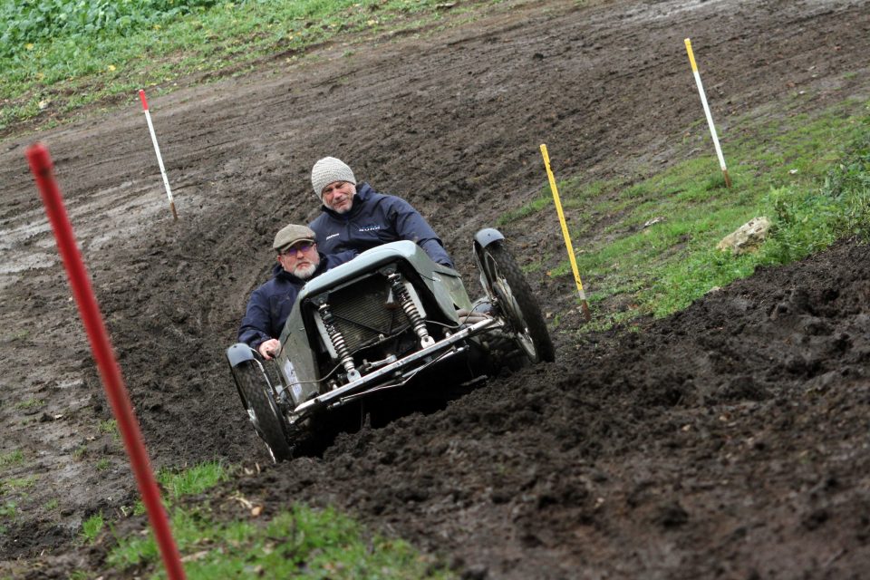 Following a week of heavy rain the ground was decidedly soggy but fortunately the competitors were greeted to a dry morning for the first two laps of 6 hills. It was first time out for Hans Ciers from Belgium who was sharing Jeremy Deeley’s recently acquired Cranford, a car his father had built in the early 1950’s. There were three lady drivers amongst the competitors, something the organisers want to encourage. Racer Mark Dwyer with wife Gill were having their first outing in a Cannon formerly owned by Frank Lyons. The car suffered a track rod joint issue but not before they had achieved four clean climbs on the first lap.