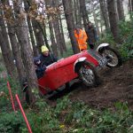 As the competitors were starting the final round it began to drizzle and then, suddenly it poured down. This changed the sections completely. Section 2 in the woods became so difficult it was only Richard Rowe in Post Historic and Tim Kary in Historic who managed clean climbs. The grassy switch back of Section 6 became impossible for the Historic class with the best drives by Eric and Dave Wall in the family Canhi on 4 each whilst in Post Historic Richard Rowe and Westie Mitchell were the only drivers to clean the hill.