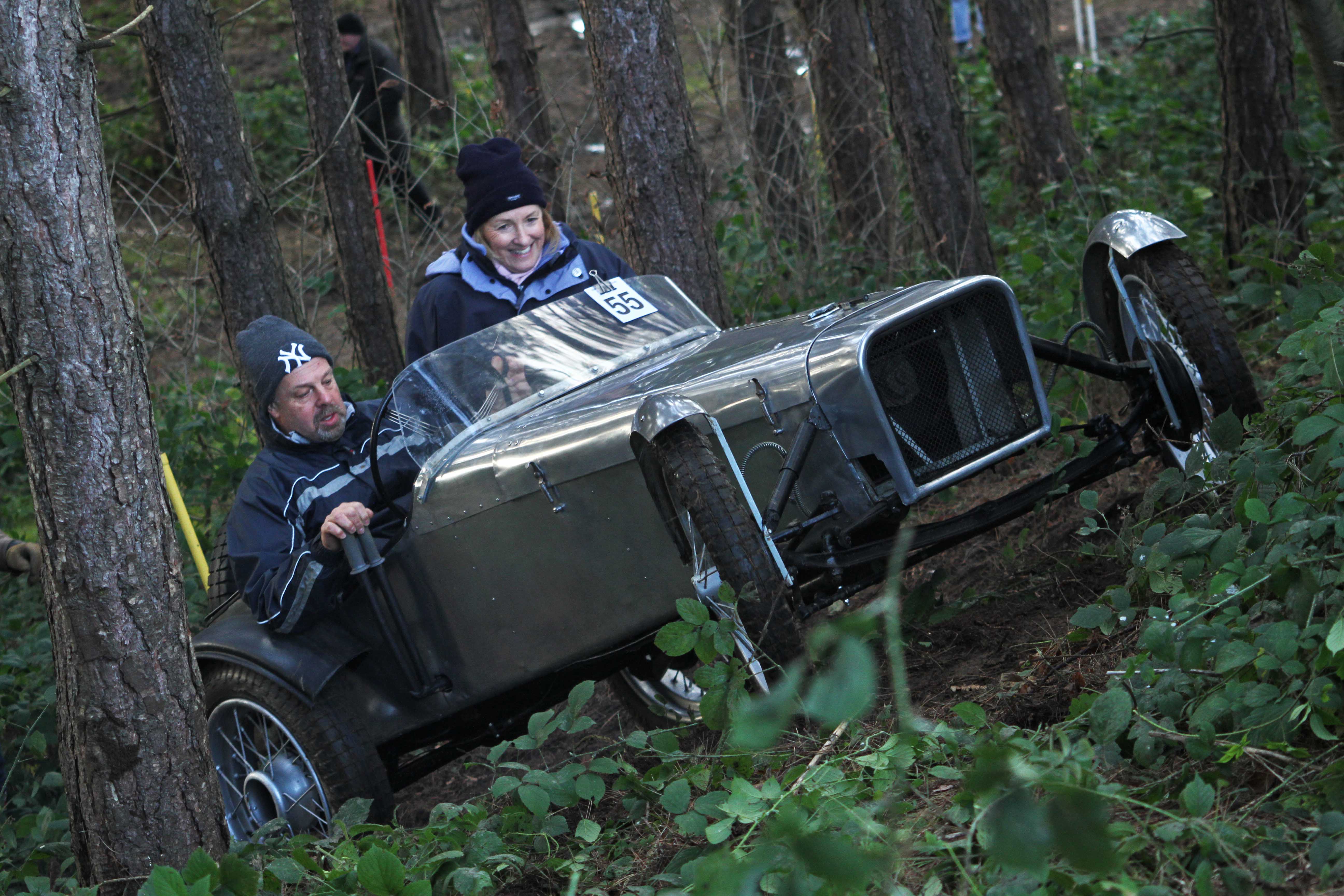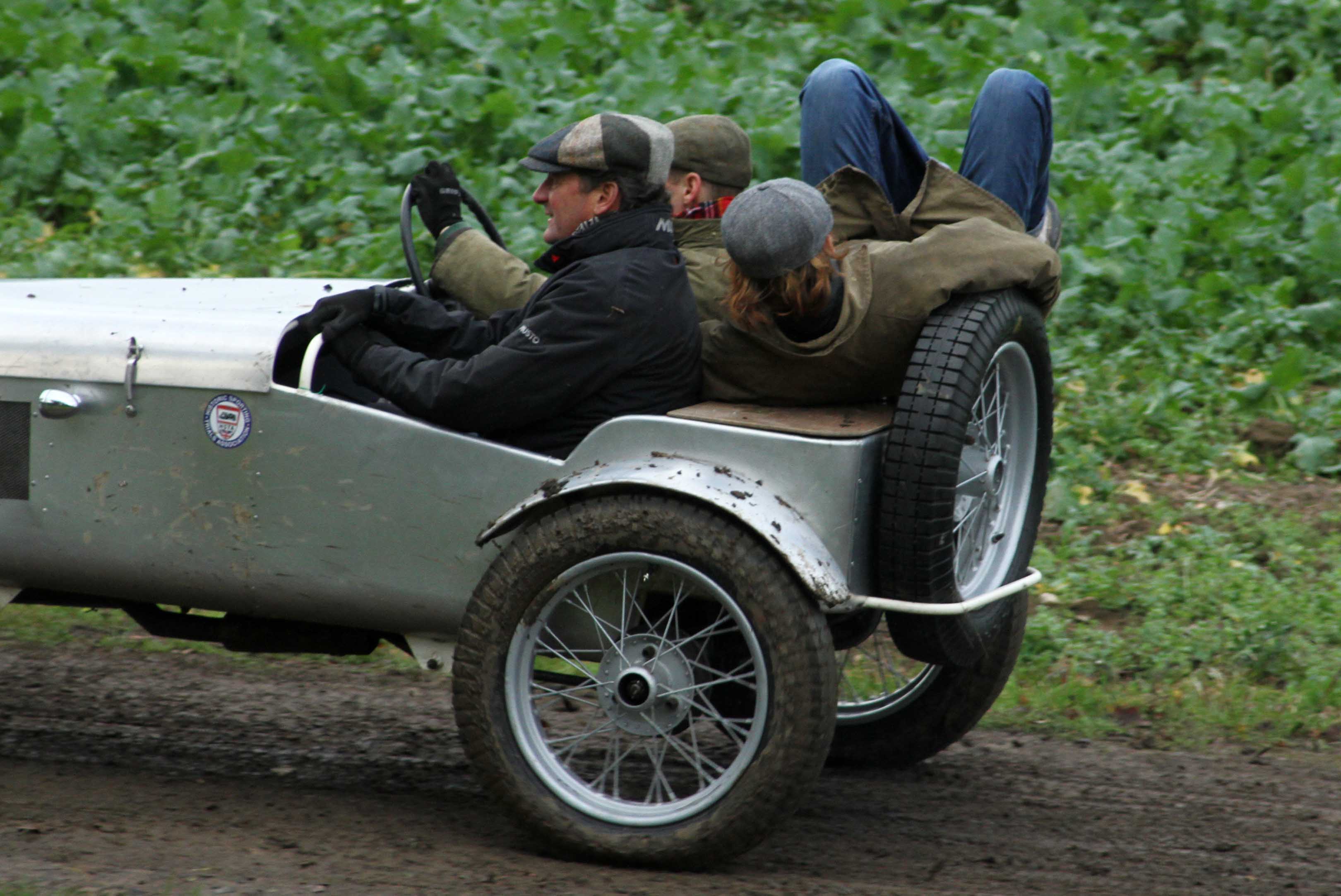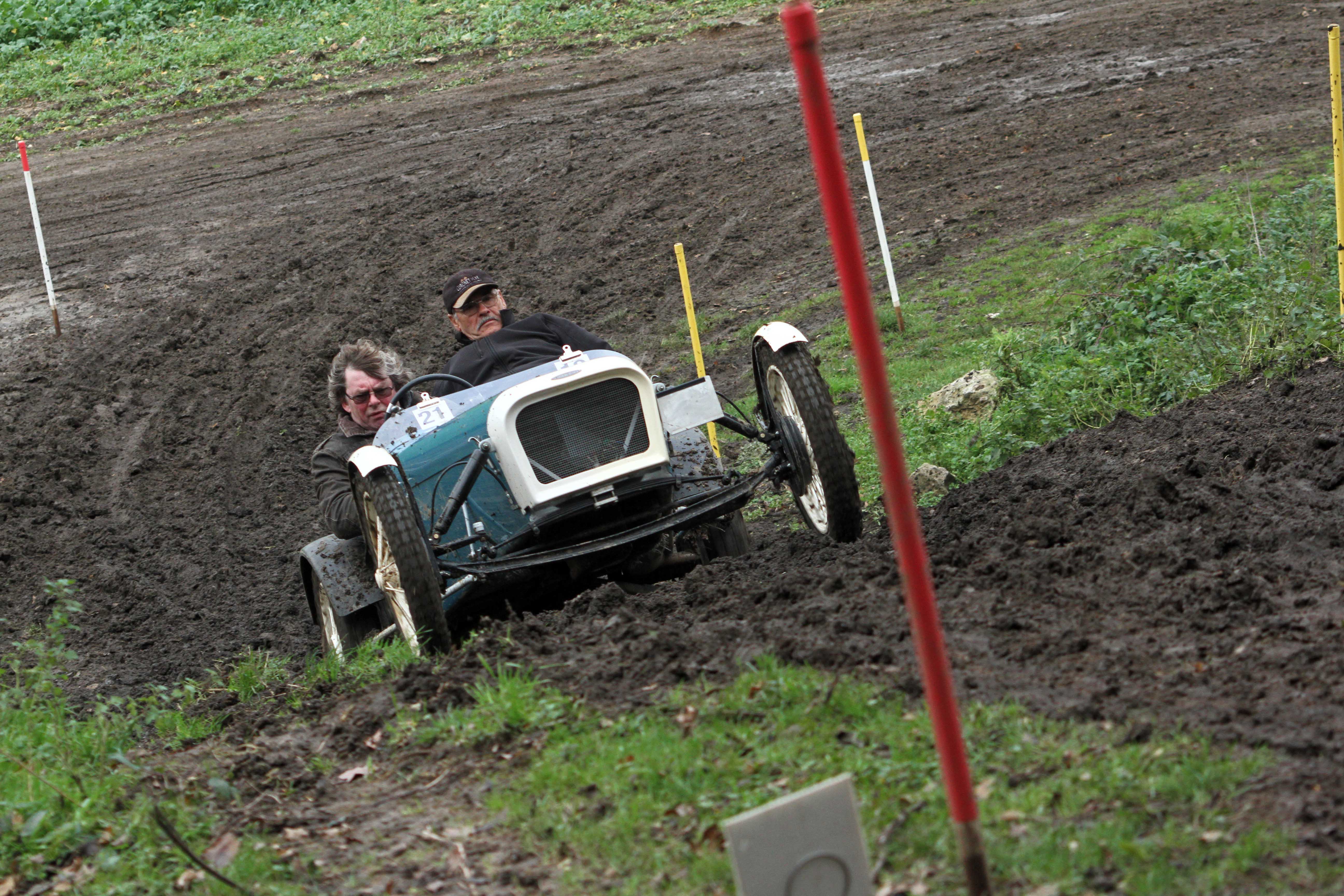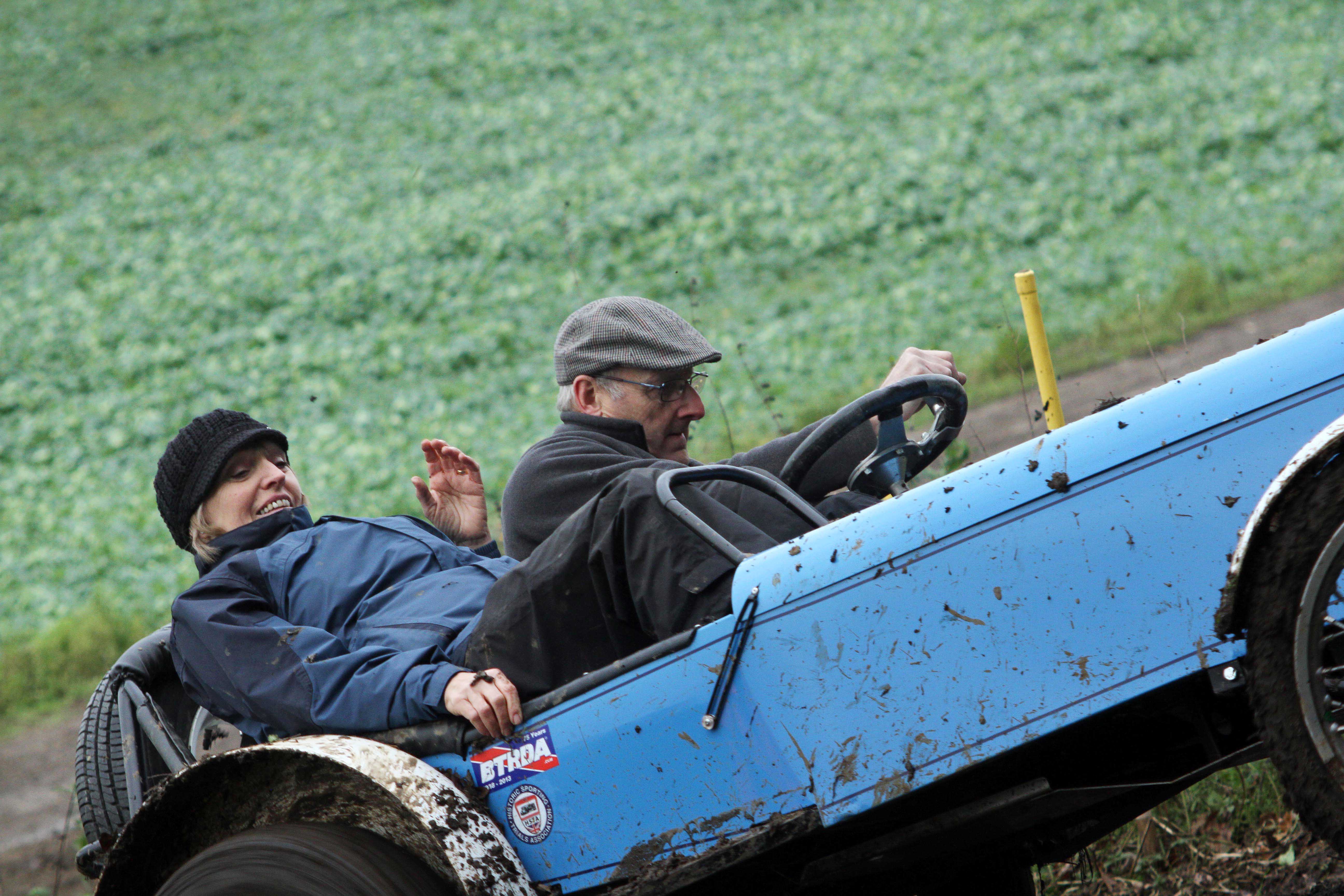 Following a week of heavy rain the ground was decidedly soggy but fortunately the competitors were greeted to a dry morning for the first two laps of 6 hills. It was first time out for Hans Ciers from Belgium who was sharing Jeremy Deeley’s recently acquired Cranford, a car his father had built in the early 1950’s. There were three lady drivers amongst the competitors, something the organisers want to encourage. Racer Mark Dwyer with wife Gill were having their first outing in a Cannon formerly owned by Frank Lyons. The car suffered a track rod joint issue but not before they had achieved four clean climbs on the first lap.
