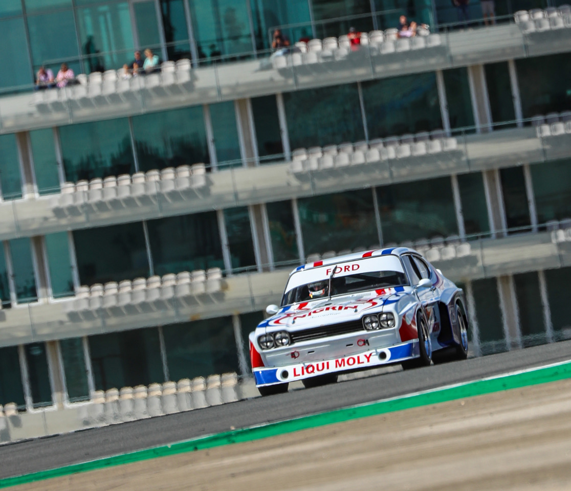 In Saturday morning’s Historic Touring Car Challenge, Ric Wood and BTCC driver, Adam Morgan dominated the qualifying session, posting a pole time of 2.02.46 in Ric’s Ford Capri. They started the two hour race five seconds clear of Mark Freemantle and Tony Paxman’s Mk 2 Escort with Malcom Harding’s Zakspeed Escort Mk2 in P3.