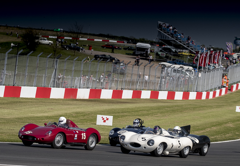 In the Royal Automobile Club Woodcote Trophy supported by EFG Private Banking Fred Wakeman and Patrick Blakeney-Edwards were first to the flag in Saturday afternoon’s Royal Automobile Club Woodcote Trophy race, in a race long battle with the pole sitting Maserati 250S of Richard Wilson and Martin Stretton which had to settle for second place. A brace of Jaguar D-Types finished third and fourth with Gary Pearson driving both, swapping at half time and being careful not to overtake himself! Carlos Monteverde and Gary made up the third step on the podium.