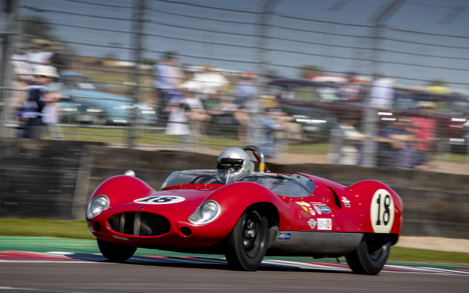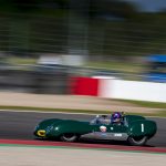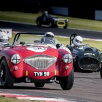 Having led the vast majority of the race in his Lotus 15, Bryant appeared to be stroking the British Racing Green car home when, with less than three minutes of the hour remaining, there was a ‘clonk’ as he braked for Redgate and the left corner went down. He knew it was curtains as the car tripped over itself and slewed to a halt. Ward, debuting a Knobbly-bodied Lister for the JD Classics team, couldn’t believe what he saw and duly landed his fifth Donington SMT win in six years – and third successive solo success – in the cars from Cambridge.