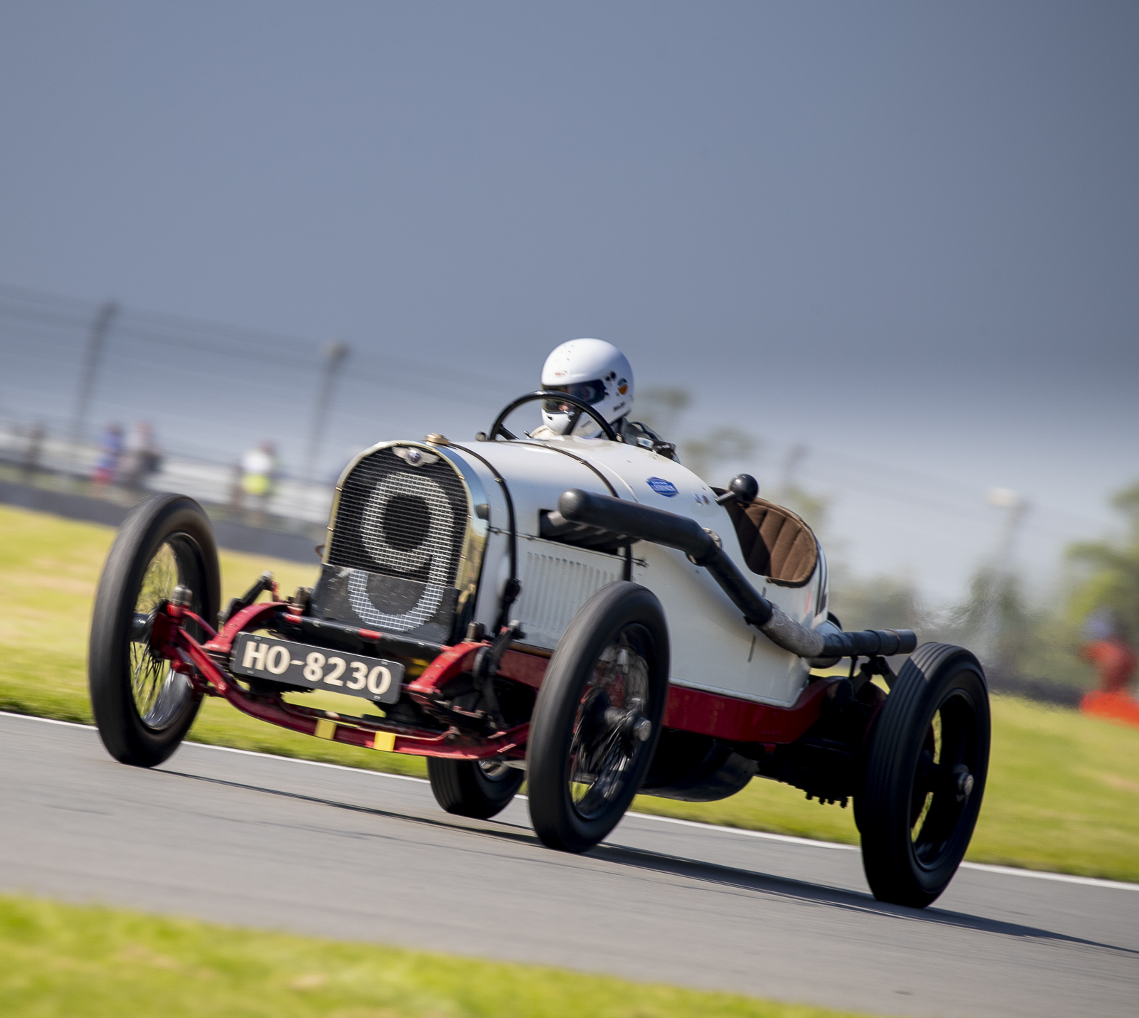 Friedrichs made a storming start from P3 on the grid but Gareth Burnett – in John Ruston’s latest Alta, racing for the first time in 70 years – went with him from P7, haring past the potent 1928 Meadows-engined Nashes of polesitter Wakeman and Charles Gillett, who was immediately in trouble, to lead. Second by lap 5, Wakeman confidently hounded down Friedrichs and handed team-mate PBE a fit car for the chase to the chequer. Pat was but 0.496s short at the stripe.