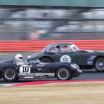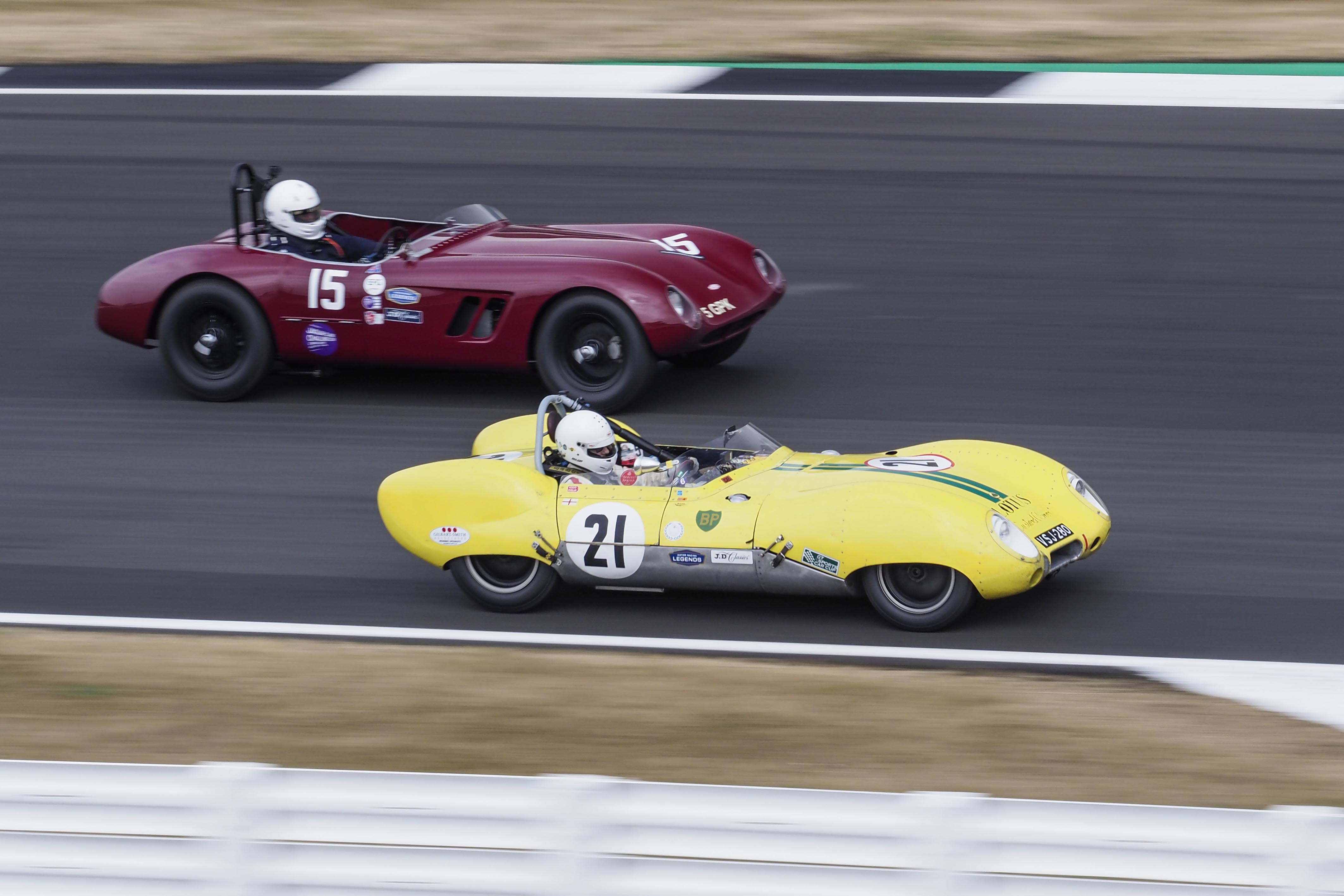 Despite a five second time penalty for exceeding circuit limits Will Nuthall powered the Wood family’s Lister past the ailing Lotus to wrest second from Wills with a couple of laps to spare. Roger salvaged an SMT5 class-winning third, ahead of Michael Gans’ sister car. Best of the small capacity finishers were Ben Adams (Lola Mk1) and Malcolm Harrison/Patrick Watts (Rejo Mk3) in seventh and eighth places respectively.  Read the full report