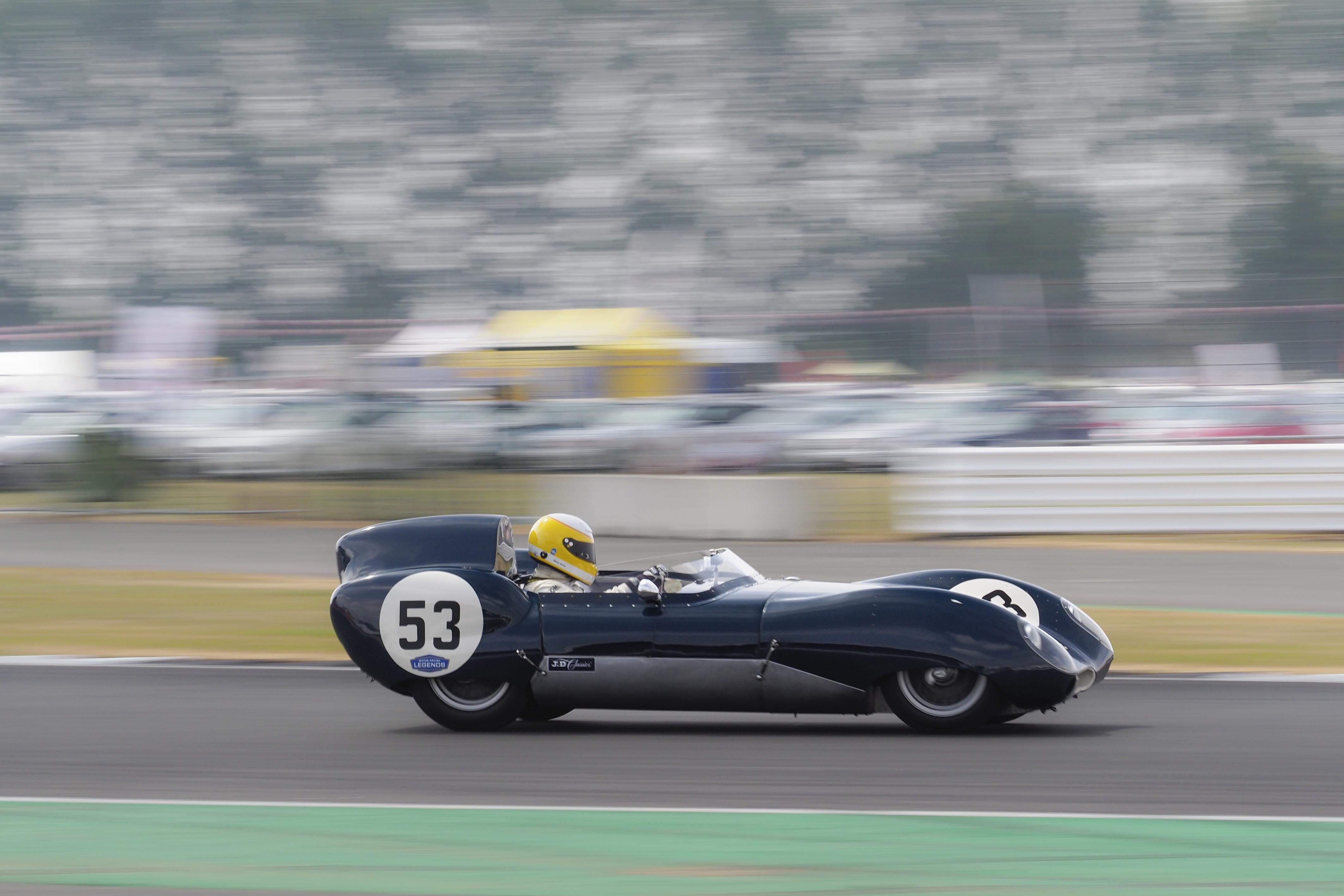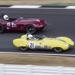 New Zealander Roger Wills almost landing a famous Stirling Moss Trophy victory driving Lotus 15 #609 in which compatriots Bruce McLaren and Syd Jensen raced for fabled British entrant John Coombs in Goodwood’s 1958 World Sportscar Championship-deciding Tourist Trophy enduro – Moss’ triumph in which secured the crown for Aston Martin. Sticking front brake callipers slowed the combo mid-race however, handing Pre-’61 gold to Chris Ward, saddling a JD Classics Lister-Jaguar Knobbly as opposed to last year’s winning Costin derivative.