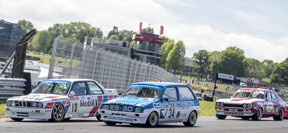 In the first of two 30 minute Historic Touring Car Challenge races it was Steve Dance (Ford Capri RS2600) who was outright winner, Mark Smith had pole position in his BMW M3 E30 and led for the first part of the race, before retiring with gearbox gremlins. This left Dance to take the lead on lap 11 with Ric Wood and Adam Morgan 2nd in their Ford Capri with CharlieWilliams finishing 3rd in the Rover SD1. Roger Stanford (BMW M3 E30) and Patrick Watts/ Nick Swift (MG Metro Turbo) all had a go for the top spots, but Stanford lost a timing belt and both MG Metros blew their Turbos in spectacular style. Sadly it was loss of oil pressure which put an end to Ken Clarke’s debut in the 1983 TWR Hepolite Rover SD1 – an original Group A car he built for Steve Soper at TWR Motorsport in 1983. The Rover’s return will have to wait for another day.