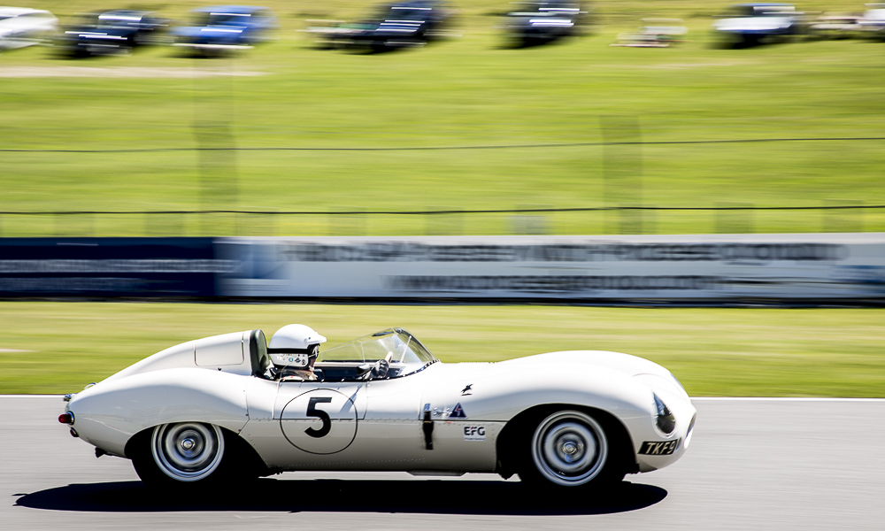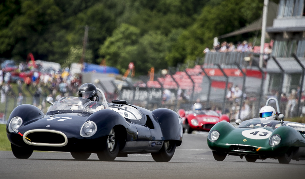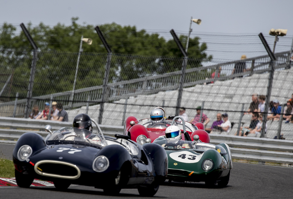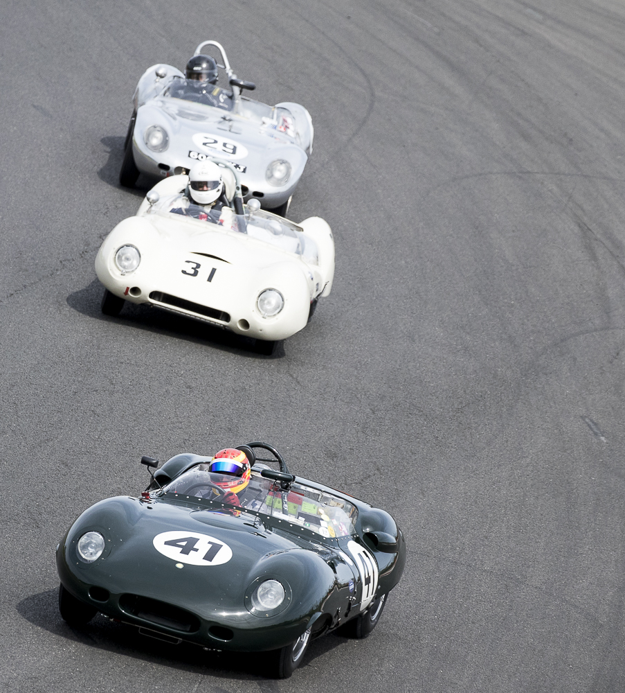 In the Stirling Moss Trophy Chris Ward and the JD Classics Lister Costin secured pole position and took a lights to flag victory.Michael Gans dug deep and did a sterling job of chasing down Chris Ward for the entire hour to finish 2nd just 13 secs behind. The shiny paintfree Lola Mk1 Prototype of Billy Bellinger and Keith Ahlers finished in third place. The Willment Climax of Gillett/Smith and Elva MkV of Emmerling/Hooper both got caught out spinning off at Surtees, sending them to visit the gravel trap, thankfully all cars and drivers were OK. The resulting two safety car sessions kept the front runners tight together and on their toes. Behind the podium setters, was the Lola Mk1 of Jurg Tobler who finished in 4th position and rounding out the top 5 was the Lotus XI Le Mans of Philip Champion.