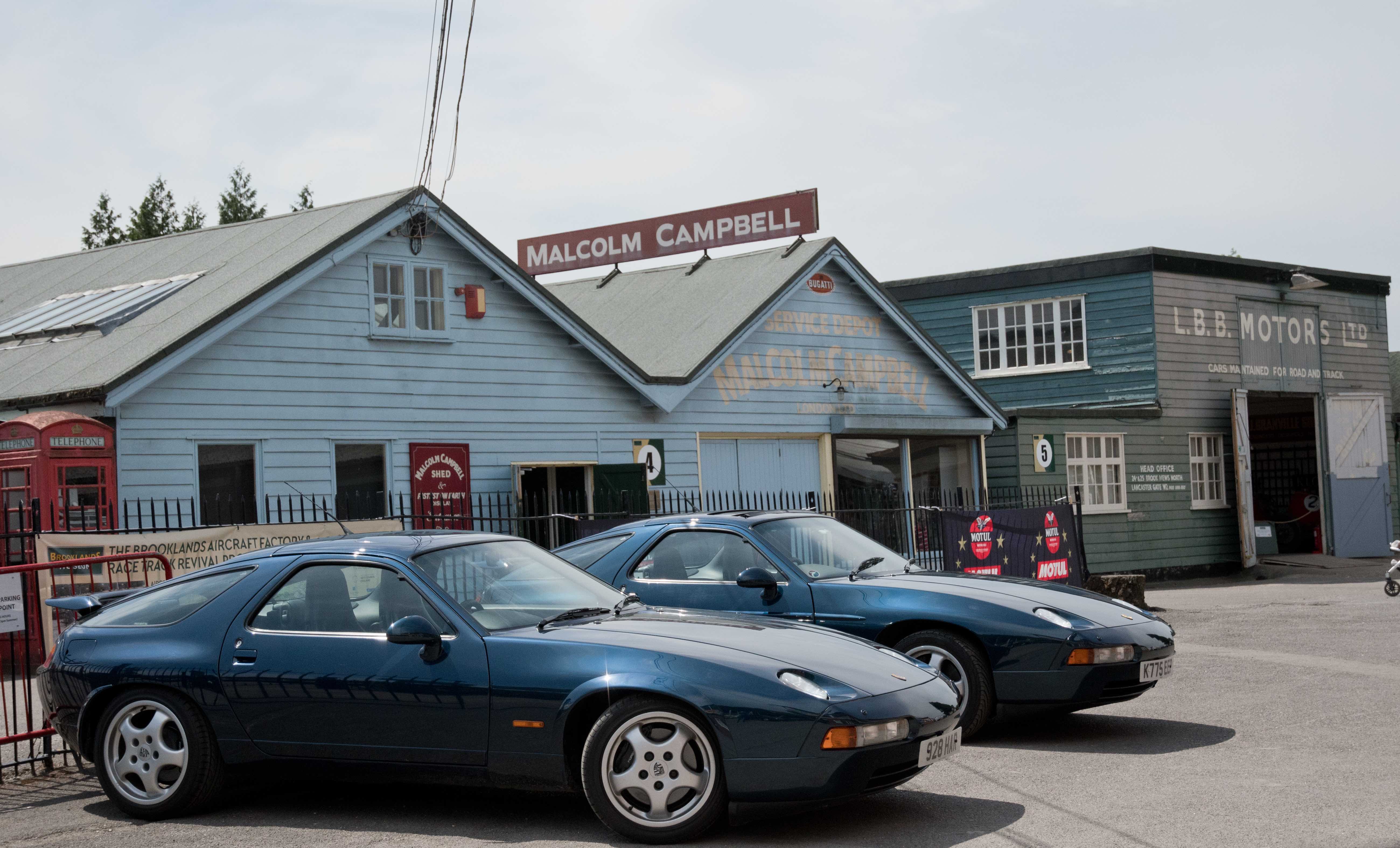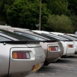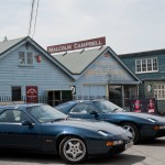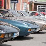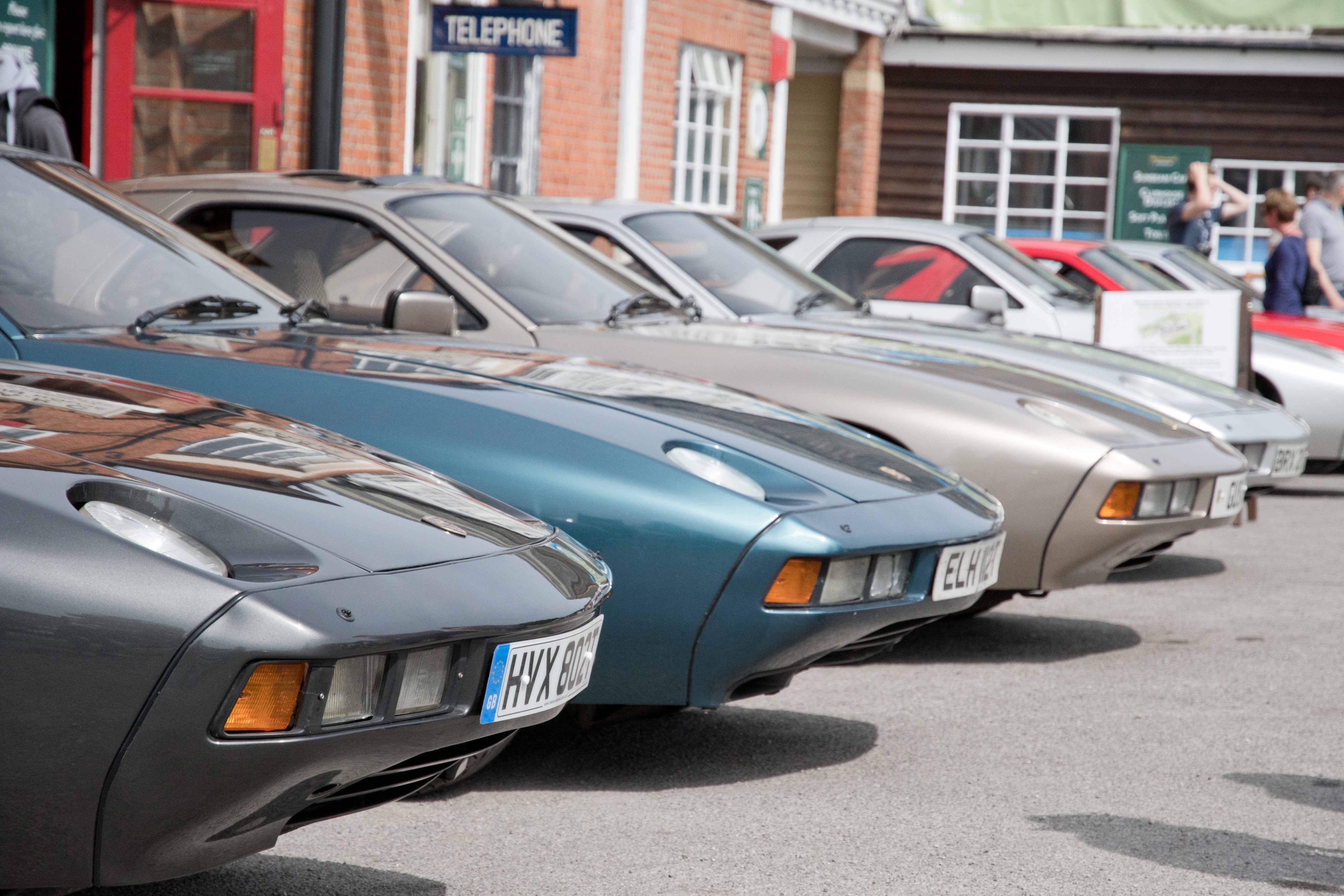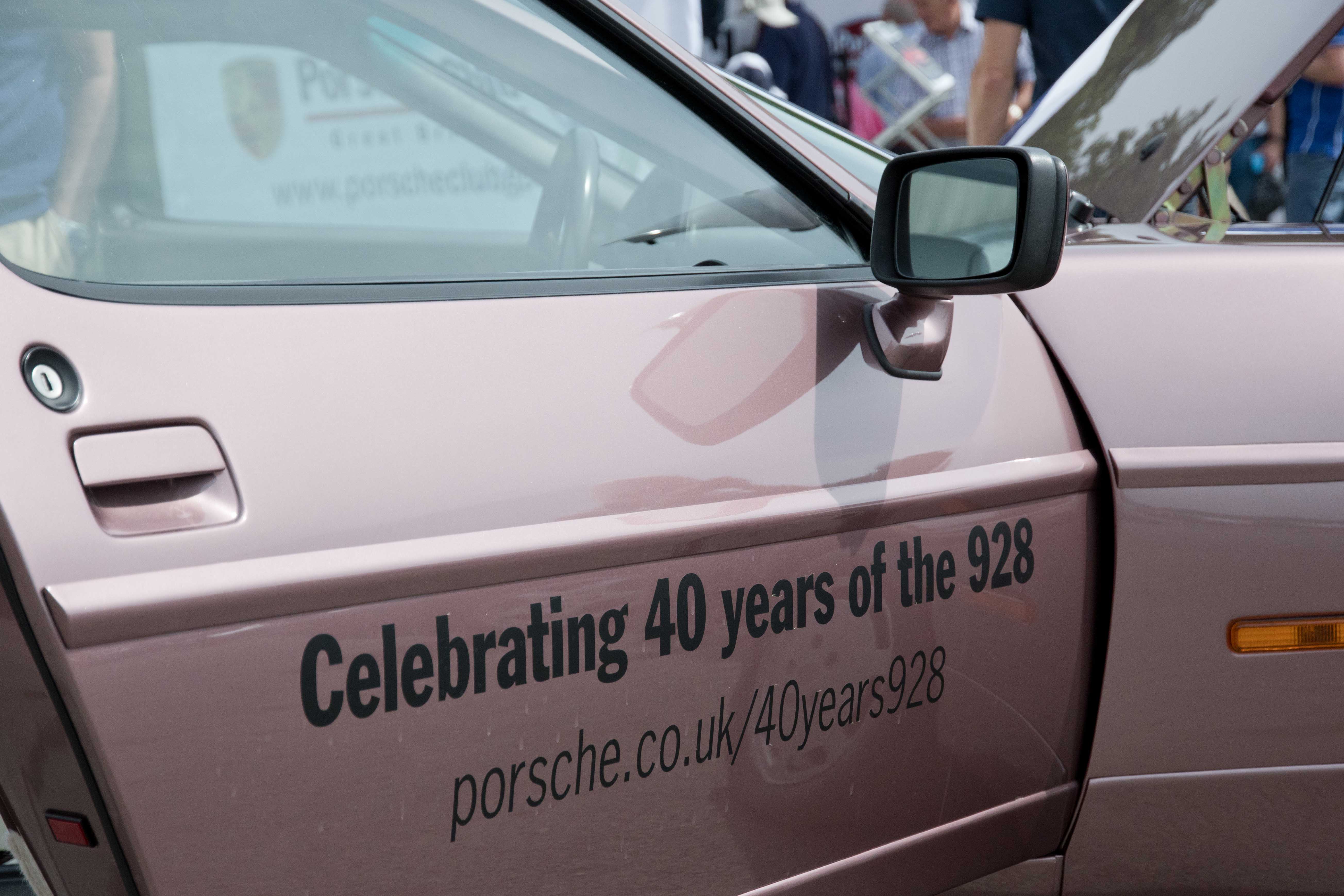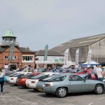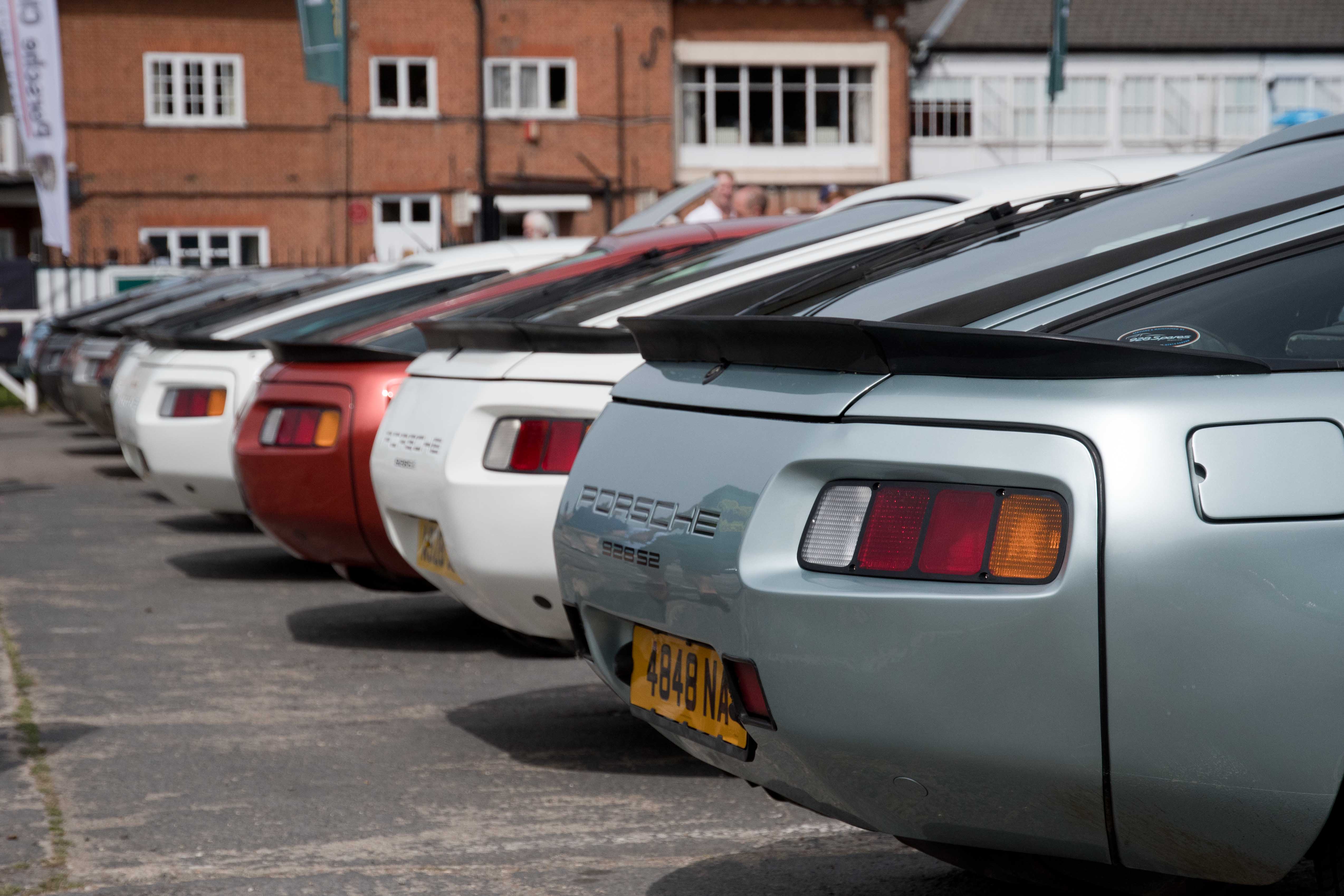 On Sunday 28th May a record number of Porsche 928 cars arrived at Brooklands Museum to celebrate the marques 40th Anniversary. The earliest models of the car were lined up in front of the Club House and in the afternoon around 150 Porsche 928’s were parked own the historic Brooklands Banking for a photo shoot. The event was organised by Porsche Club GB