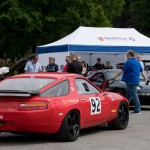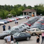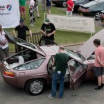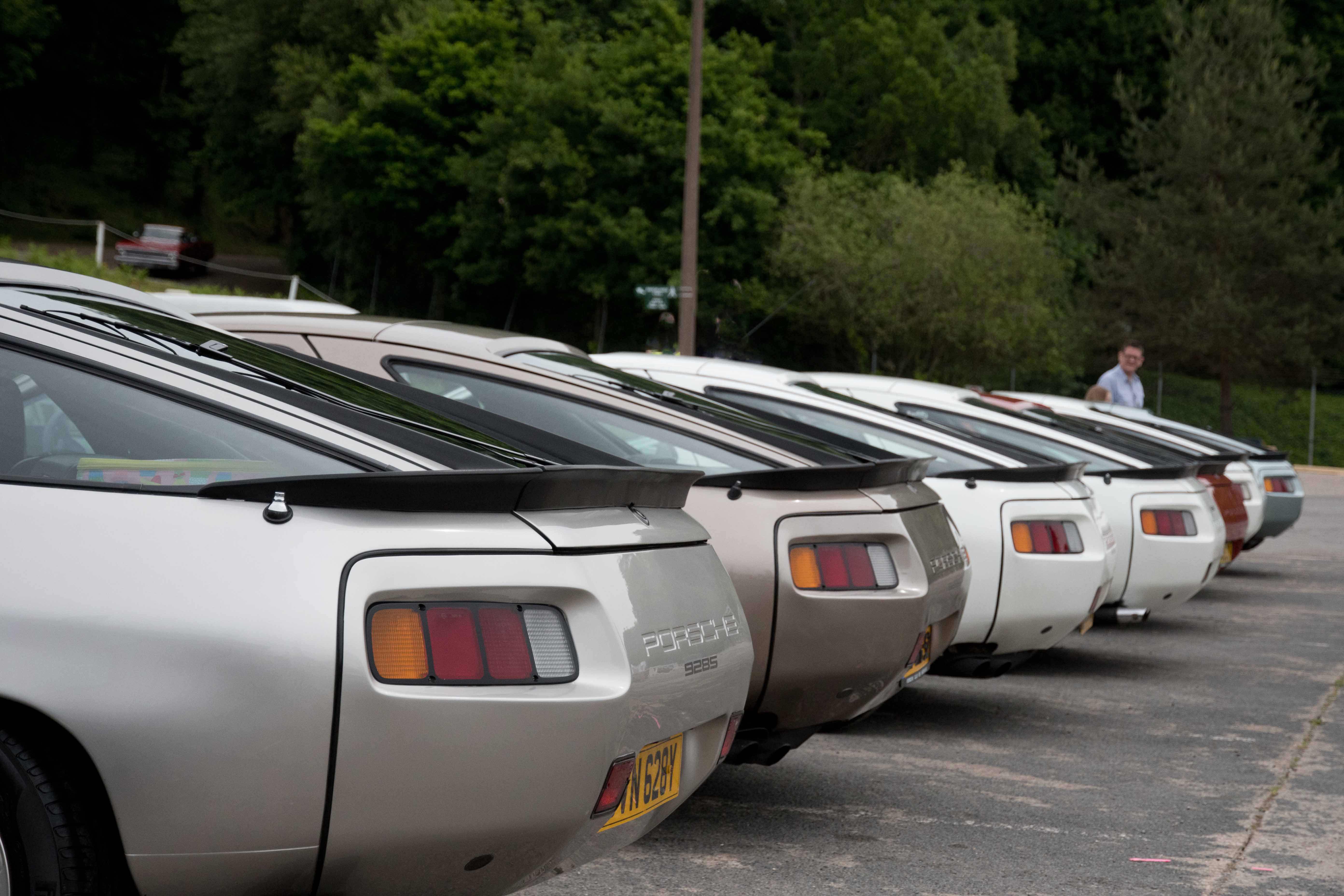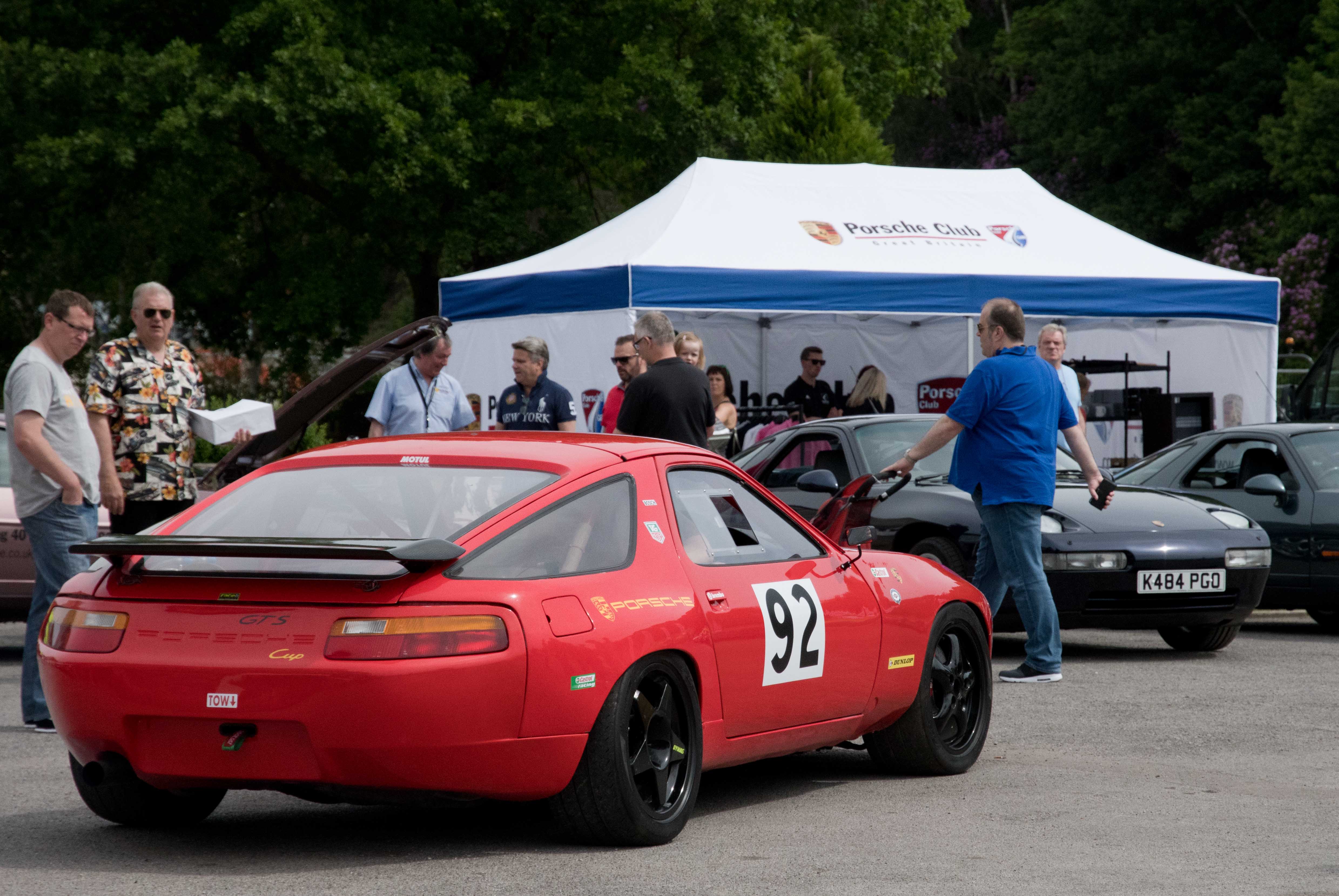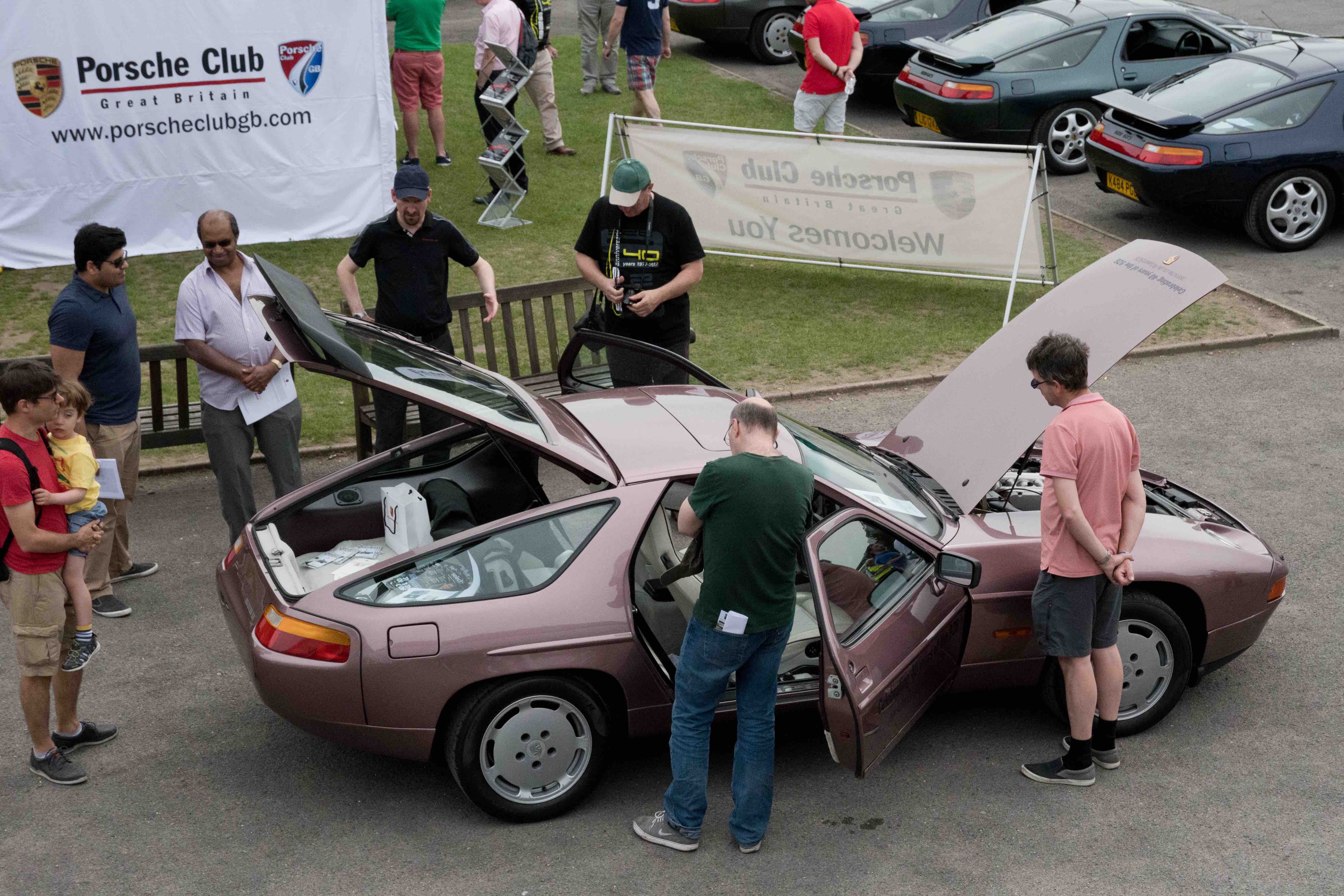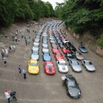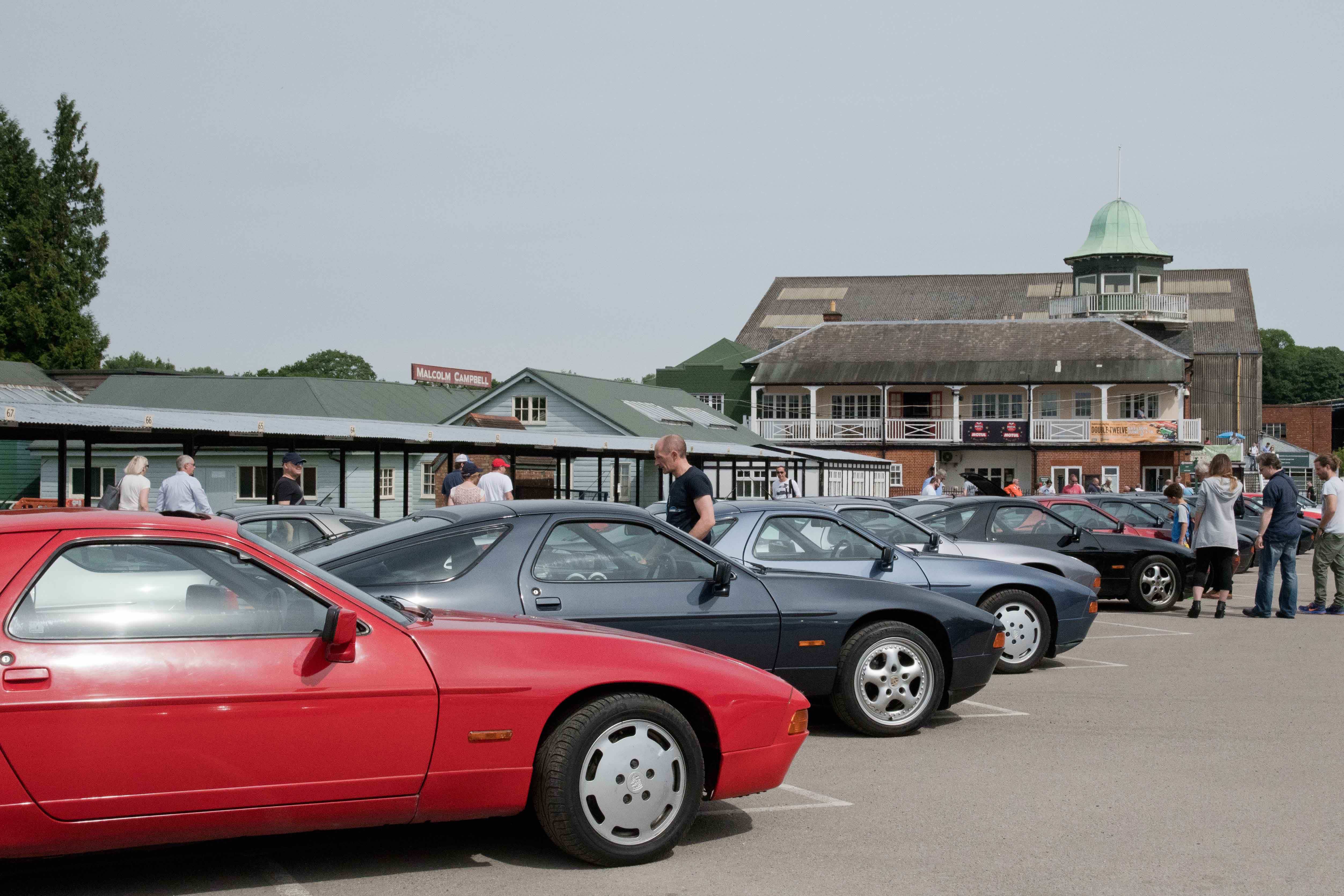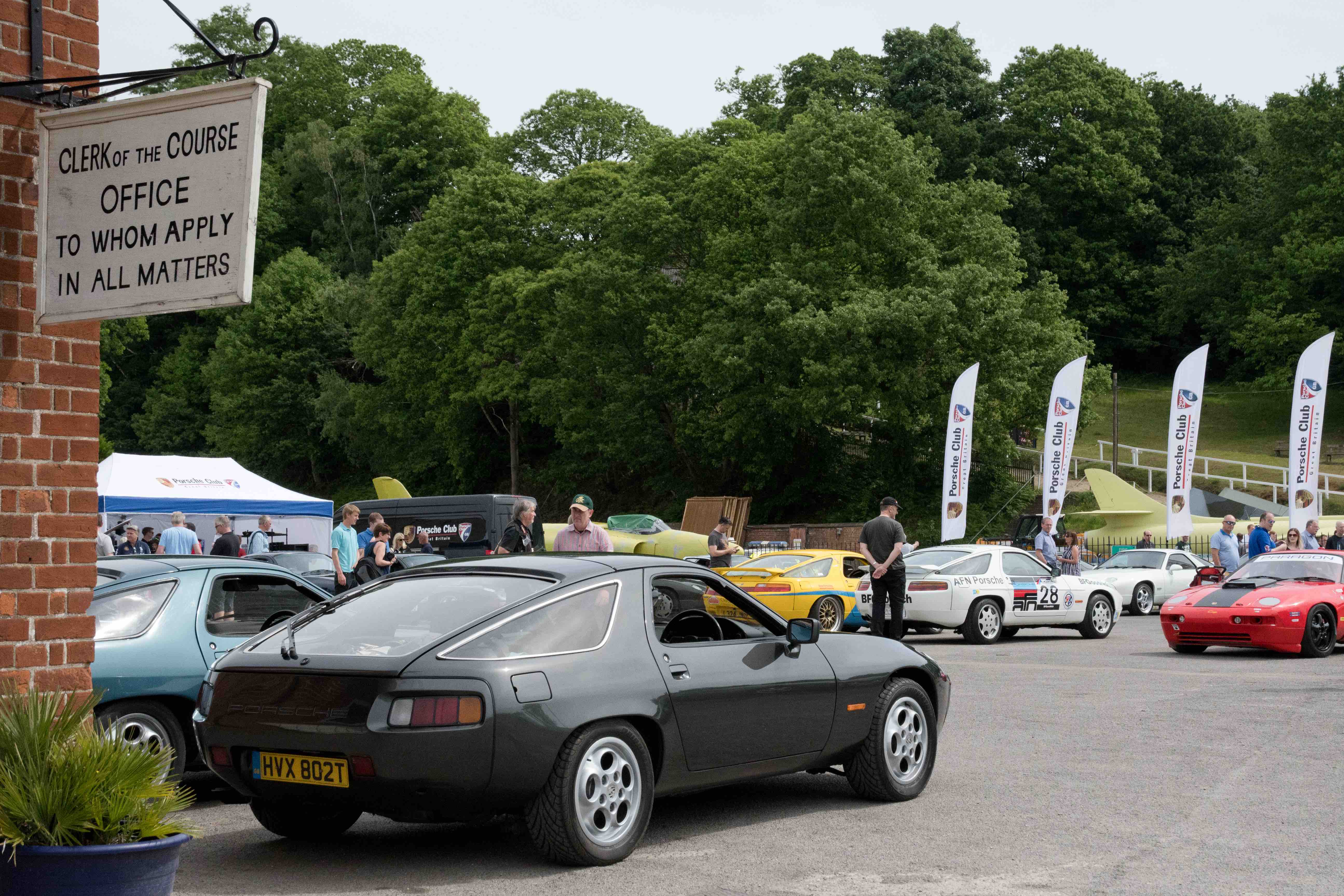 On Sunday 28th May a record number of Porsche 928 cars arrived at Brooklands Museum to celebrate the marques 40th Anniversary. The earliest models of the car were lined up in front of the Club House and in the afternoon around 150 Porsche 928’s were parked own the historic Brooklands Banking for a photo shoot. The event was organised by Porsche Club GB