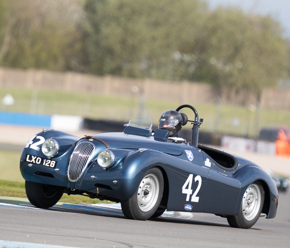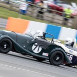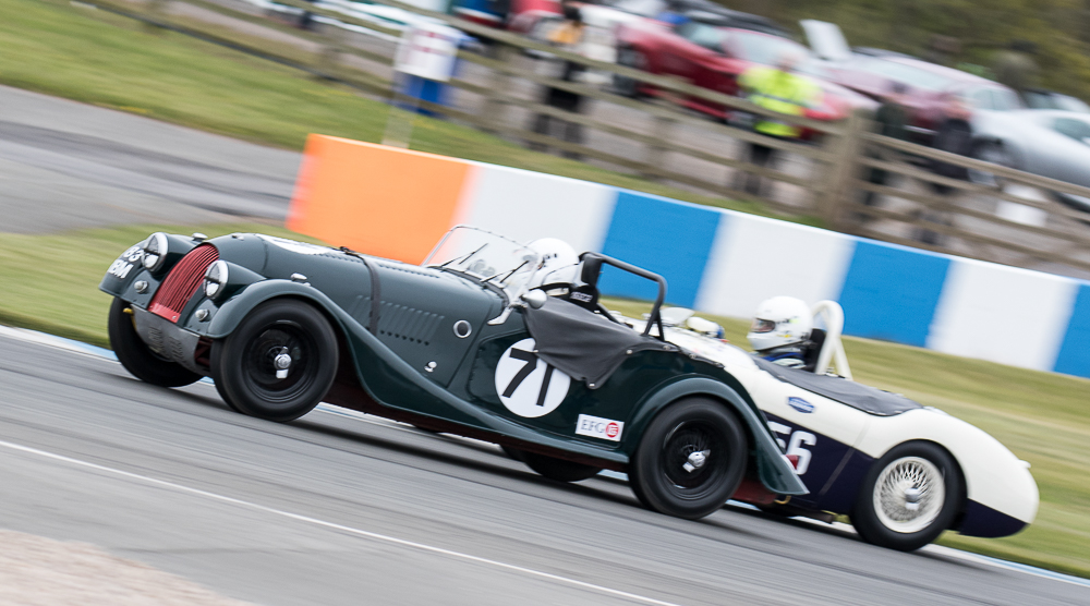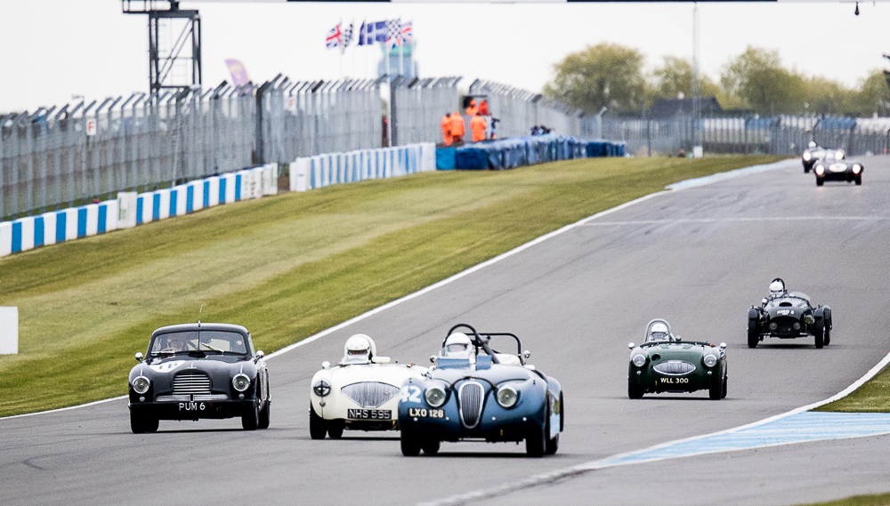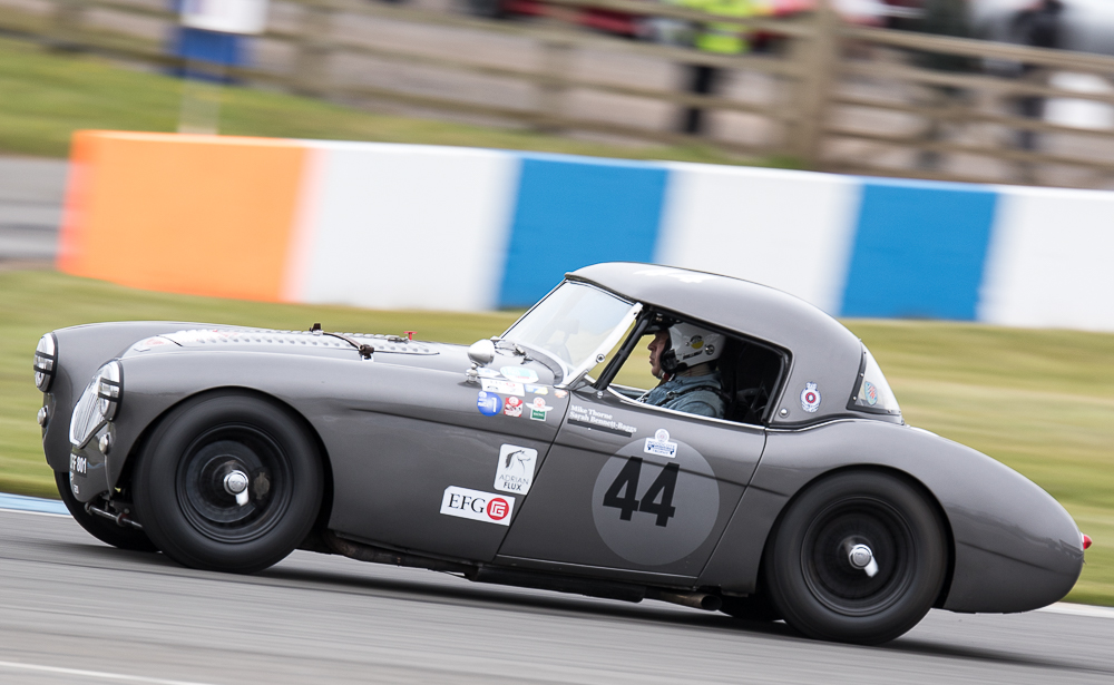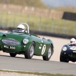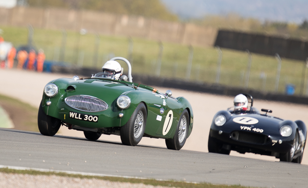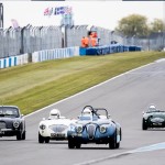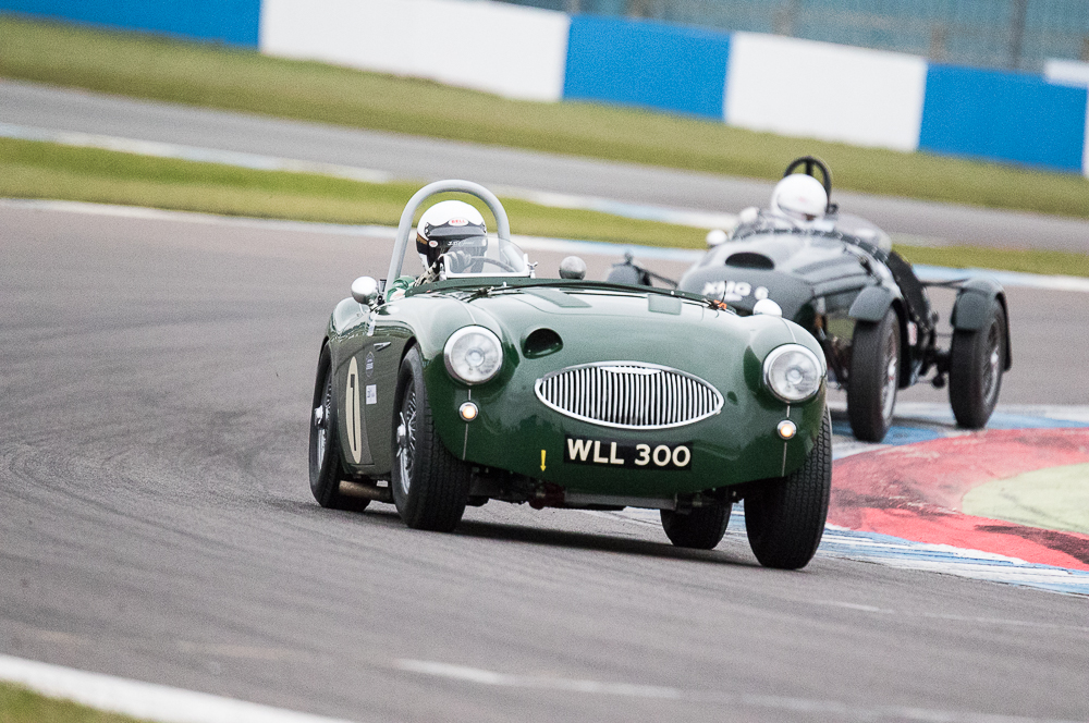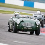 Mike and I were out fielding the Austin Healey 100M for the first time of the season at Donington, which without any pre season running we were unsure as to how it was going to perform. Qualifying went well with Mike putting in an early flyer to lead all the Healey’s – that was until until lap 13 when both Healey 100S’ popped in last minute flyers. Firstly Karsten Le Blanc went a second faster, followed by the Young / Hood duo who put in almost an identical time. Still we were happy to be up amongst the 100s gang.