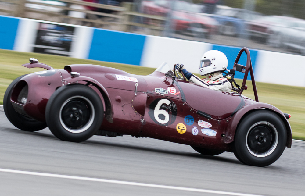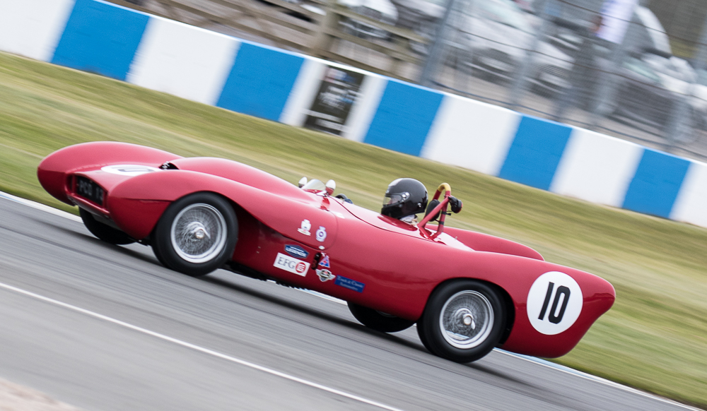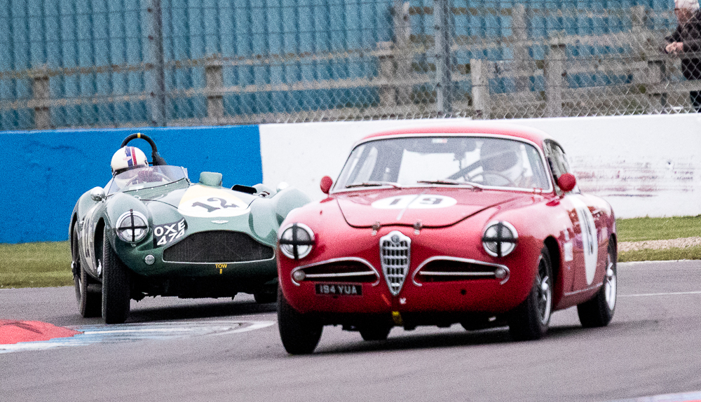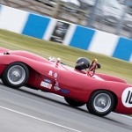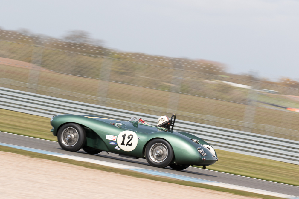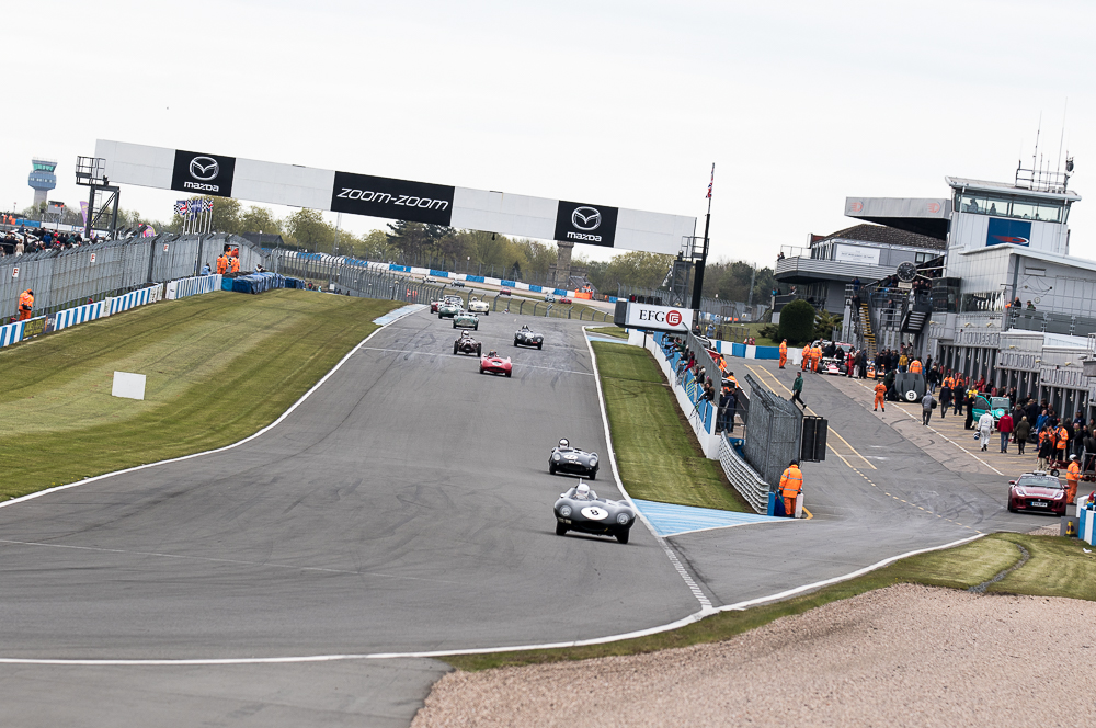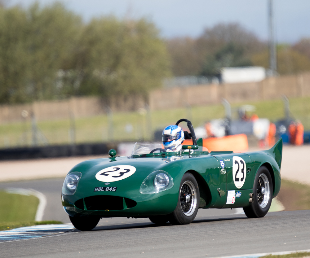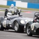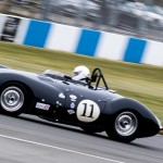 The rain returned with a vengeance for Monday’s Stirling Moss Trophy race, where pole sitters Bobby Verdon-Roe and Gregor Fisken sat in the stunning Ferrari 246S, but the rain meister Chris Ward took the lead from the start in the JD Classics Lister Jaguar Costin and from there he never looked back. As the sixty-minute race unfolded the track did start to dry out, the slippery conditions caught out a few competitors but without serious incident. It ended as a Lister dominated race with Richard Kent coming in 2nd and the pairing of Tony Wood and Will Nuthall (3rd) blocked out the top three spots leaving the Lotus 15s of Oliver Bryant and Dion Kremer emerging out of the spray to round out the top five.