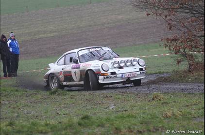 The Boucles de Bastogne is a very unusual rally in that it is run as a regularity event but takes place on closed roads and its entry consists of many ‘full house’ special stage prepared historic rally cars often crewed by top names from rallying’s past and present. To keep the speeds with the compulsory 80 k/h (50 mph) average the cars are restricted to road going winter tyres though the surfaces include tarmac and gravel.