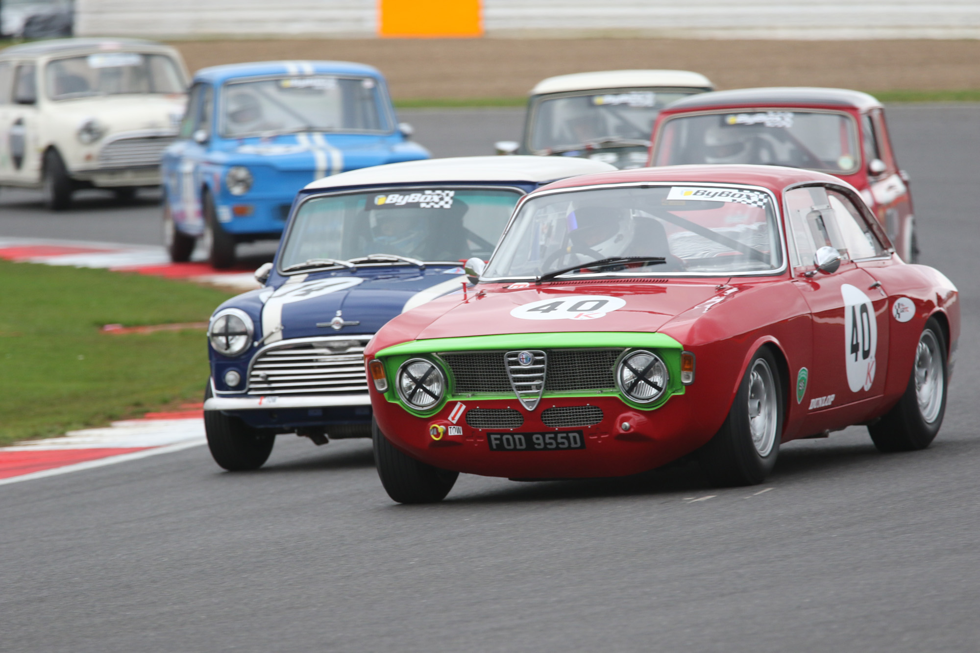 At the head of the ByBox Historic Touring Car Championship race, the V8 power of Peter Hallfords Ford Mustang kept him ahead of a dogged chase by Tim Davies (Lotus Cortina), who lost likely rival Mark Jones on the second lap. However, the story of the race was a fantastic battle among the Minis and Simon Benoys Hillman Imp.