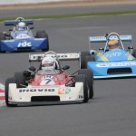 I thoroughly enjoyed that, but it is always difficult trying to pass the big cars, said Evans. Glover gave determined chase while Lyons soon had his hands full fending off Andrew Hibberd who was having his first race in his father Michaels Formula 2 Brabham BT38. Getting quicker with every lap, Hibberd even managed to nip briefly ahead before Lyons blasted the F5000 back into the final podium place.