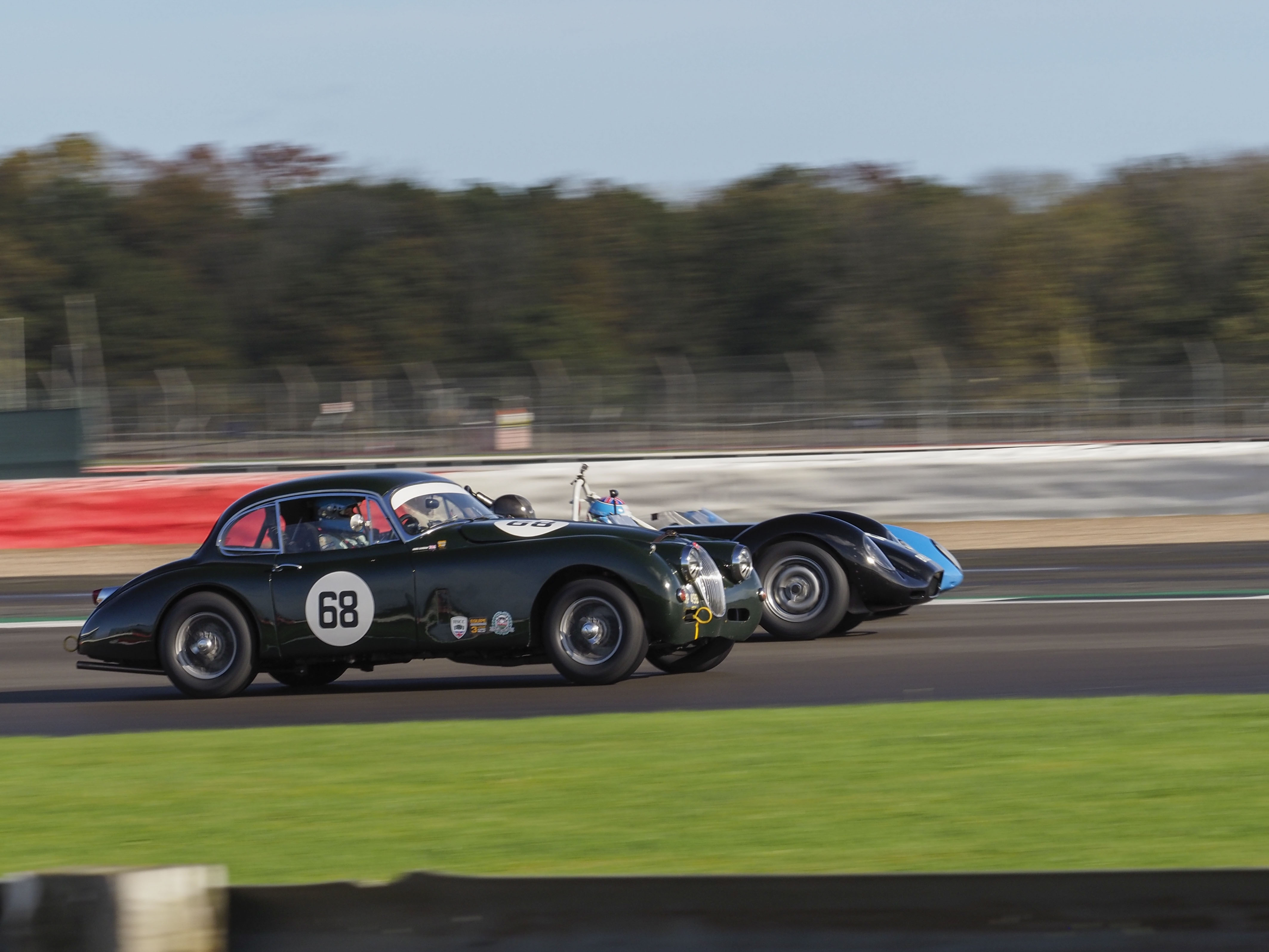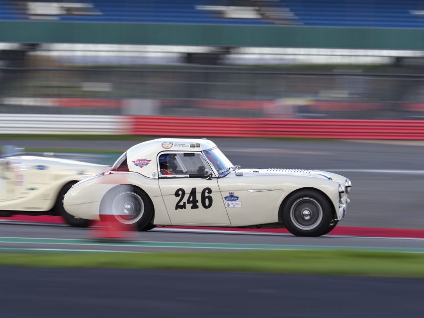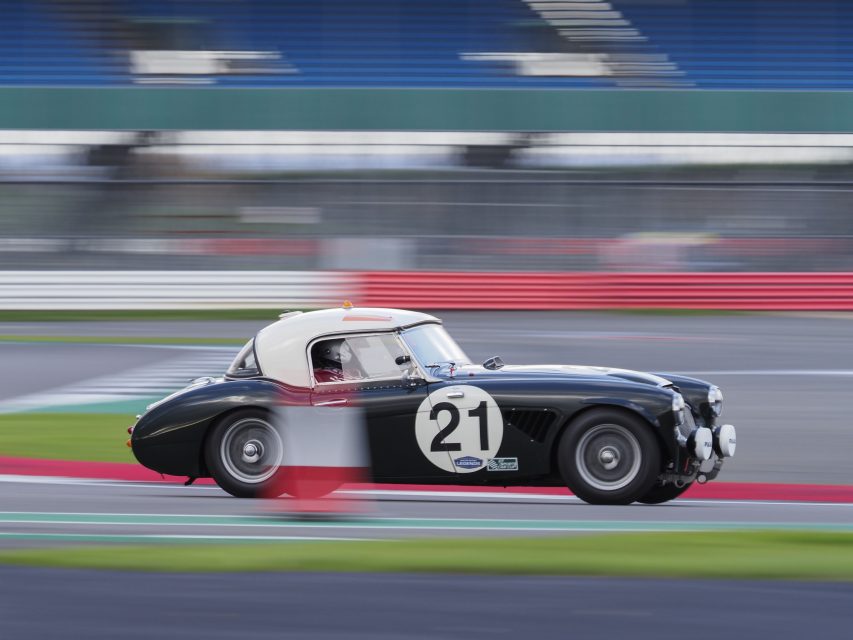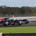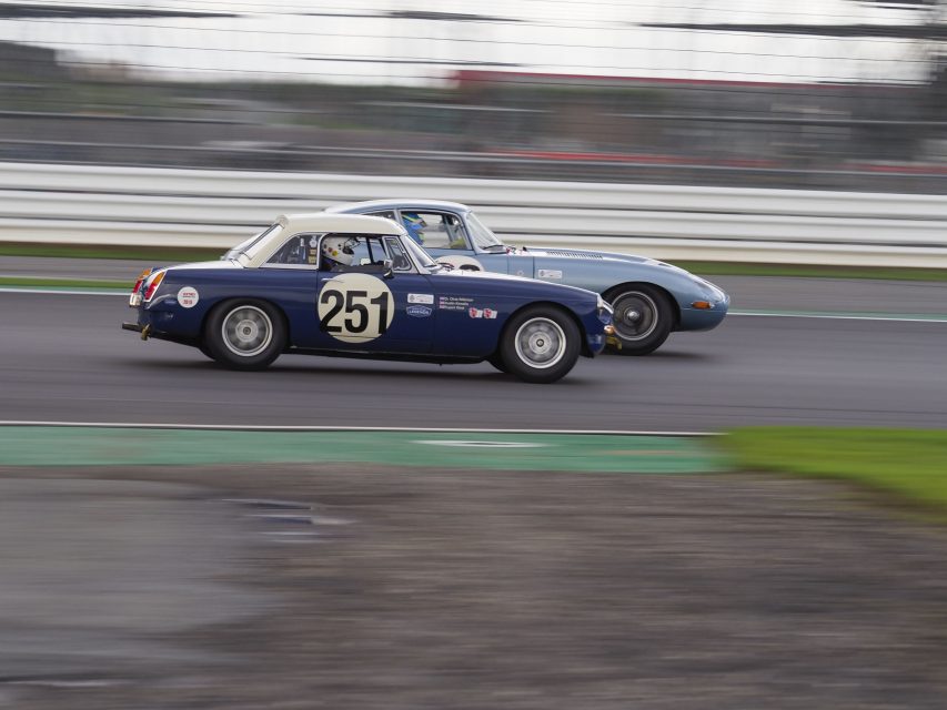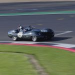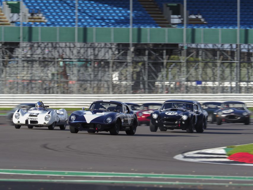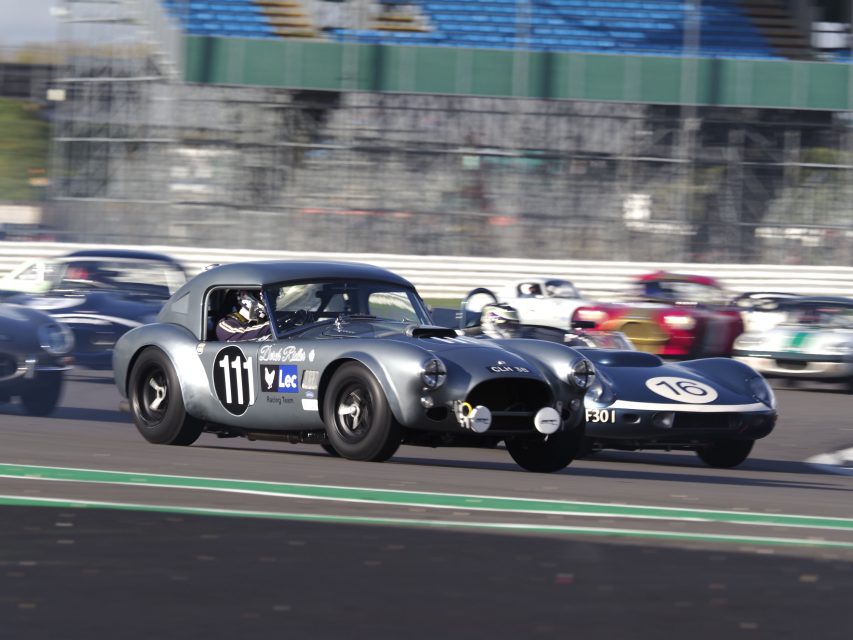 All eyes were on the prize of the illustrious Historic Tourist Trophy – to be presented by the Royal Automobile Club. Teams comprised of one car from each class in the race, with Team ‘Ecurie Triple C’ taking the final honours; comprising of the Roger Wills and David Clark’s 1958 Lotus 15 (that finished an impressive seventh overall and won Class 1), Karsten Le Blanc and Chris Milner’s Austin Healey 3000 and the Ford Mustang of Georg Kjallgren and Jeremy Cooke. Having only been able to participate in a handful of races all season, and first time out for Kjallgren, Ecurie Triple C were over the moon to get their hands on the impressive silver wear. Class 4 victors, Julian Thomas and Calum Lockie in Thomas’s 1965 Shelby Daytona Cobra won the three-hour endure on scratch, the first of forty cars to take the final flag. Adrian Willmot and Andrew Jordan in another Shelby Cobra snatched 2nd place in the closing laps of the race from the Jaguar E-type of Chris Ward and Richard Kent.