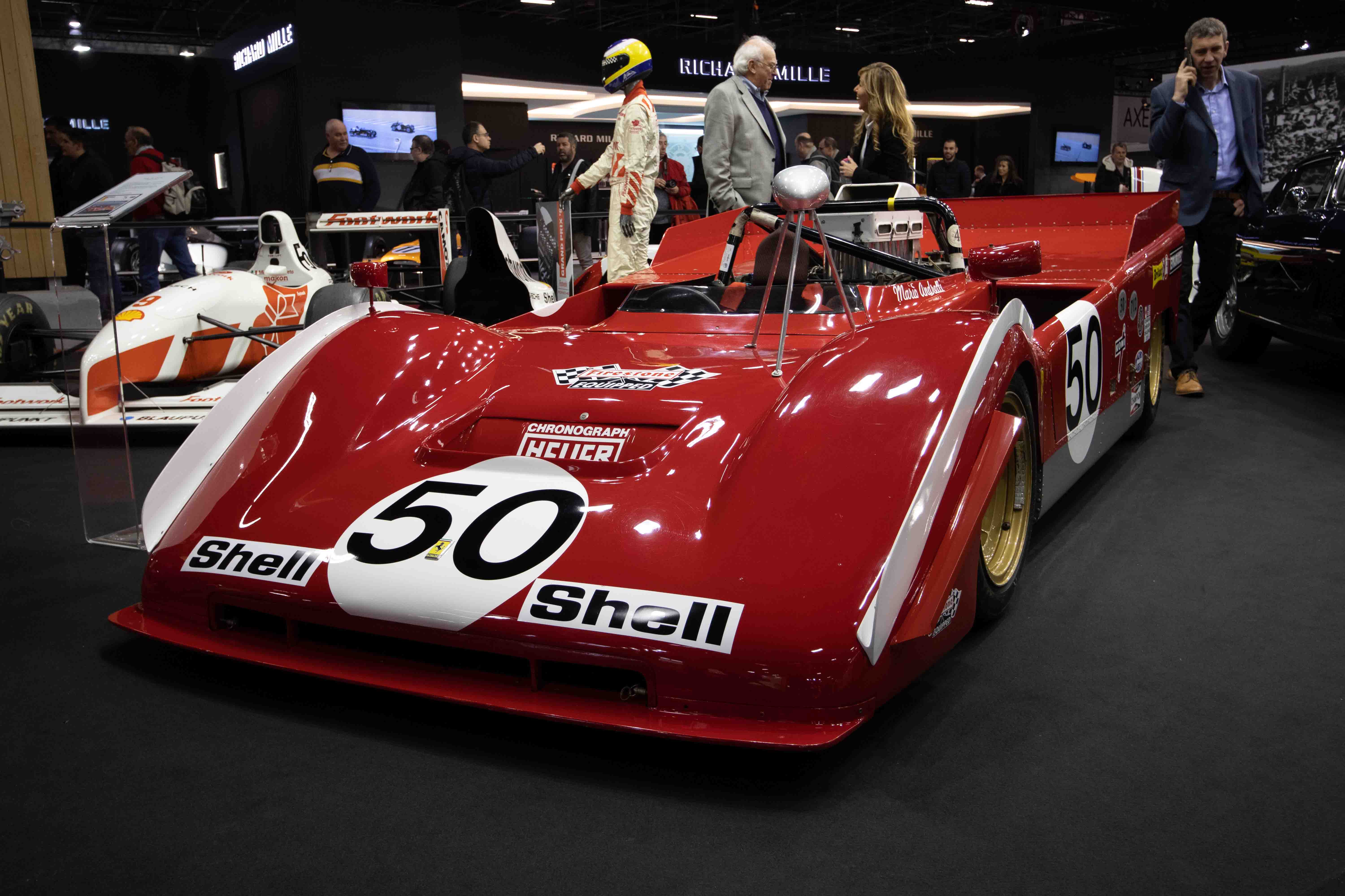 The Richard Miele stand was one of the most upmarket displays of them all, an army of chefs busied themselves serving fine food and champagne to their guests, whilst the rest of our mouths watered over a dynamic display of McLaren Formula One cars spanning just over 40 years. You couldn’t help but marvel at the fast progression of development between the front and rear winged 1968 M7A of Denny Hulme and the sleek 1974 M23 only six years its contemporary.