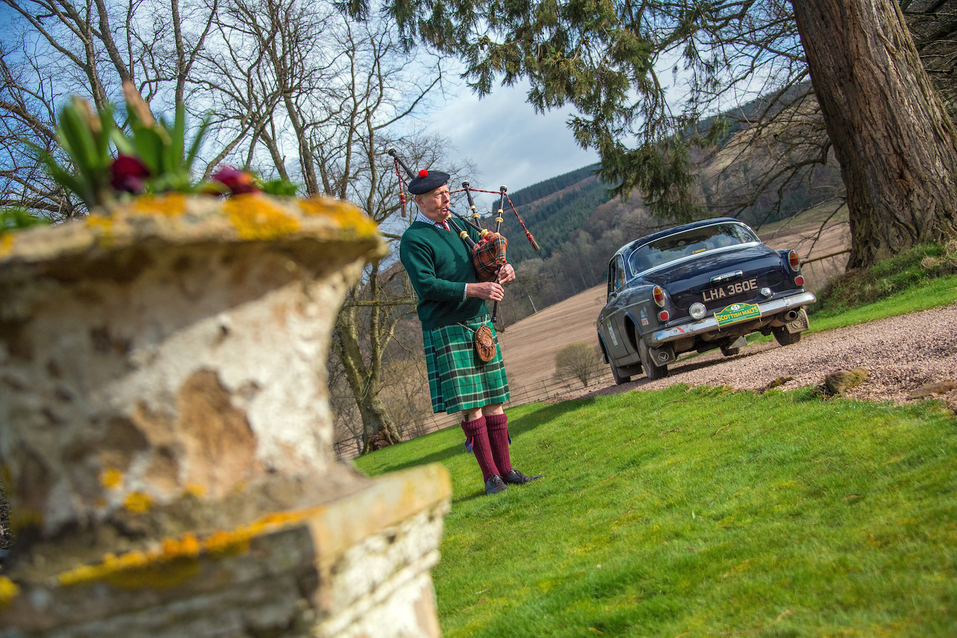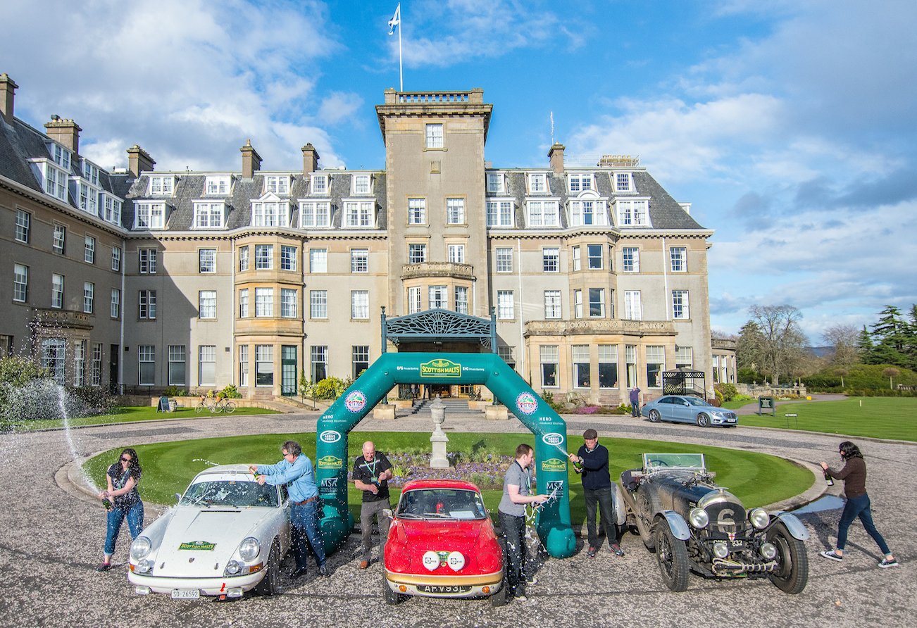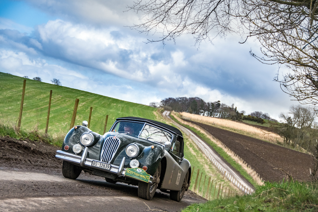 83 crews started the event from all across the world, including teams from America, Switzerland, Holland, Germany, Ireland and France: all quite happy for the very positive weather forecast that seemed to ward off the snow of 2016 edition. 12 Porsche, 10 Austin Healey, 8 Jaguar and 7 Italian cars (with 2 Lancia Aurelia) were the largest fleets, followed by 5 Aston Martin, Mercedes, MG and Triumph. The spectacular Gleneagles Hotel would provide the perfect back drop for the start of “The Malts”, despite a rude awakening for competitors and organisers as a fire alarm sounded just after midnight: while the fire brigade was investigating, some competitors were already asking for a delay allowance – others fancied some kind of night rally, all enjoying the free bar!