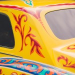 The new colour scheme is often described as ‘psychedelic’ and certainly the colours, particularly the dominant yellow, reflected the cover of Sgt. Pepper’s Lonely Hearts Club Band. But look carefully and you will see it is no random swirl, but a floral Romany scroll design, as used on gypsy caravans and canal barges, with a zodiac symbol on the roof.