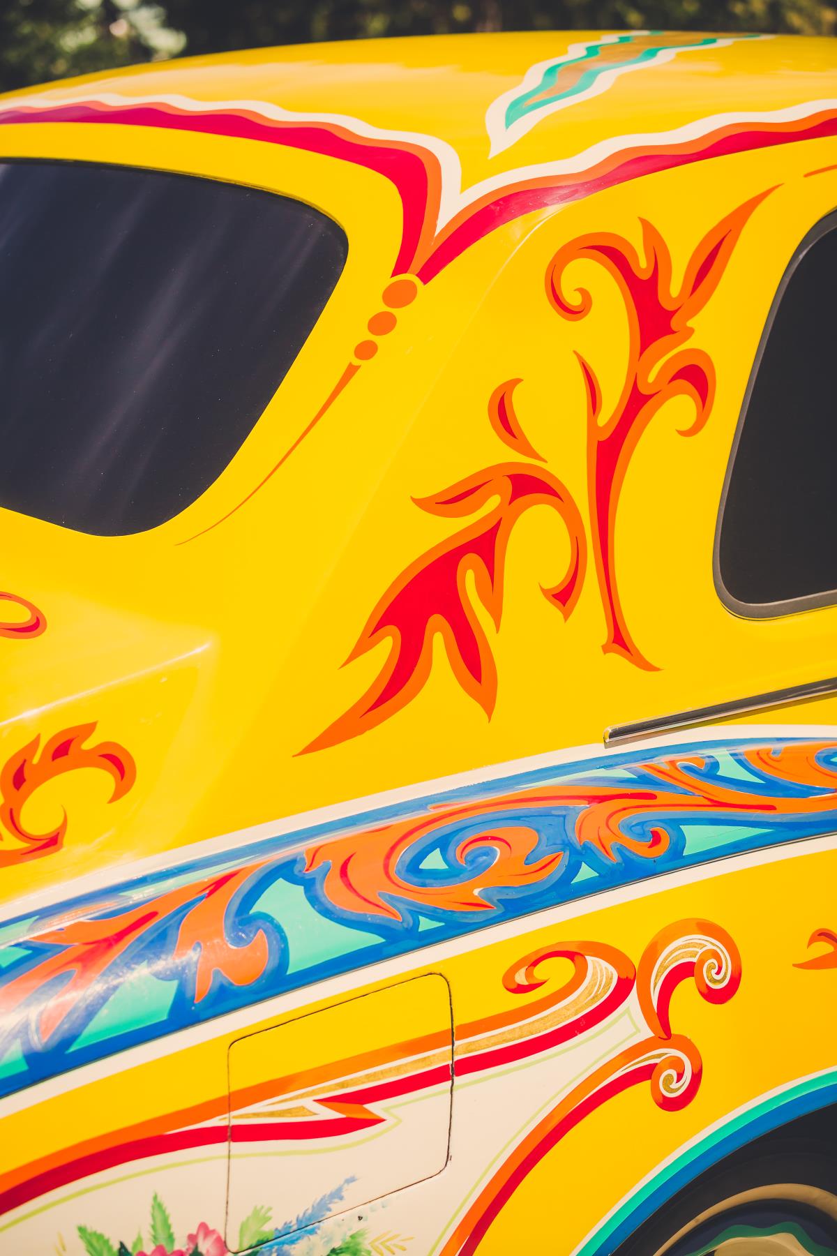 The new colour scheme is often described as ‘psychedelic’ and certainly the colours, particularly the dominant yellow, reflected the cover of Sgt. Pepper’s Lonely Hearts Club Band. But look carefully and you will see it is no random swirl, but a floral Romany scroll design, as used on gypsy caravans and canal barges, with a zodiac symbol on the roof.
